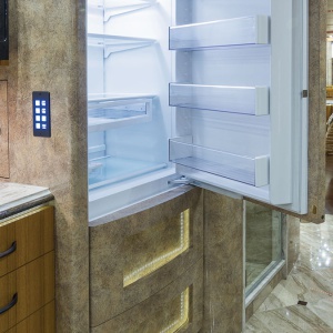 Because residential appliances were not created to withstand the rigors of the road, Marathon provides tested and true automatic locks on the refrigerator doors and freezer drawers, as well as the dish drawer - all of which engage when the engine starts. With no need to worry about the week's chilled provisions getting lost if the coach hits a pothole, drivers are free to simply enjoy the journey. Even with the engine engaged, the simple touch of a button disables the lock for five seconds, with the lock reengaged automatically once the appliance is closed.