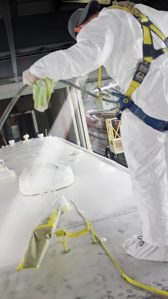 Standard on every Marathon coach, a liquid latex ceramic form of insulation called Temp-Coat insulates, protects, curbs condensation and resists harmful UV rays, thereby enhancing and extending the life of your luxury motorcoach. Originally designed for industrial and marine use, 15 mil thickness of this thermal reflective roof coating is the equivalent of four inches of insulating foam as rated by certified labs.