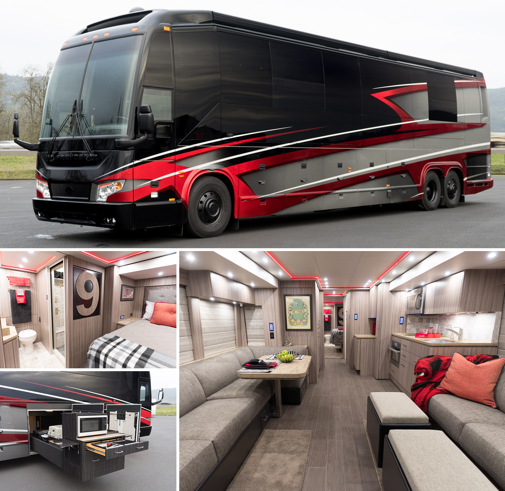 One of our favorite custom coaches to date, Chase Elliott's Marathon Coach #1278 is a stunning representation of how the Marathon team works in tandem with clients to create a dream home on wheels that is singular to their desires and tastes. The exterior of Custom Coach #1278 contains "blacked out" rub rails, rims, mirrors and grille, and much of the interior design and decor was hand-chosen to cater to the NASCAR driver's preference and style. For more about this custom luxury RV masterpiece, check out Chase Elliott's exclusive interview with Marathon's Kasey Hess about being NASCAR's Most Popular driver, choosing the elements in his Marathon and, of course, life on the road.
