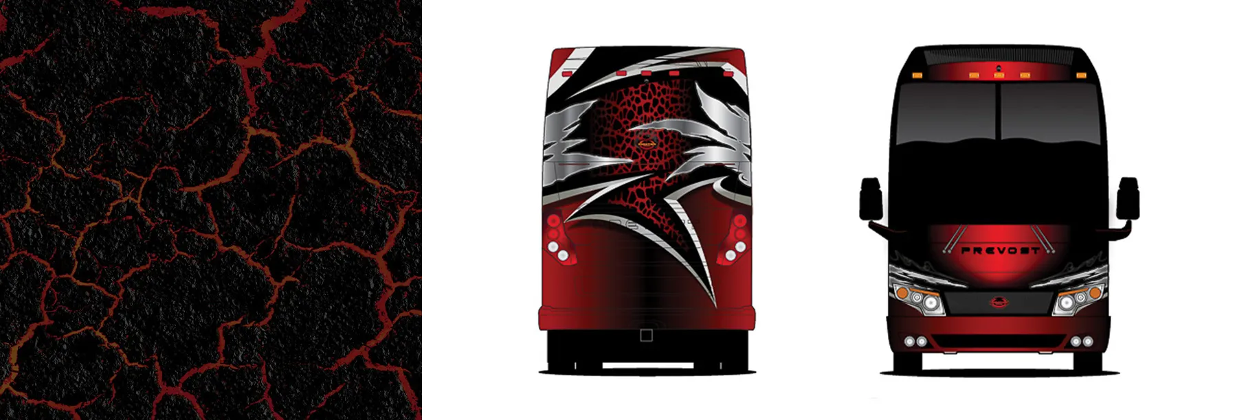 "The black and silver components were drawn first, showing sharp edges that are beveled as if they were knife-like," said Pete. "I had been holding on to an aggressive, angled pattern for some time, and in this case, it fell right in place. After experimenting with a few different ways to use the pattern, I settled on blending a dark red to bright red for both the background and the pattern. A theme started to emerge - one of heat and of fire."