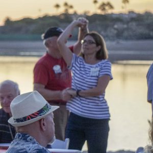 Monday evening kicked off the rally festivities with attendees eager to eat, drink and Conga on one of Newport Dunes RV Resort's beachfront pavilions. Located a leisurely stroll away from the club members' coaches, rally goers were greeted here by the IR Surf Beach Band, recreating the best Southern California tunes of yesteryear, and a bartending duo serving ice cold libations. This combination helped attendees loosen up any stiff muscles for the pre-dinner washer-toss games and bocce ball tournament. As the sun set over Back Bay, revelers gathered in the sand for a group photo before settling in for a dinner brimming with savory fare. Prior to dessert, Club President Kit Thomson took to the stage, greeting club members, making announcements, recognizing the contributions of the volunteers and thanking Prevost for its continued support of the club, as well as Steve Schoellhorn and Marathon Coach. A roaring fire, s'mores makings, a hilarious game of limbo and an impromptu Conga line set the perfect tone for the remainder of the week.