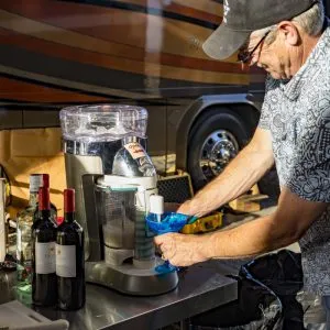 After a full day of activity with friends going in separate directions, there's a very relaxed, almost ceremonial, element as the informal happy hour is ushered in. Like a choreographed performance, each person knows exactly what to do. A fresh tablecloth floats down to touch the surface of the buffet table. One camper emerges with a bowl of ice, others exit their coaches with liquor and wine. Someone else comes out with an oversized tray of deviled eggs, while freshly prepared shrimp cocktail and other delicacies quickly - almost as if by magic - find their way to the table.