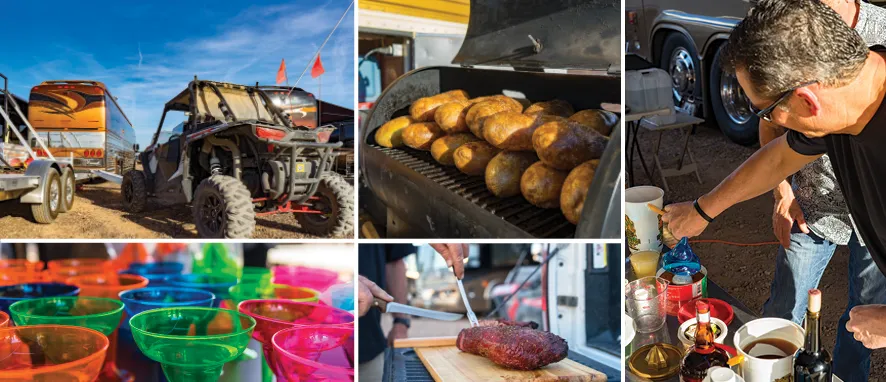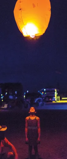 After a day filled with off-road desert racing in buggies built for speed, day turns to night and new friends and old can be seen conversing around the bonfire as someone's young daughter sends glowing paper lanterns into the sky.