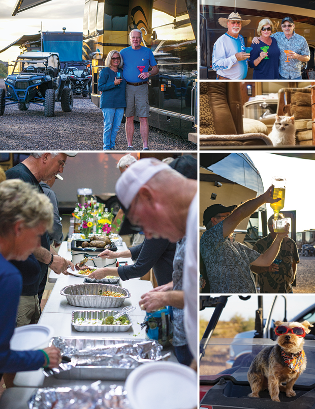 Talk soon shifted to Jack and Lois's upcoming Super Bowl party. Fourteen or 15 miles up a log road outside Quartzsite, Arizona, this group circle their coaches for the big sporting event, setting up the TVs, preparing the oversized betting boards and making a bonfire so large the faint of heart need not apply. Many guests stay in the desert six or seven weeks.