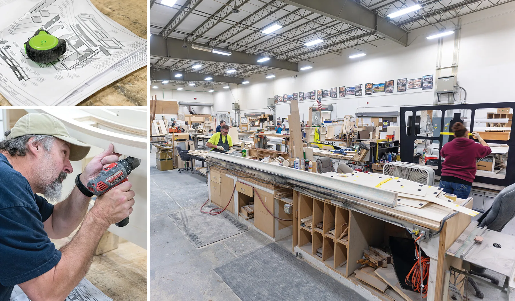 "With only a few exceptions," explained Engineering Manager Jay Graham, "cabinets can include almost every discipline within Marathon. In addition to engineering, interior design, cabinet shop and install, the plumbing, electrical, mechanical, flooring, upholstery, countertop and woodworking departments may be consulted on designs to ensure proper planning, function and installation. It takes everyone to ensure all material and components are integrated in any new designs appropriately and according to Marathon's installation and quality standards."