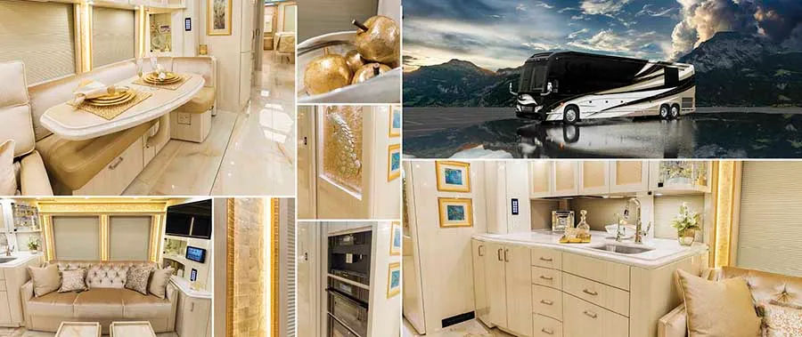 When Marathon Coach Vice-President of Interior Design/Engineering Alan Christianson first envisioned Show Coach #1281, he imagined a sparkler, something 100% luxe, a coach that not only dazzled, but also inspired. From engineering to cabinetry, mechanical to flooring, upholstery to interior design, in one deft stroke, Alan and the Marathon team managed to create a true show piece that quickly garnered attention from the Travel Channel and beyond.