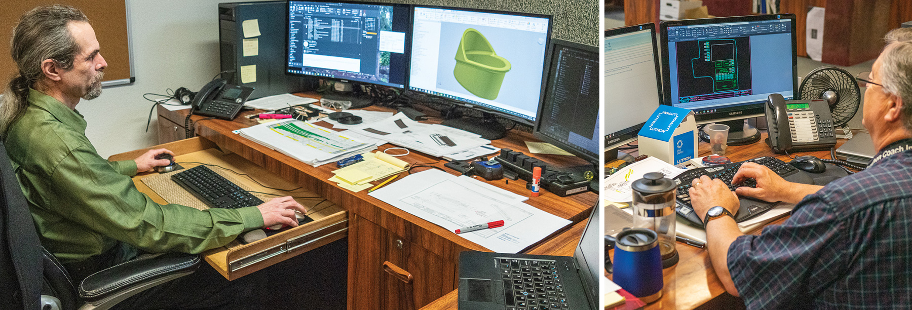 A larger engineering team gives Marathon the distinct advantage of precisely planning every unique coach in advance with electrical, plumbing and HVAC schematics, as well as full blueprints for cabinetry and other components. Additionally, having more personnel creates a deeper pool of talent, know-how and creative energy. This enables our engineering team to have a wider spectrum of specific disciplines at its disposal: Electrical, mechanical, audio/visual, CNC, 3D printing and more.