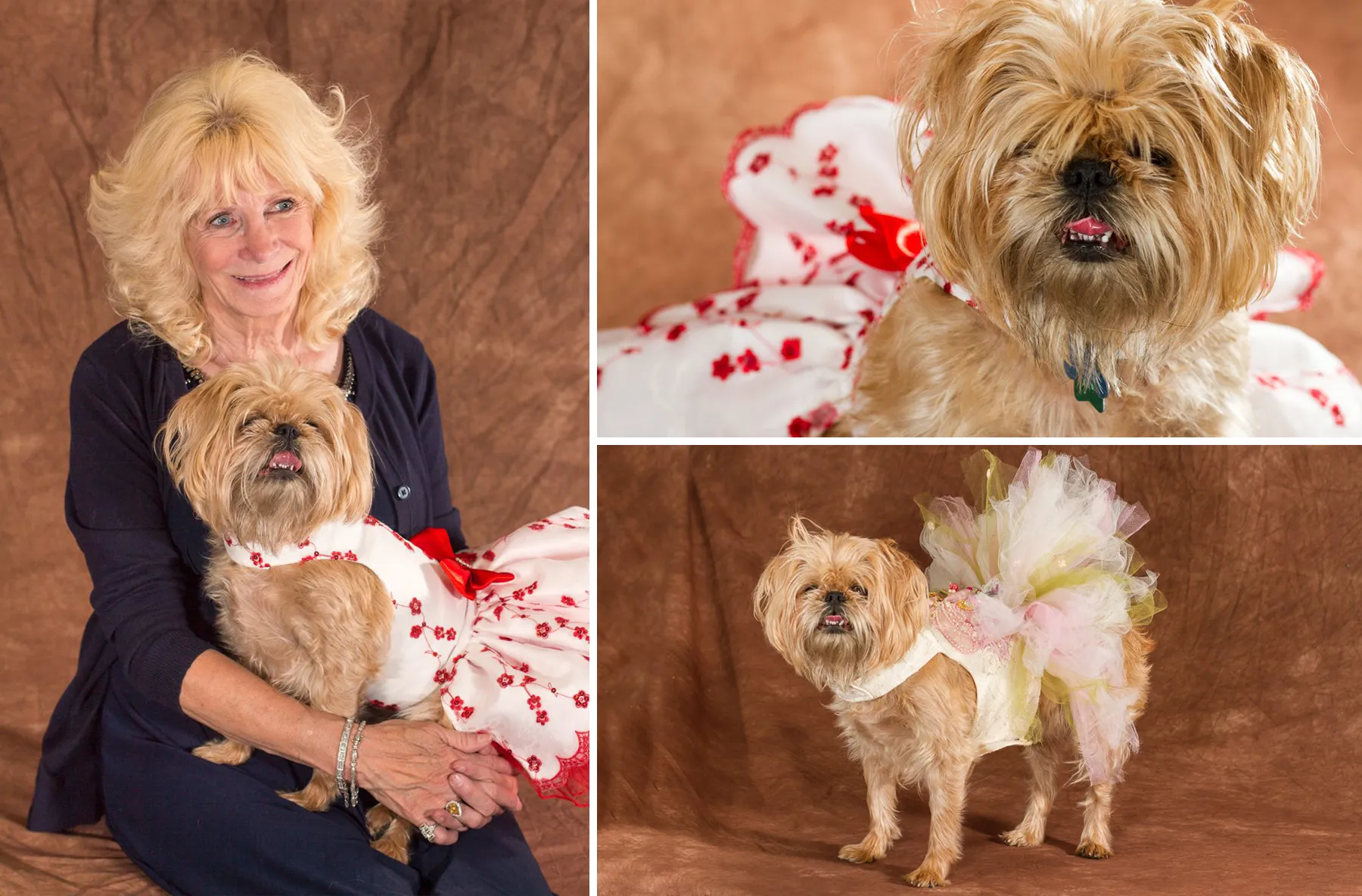 Full of life and energy, this adorable girl brings a dog smile and a full wardrobe wherever she goes. In fact, Katie's pastel runway wear with the billowing skirt, created by designer Severine Vicknair of Beatrice Ruth Designs, previously Pink Punk Puppy Designs, features over 100 hours of hand beading. Of course, a well-travelled girl like this one needs more than one designer, so she also recommends Annette Rhoades' work through Designs by Annette for fashions such as her classic designer jacket.
