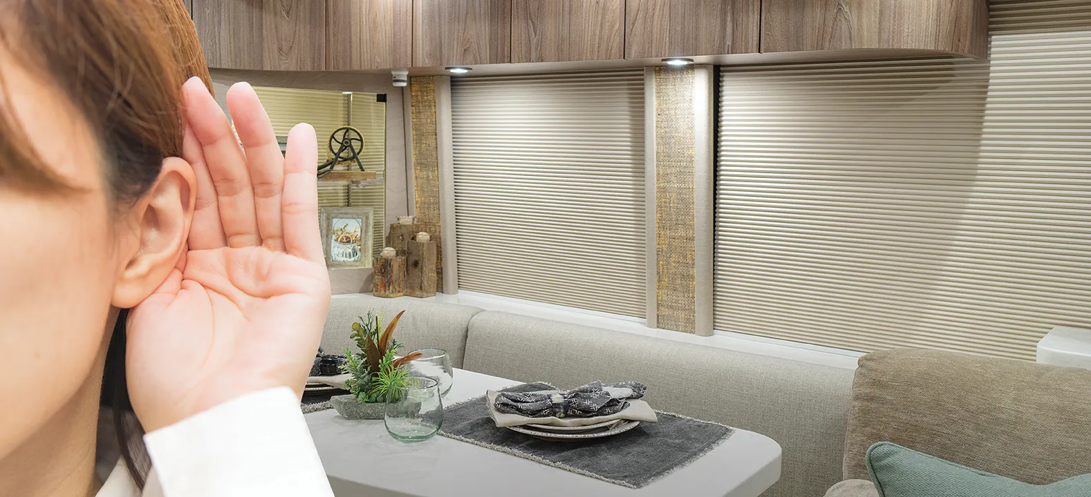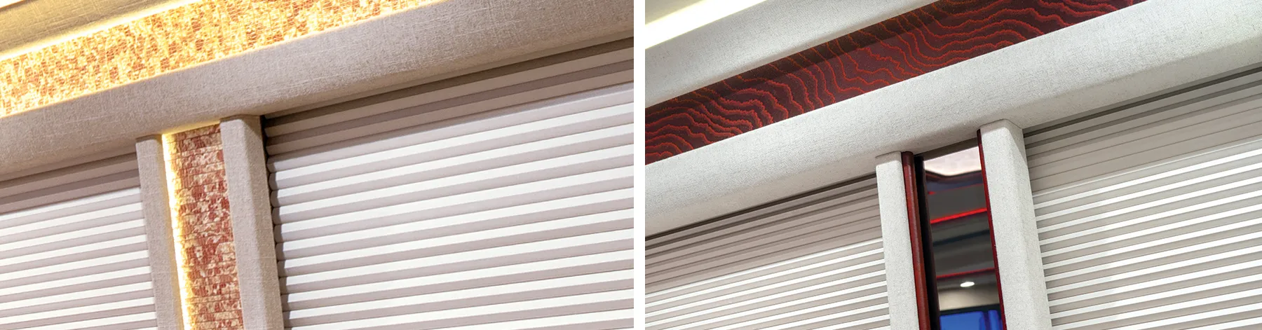 Good design unifies function and aesthetics, bringing the coach owners' style to the forefront while keeping noise pollution to a minimum. These shades are strategically created to provide sweeping, unobstructed views when desired, and solitude and shade when not, all with just a whisper of sound.