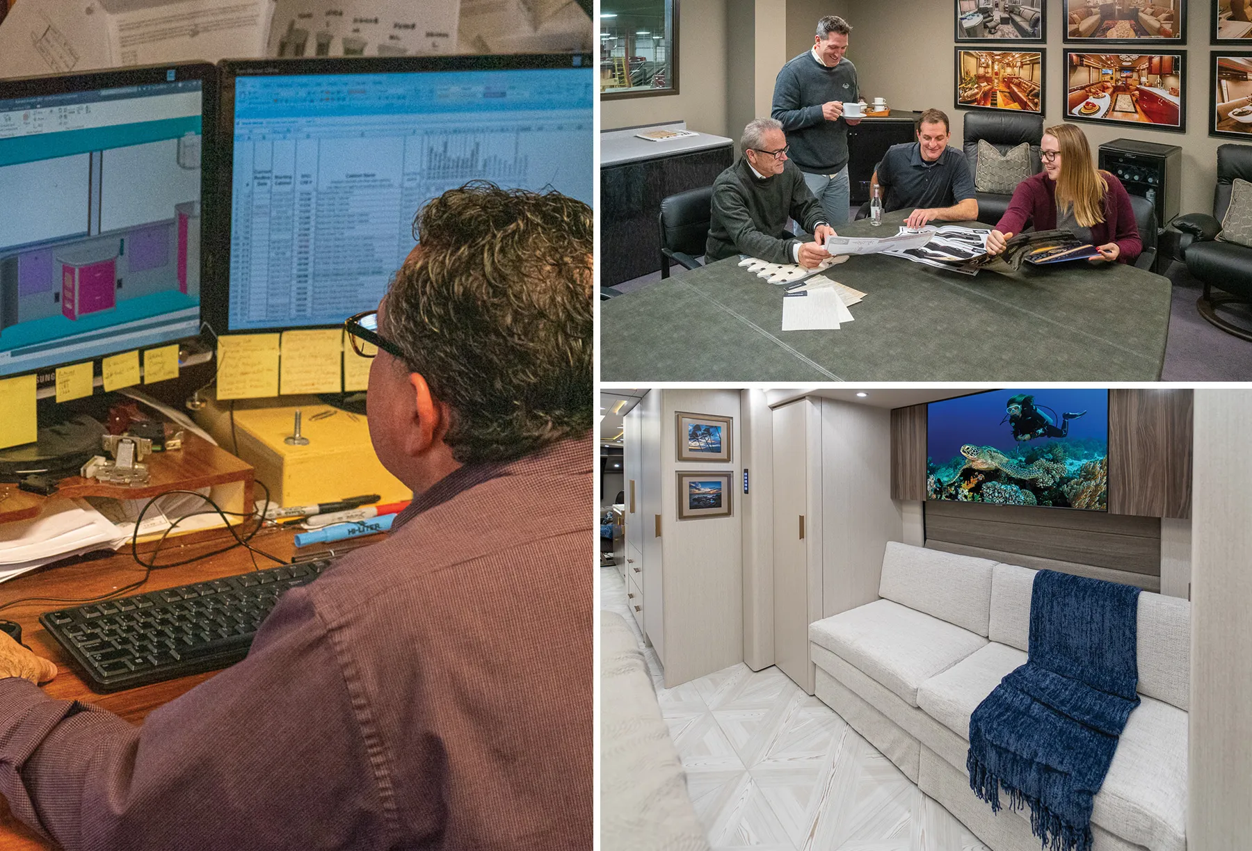 Alan Christianson, Vice President of Interior Design Engineering, has been working with clients on their custom dream-home-on-wheels for nearly 40 years, and considers the relationship between designer and client more of a partnership than an assignment. "It's so fun � you've got something in common you're talking about - their coach - and the whole process is just really enjoyable," said Alan. "It's a journey. You're trading ideas, and it's like a synergy between the client and the designer."