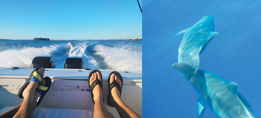 Ron LeClaire, welder at Marathon's Florida facility, brings us Florida-style traveling shoes from where else but Marathon Key. While fishing and lobstering with his friend Ryan, they were visited by a pod of dolphins.