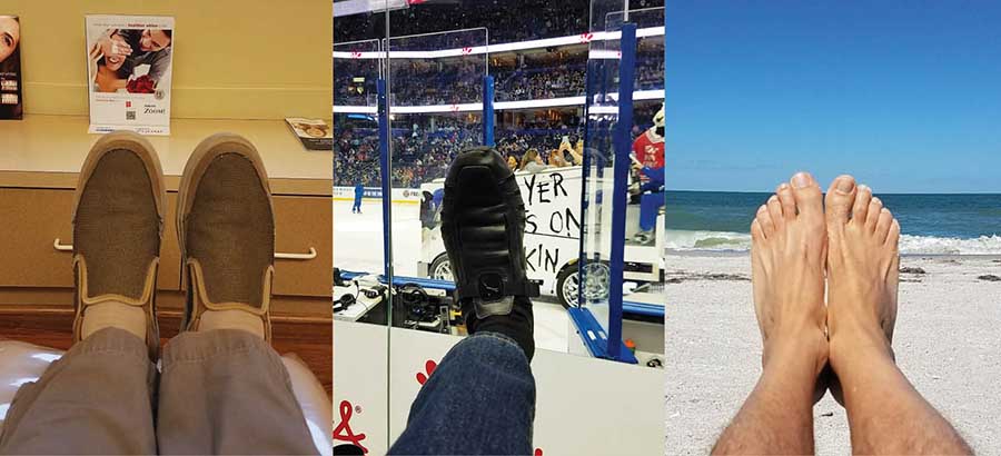 When you live in the Tampa Bay area, you don't have to travel far for memorable moments. Marathon Coach Florida Service Manager Joe Stefanczuk showcases his Traveling Shoes while visiting the dentist, at a Tampa Bay Lightning Hockey game and then at Sand Key just over the bridge from Clearwater Beach.