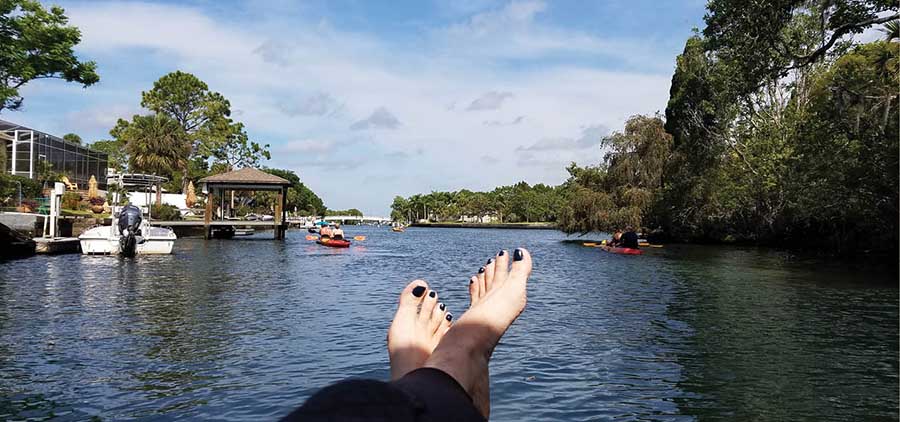 After an adventurous morning swimming with manatees and snorkeling Three Sisters in Crystal River, Fla., Marathon Coach Florida Sales Assistant Michele Connor relaxed on the Crystal River Watersports tour boat.