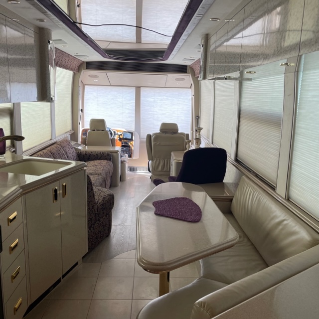 The interior layout balances comfort and function, making the coach approachable for both travel and longer stays.
