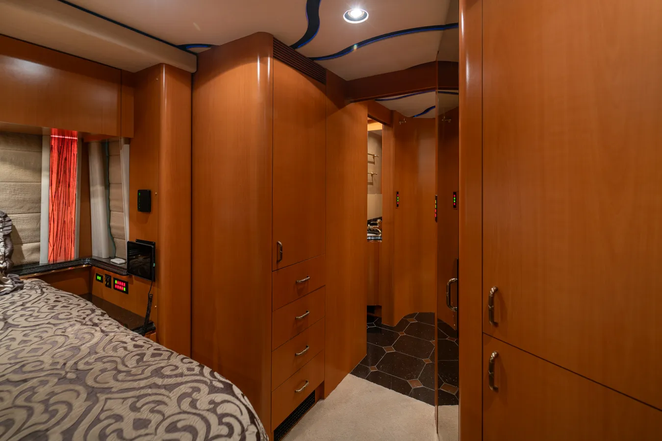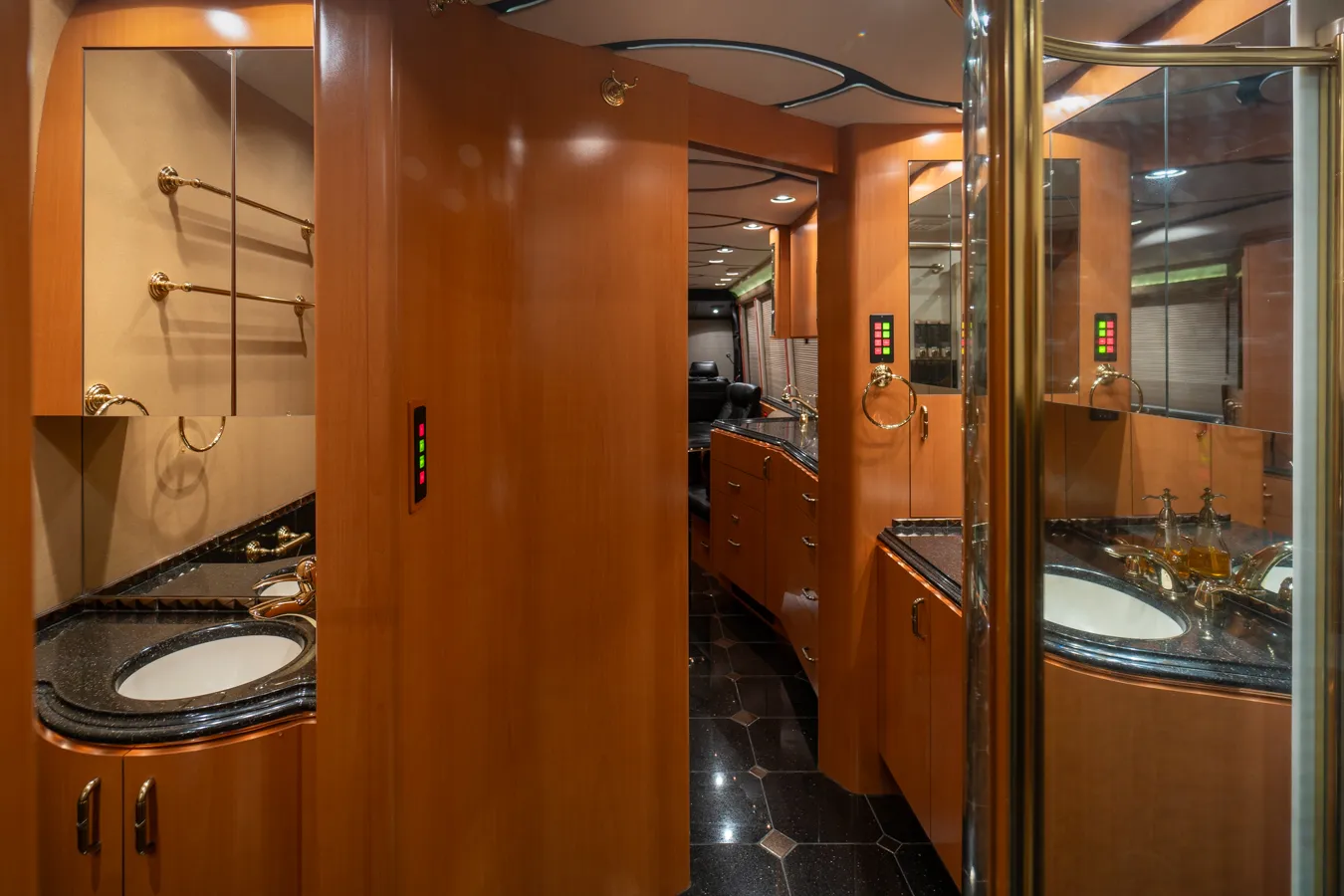 FEATURES SNAPSHOT\n\n- Two Clarion AM/FM/CD Stereos\n-Pull Out Pantry Storage\n-Freedom Plus Sewer System\n- Entertainment Center with 32" LCD\n-Color Back Up Camera
