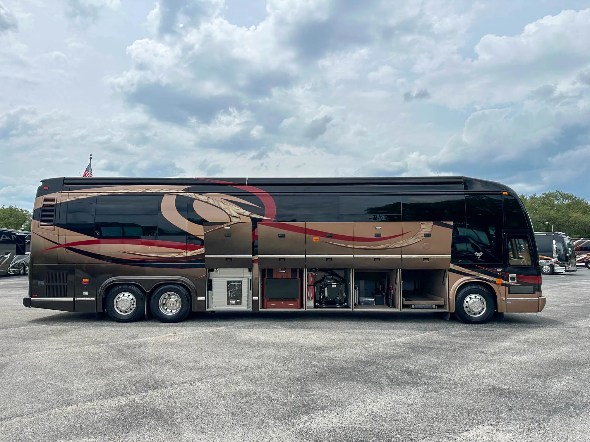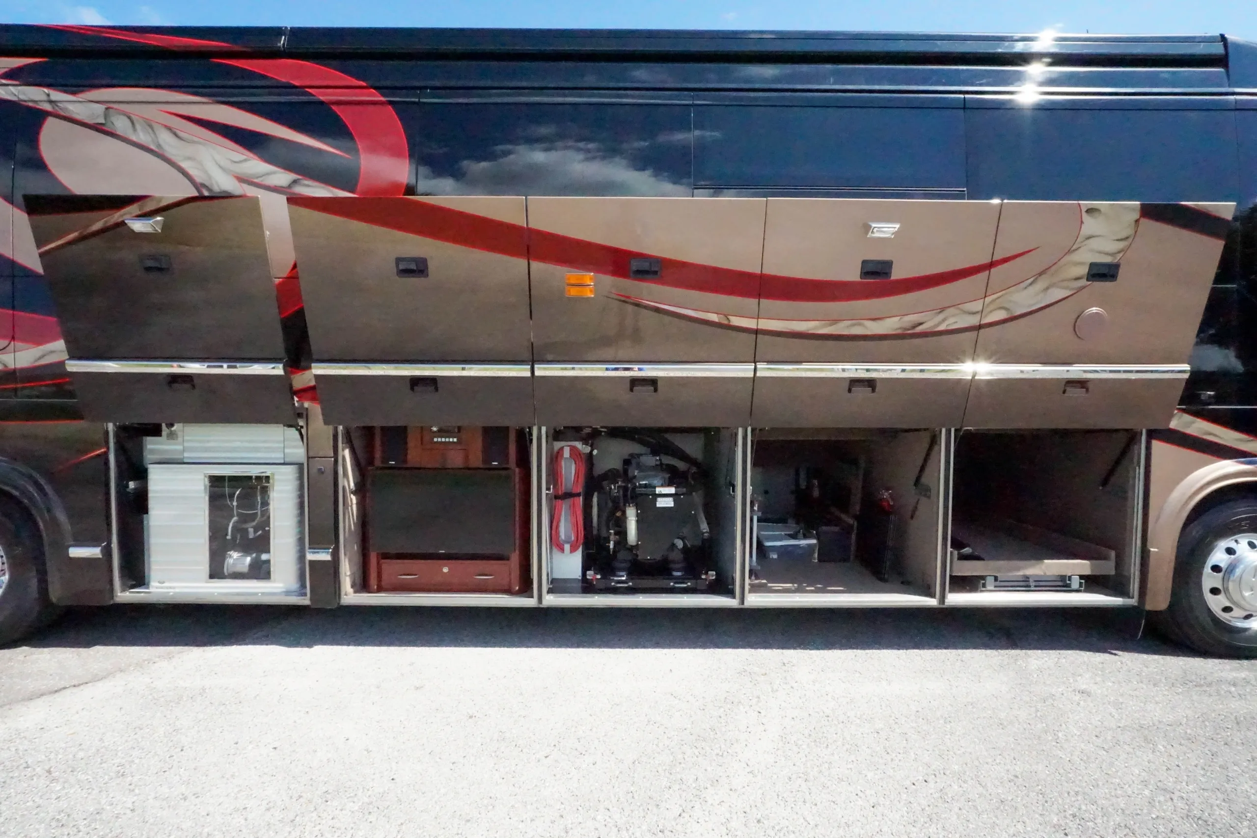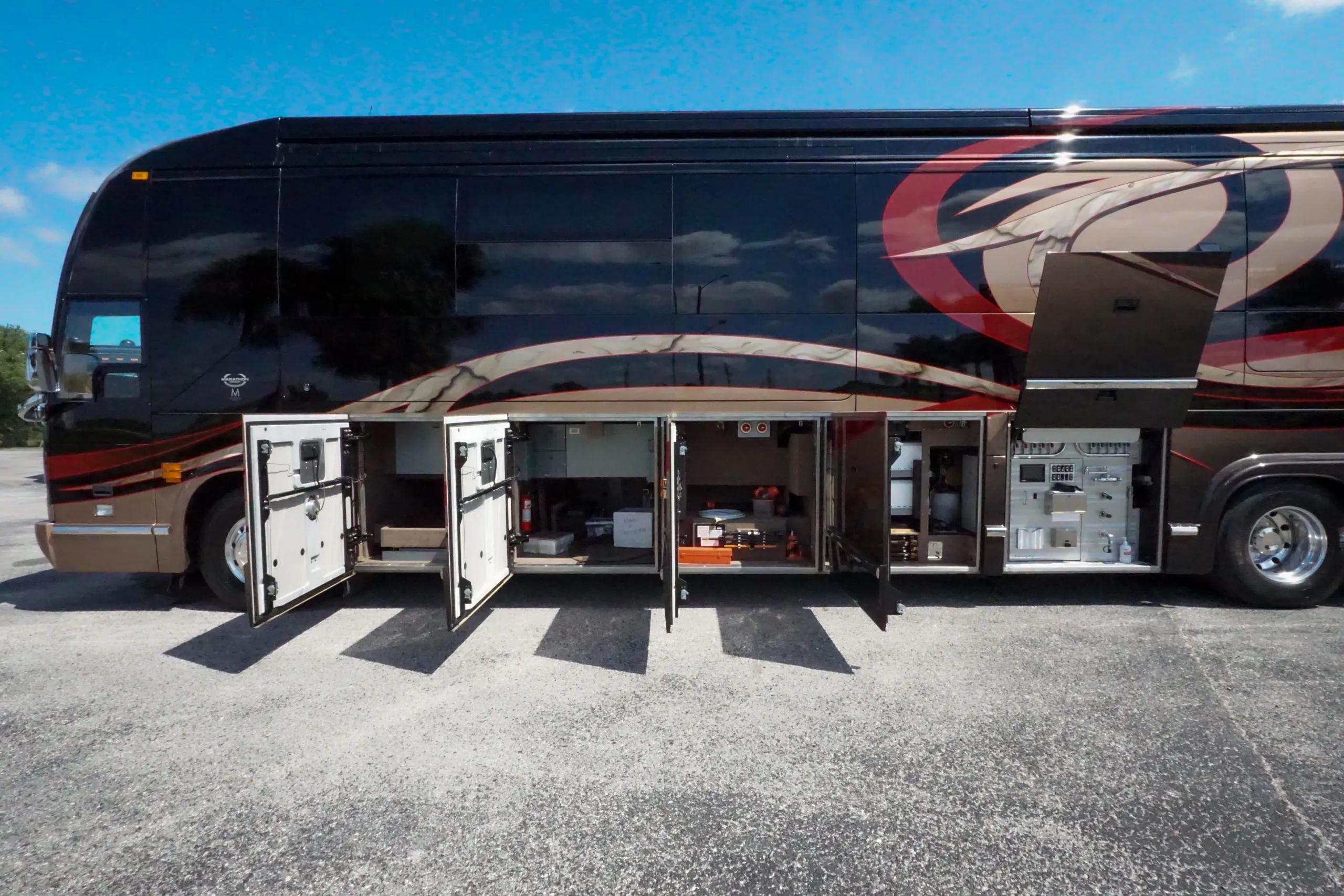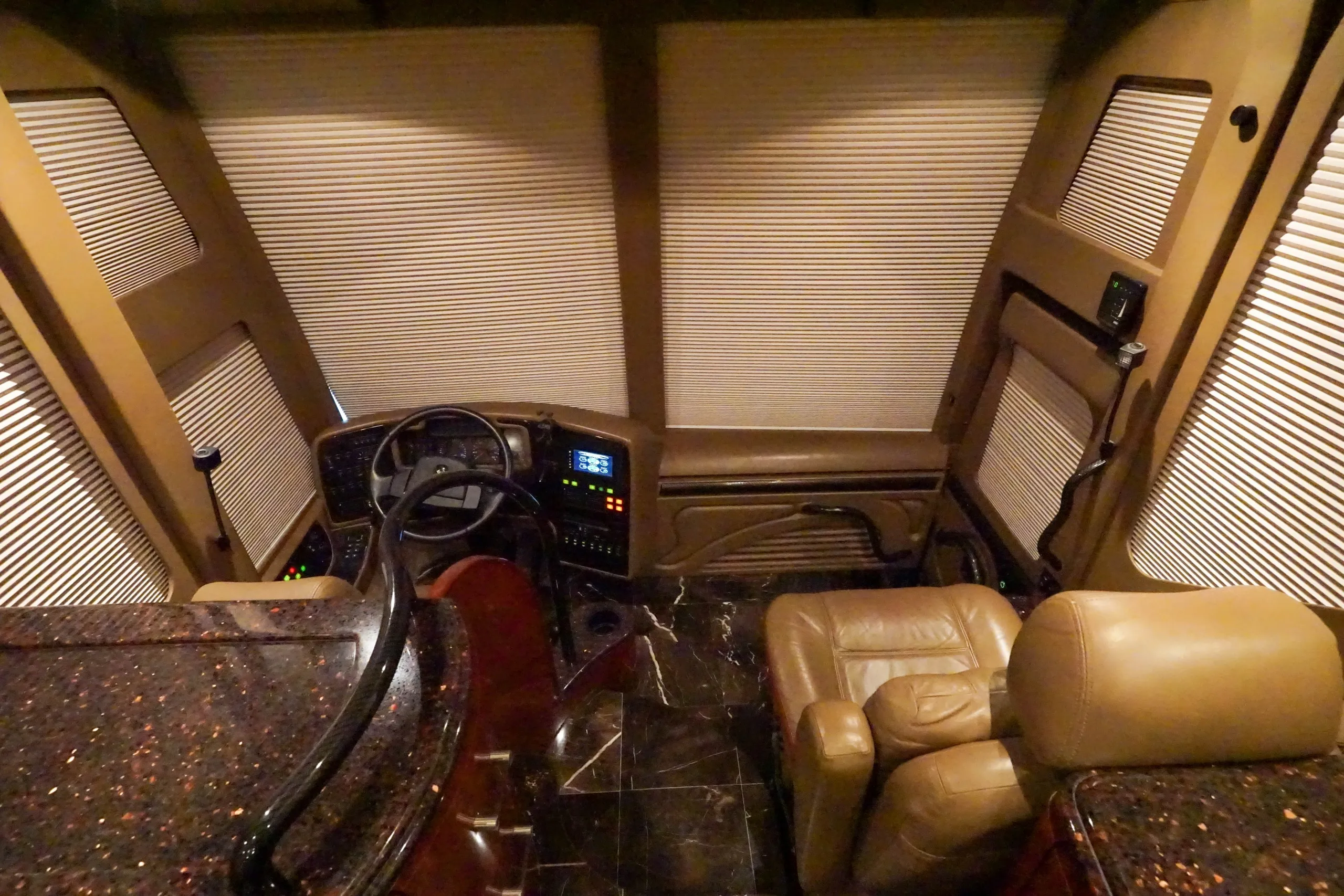 - Custom “RV Sunshade” on Front Side Windows \n