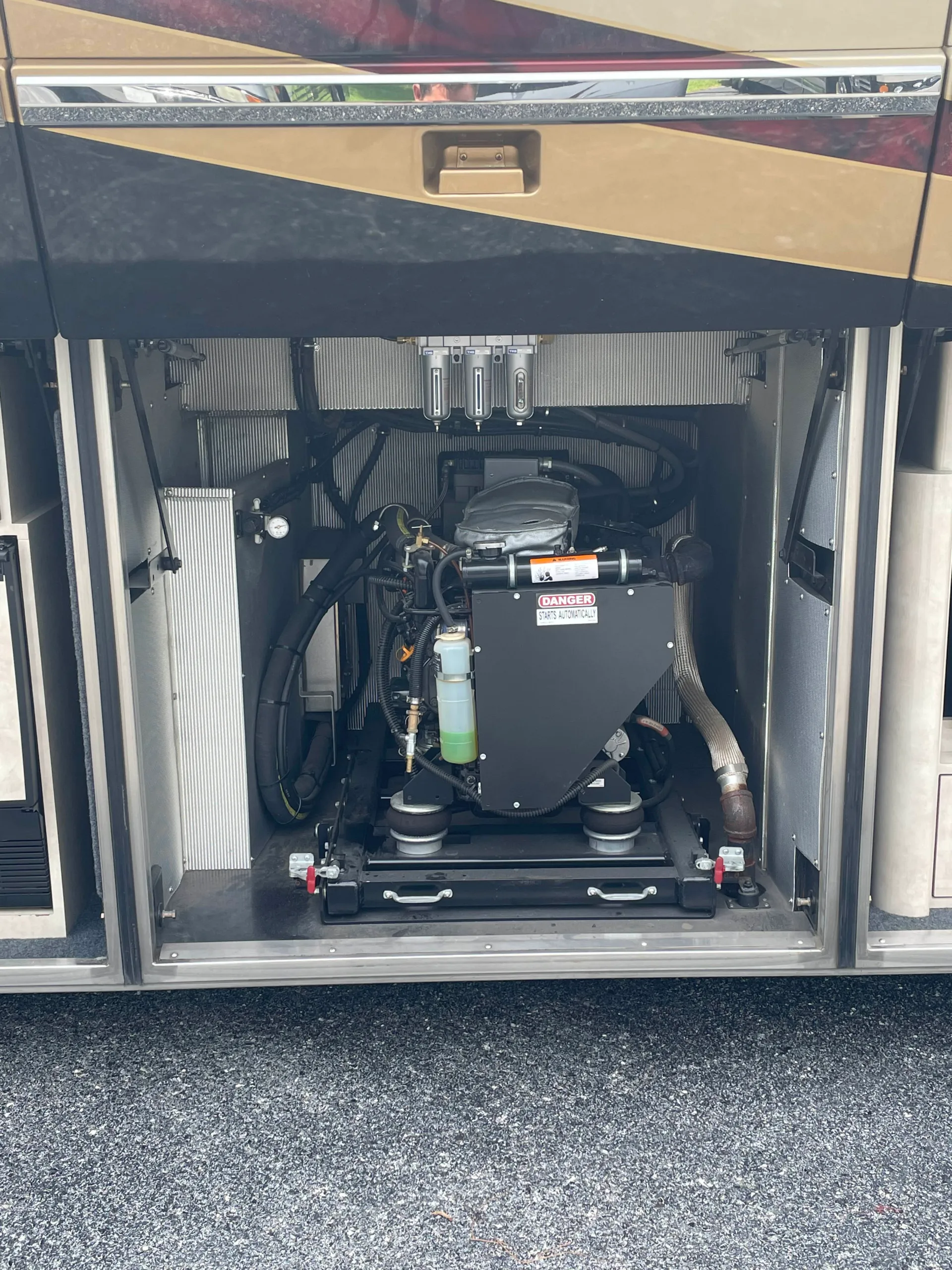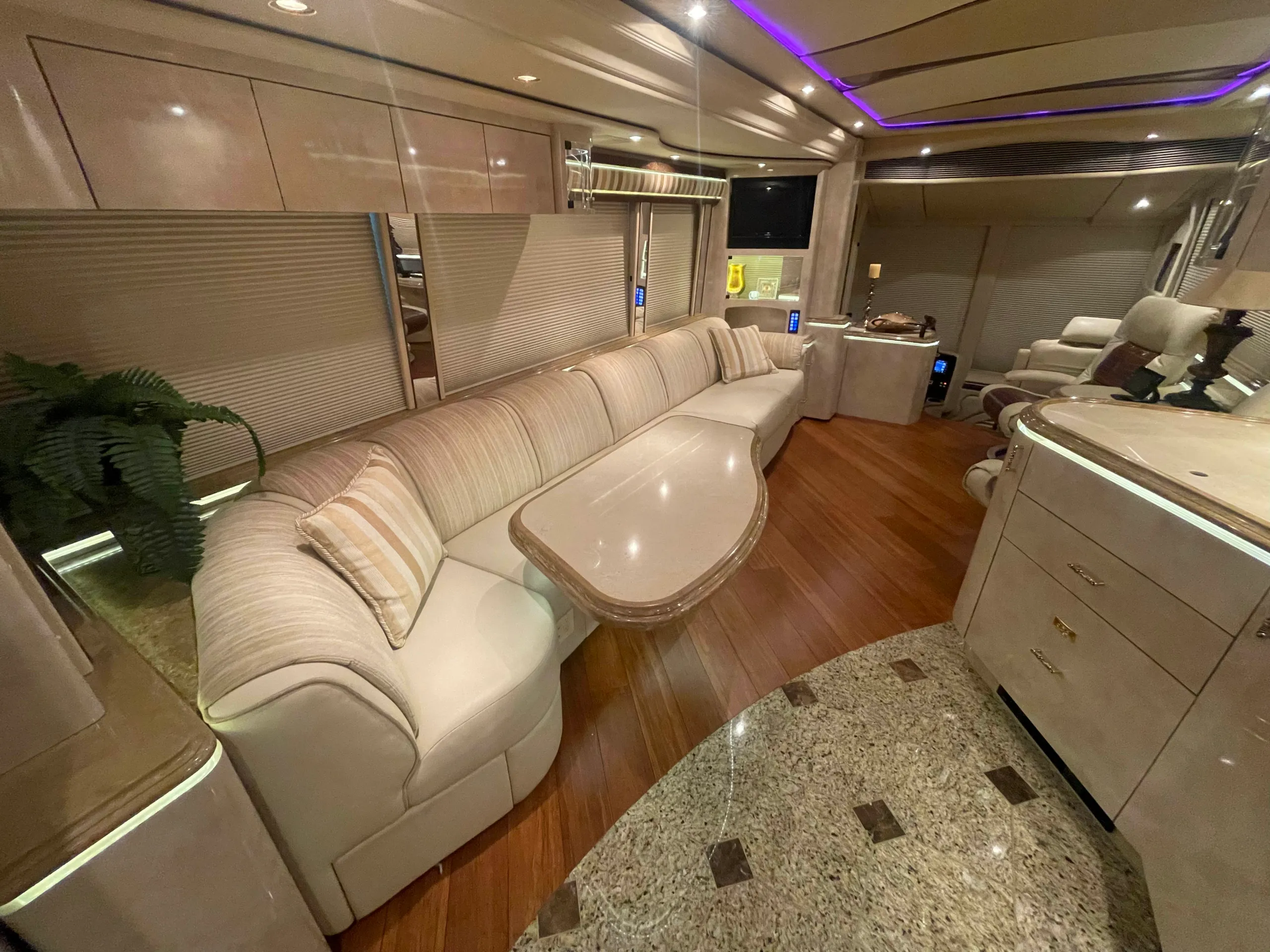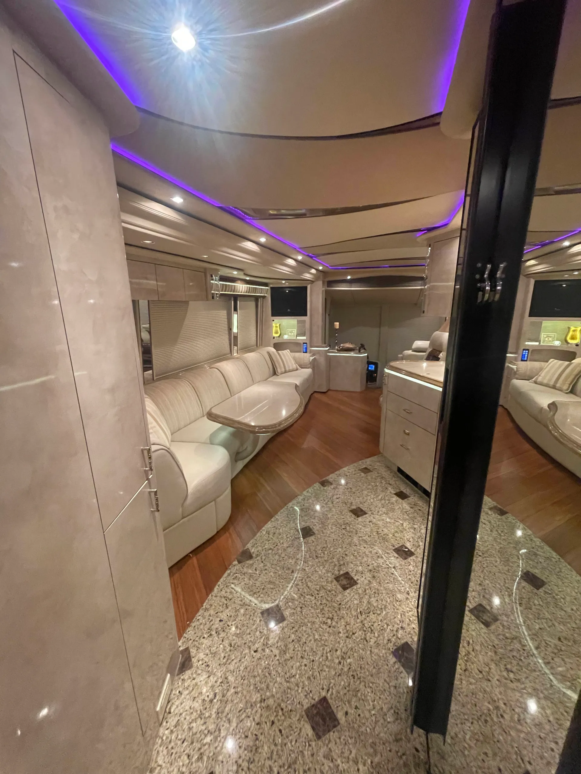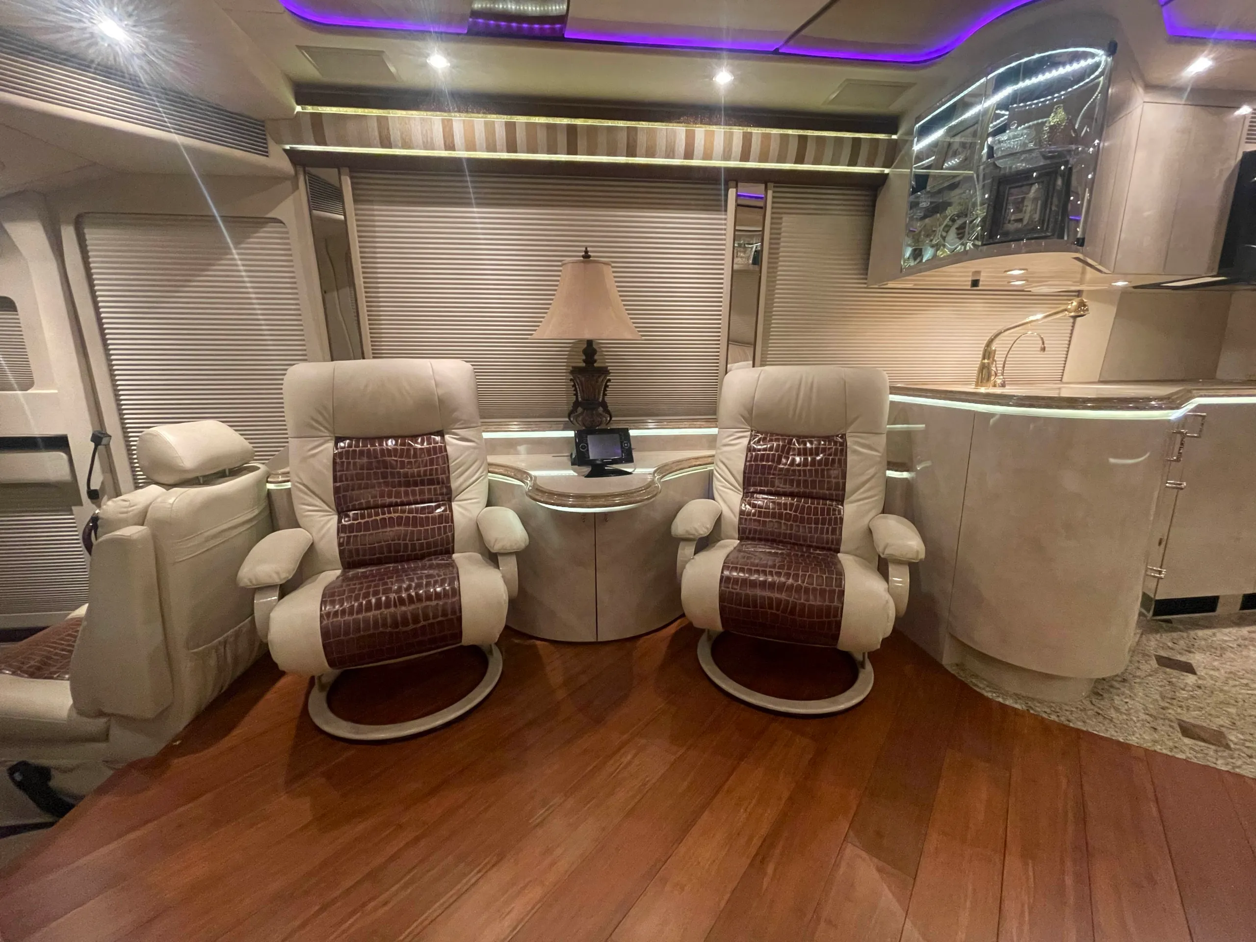 FEATURES SNAPSHOT\n\n● Crestron Control System w/ Surround Sound\n● Girard Automatic Awning Package with Fairings\n● Granite layout with Keys (Galley and Bath)\n● Patented Freedom Plus Sewer System\n● Temperature Sensing Shower Valve