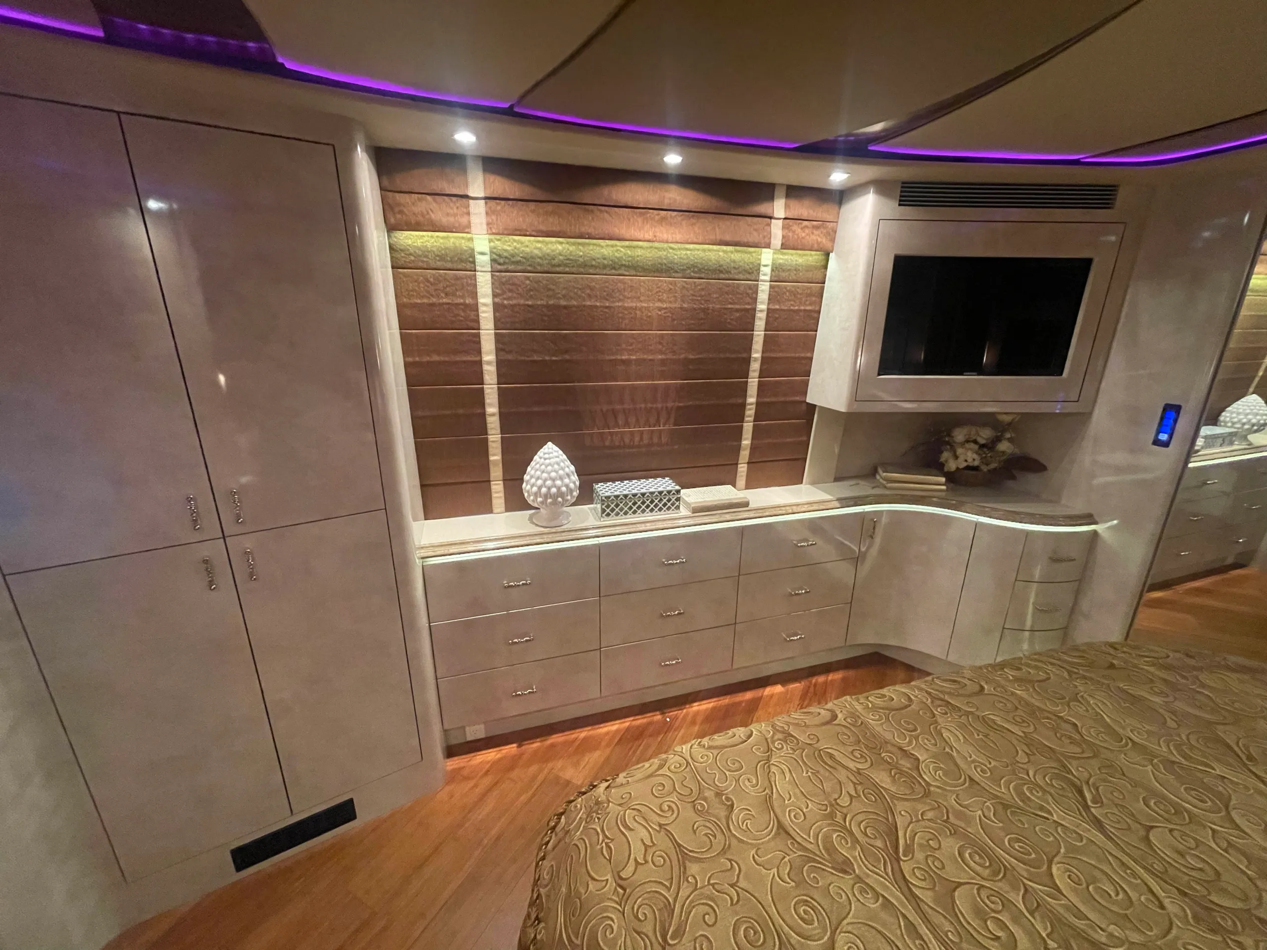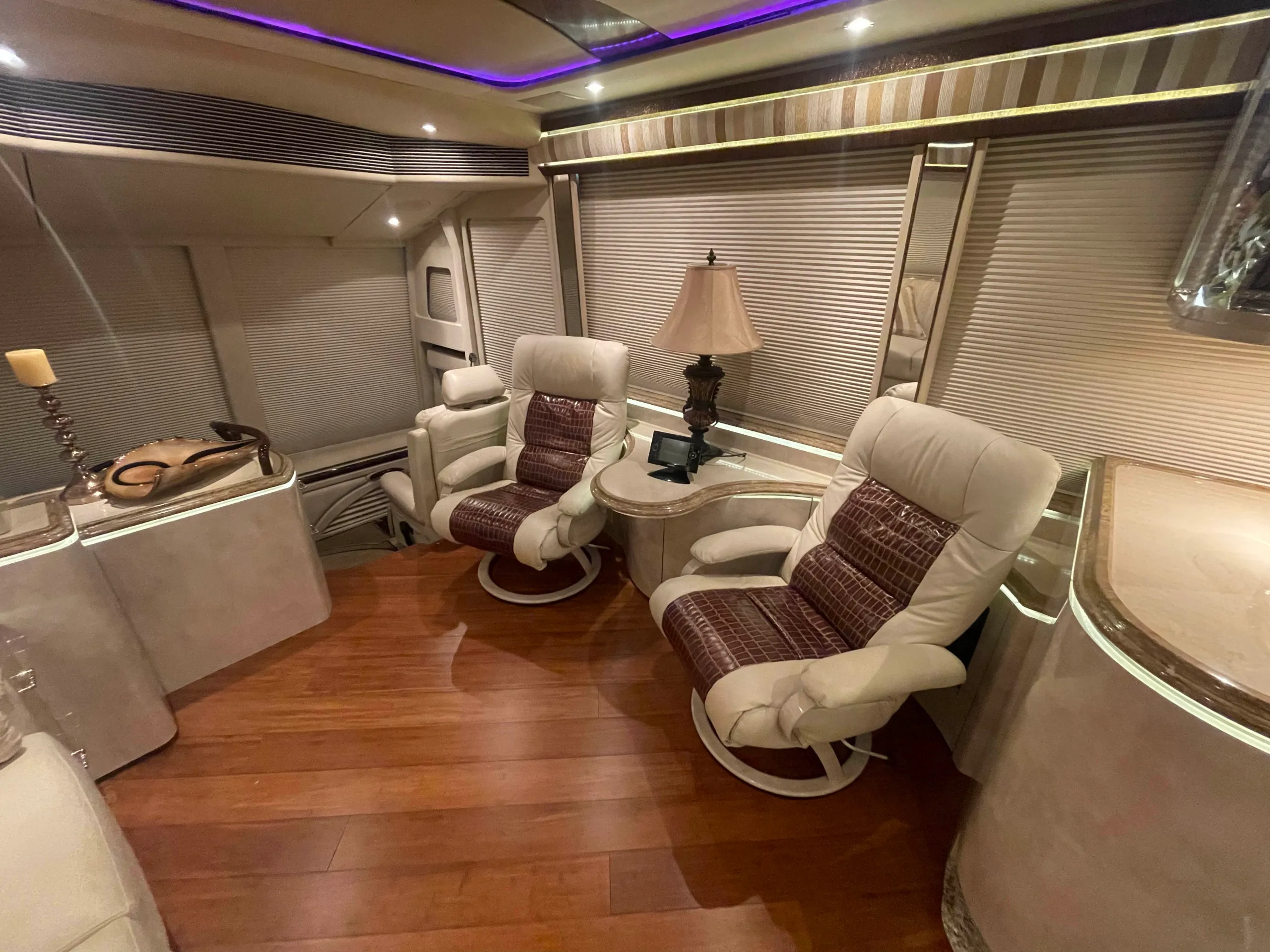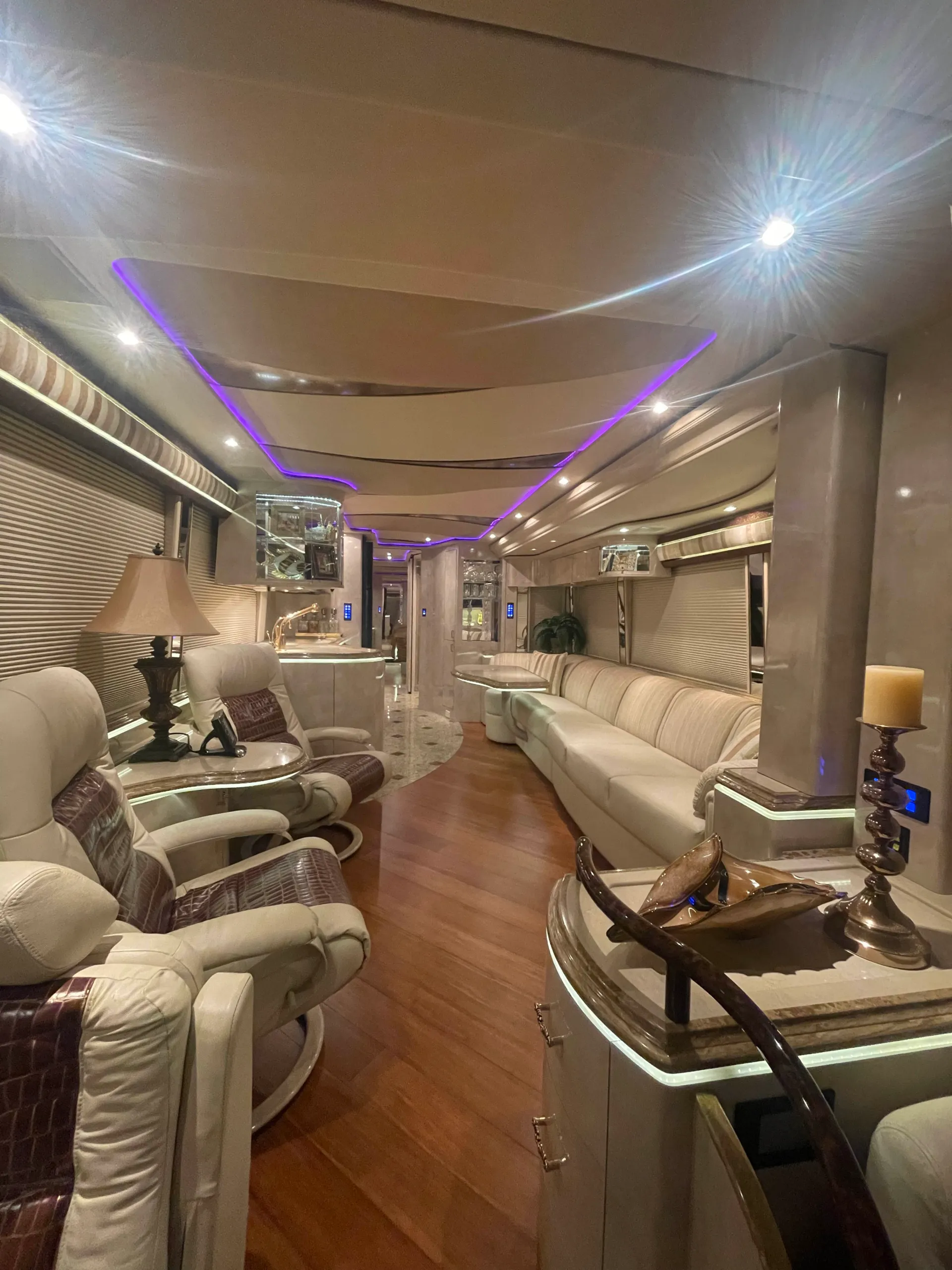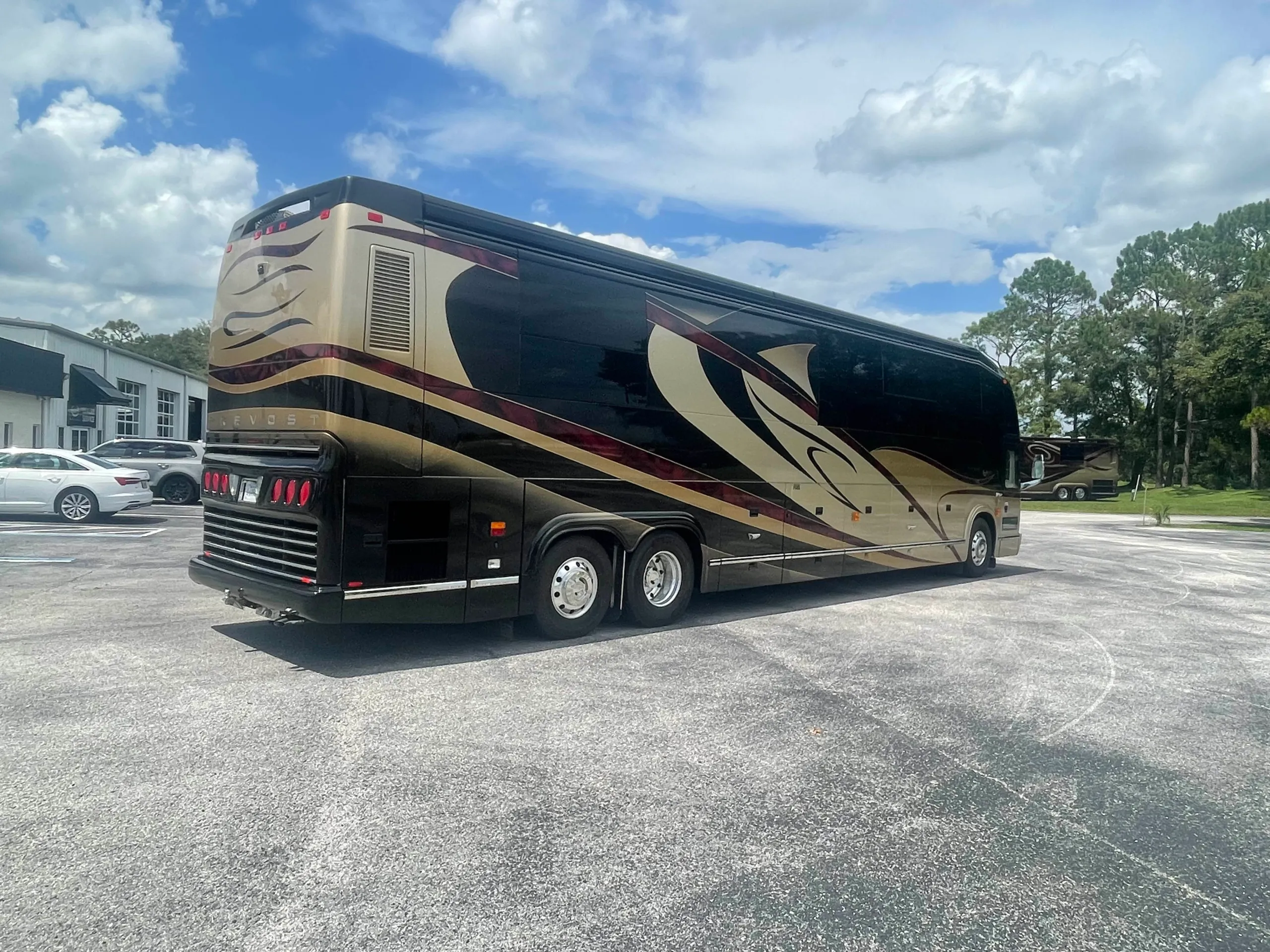 FEATURES SNAPSHOT\n\n● Crestron Control System w/ Surround Sound\n● Girard Automatic Awning Package with Fairings\n● Granite layout with Keys (Galley and Bath)\n● Patented Freedom Plus Sewer System\n● Temperature Sensing Shower Valve