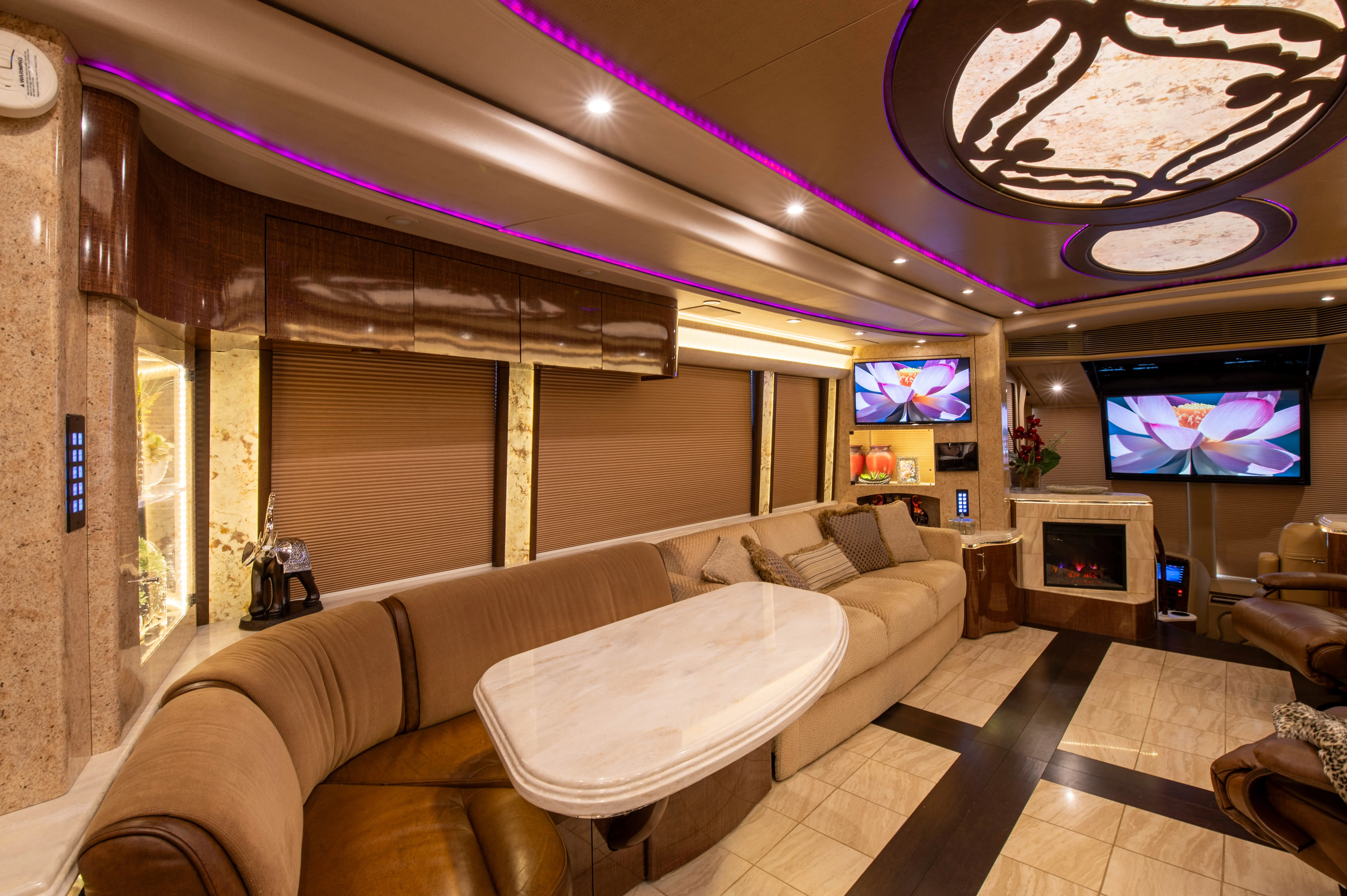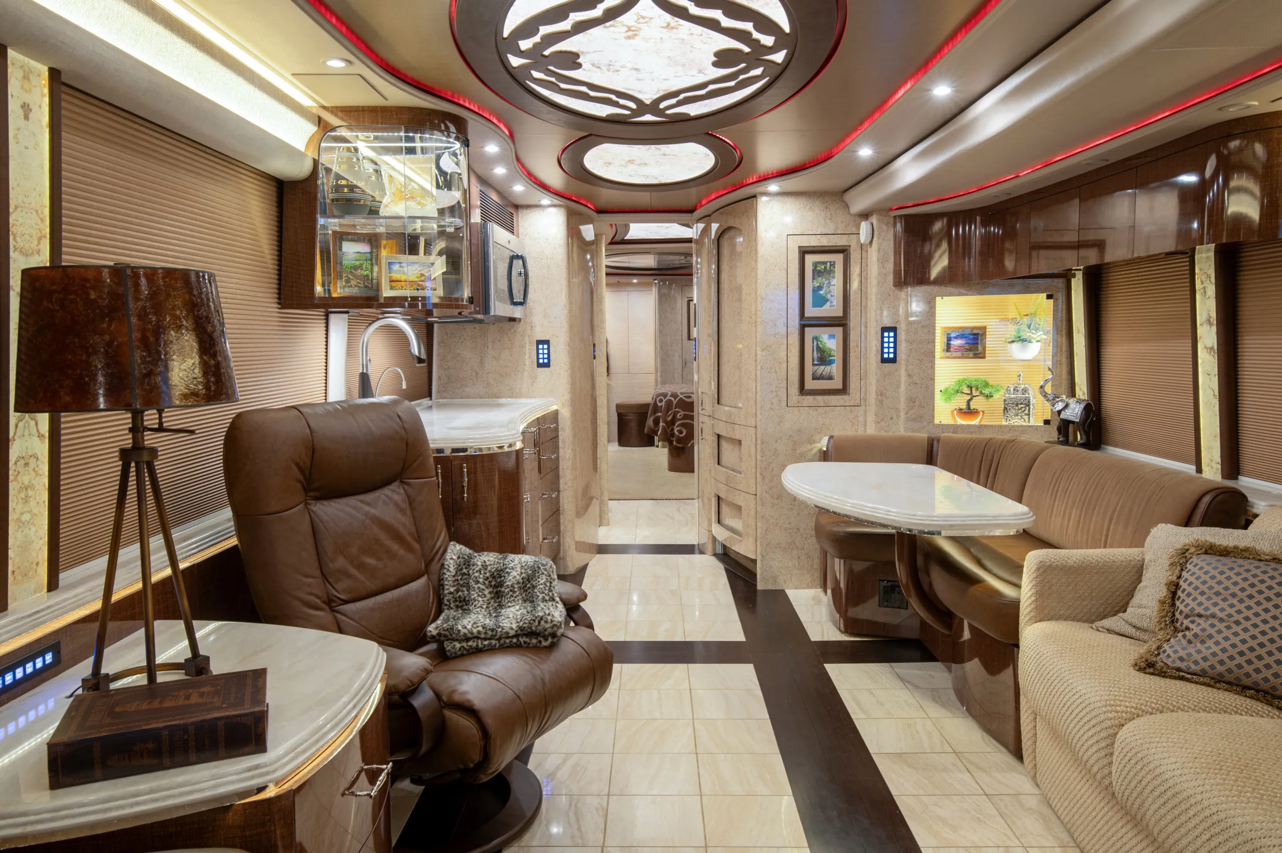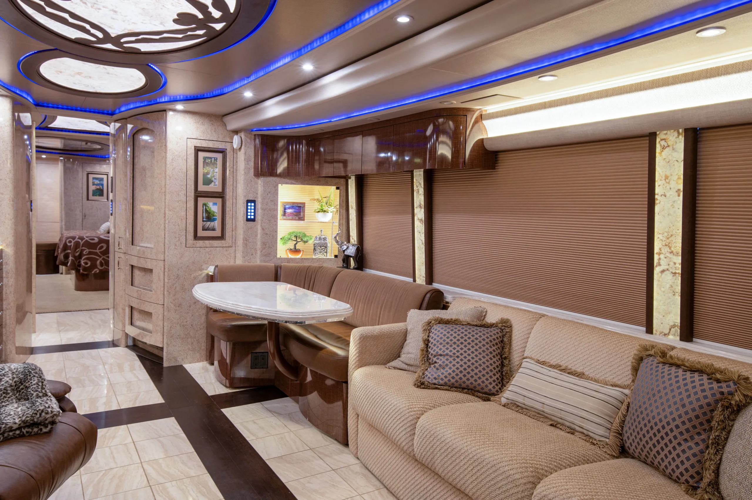 - L-shaped leather dinette for relaxed dining and seating flexibility