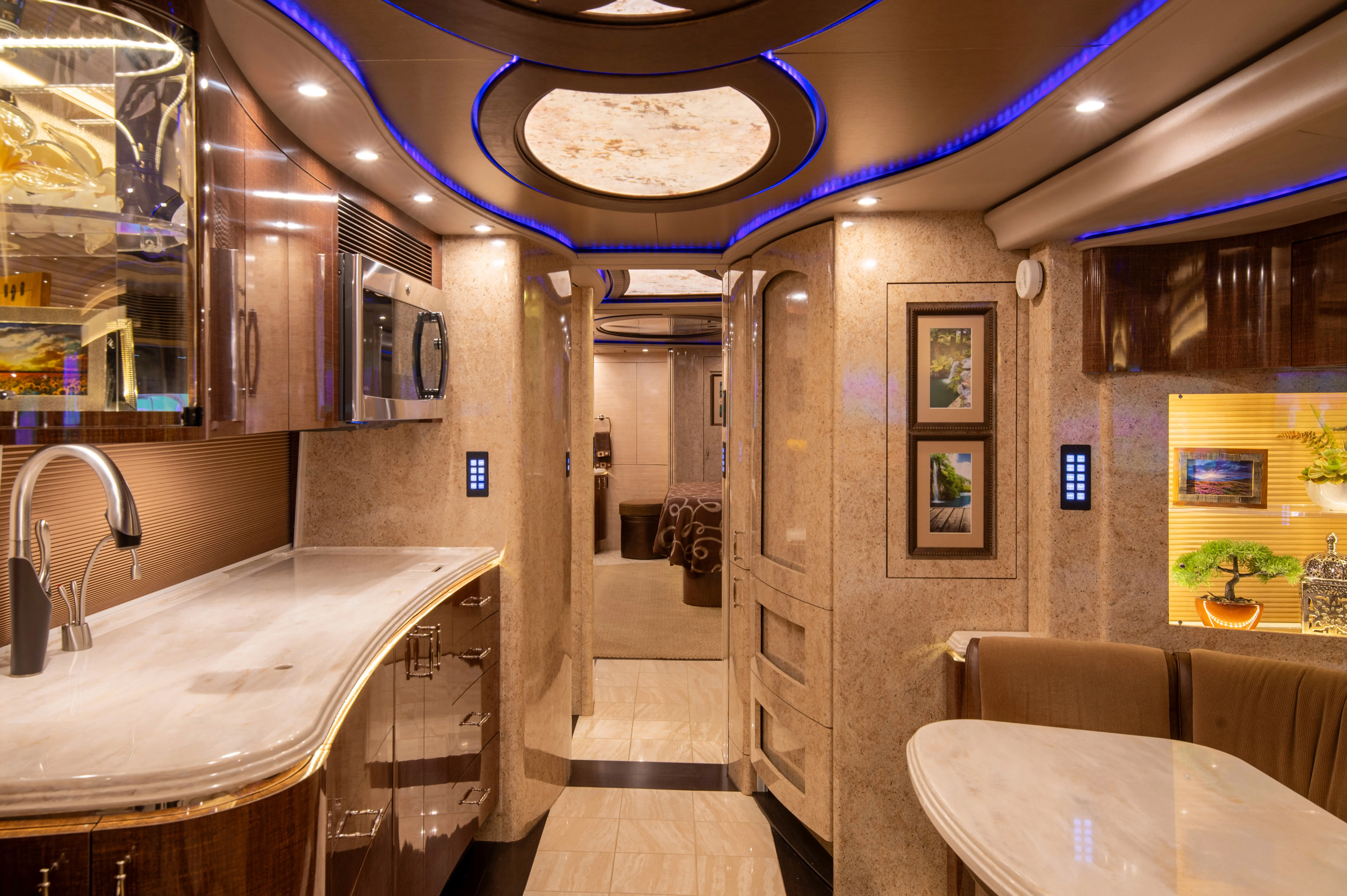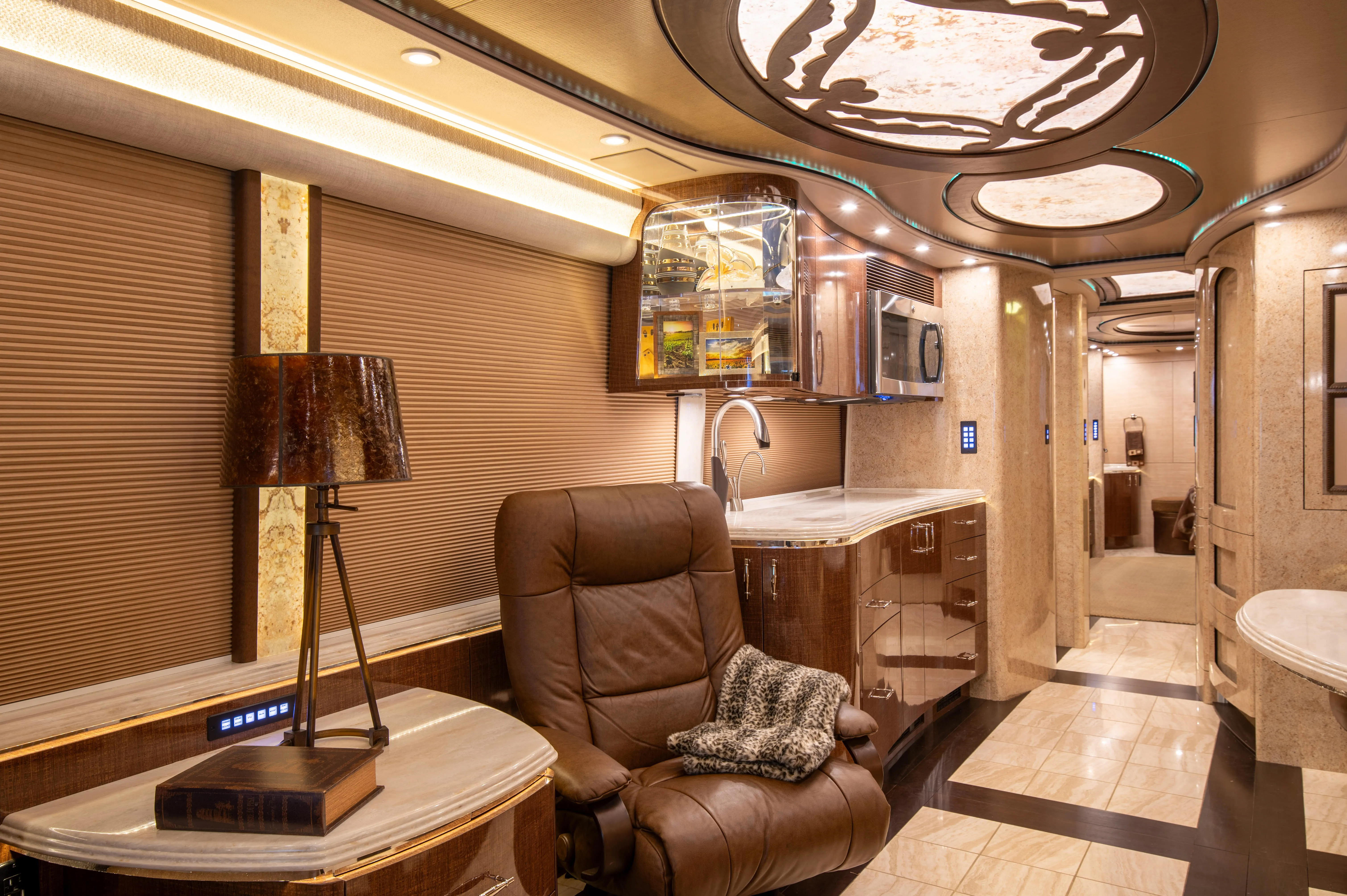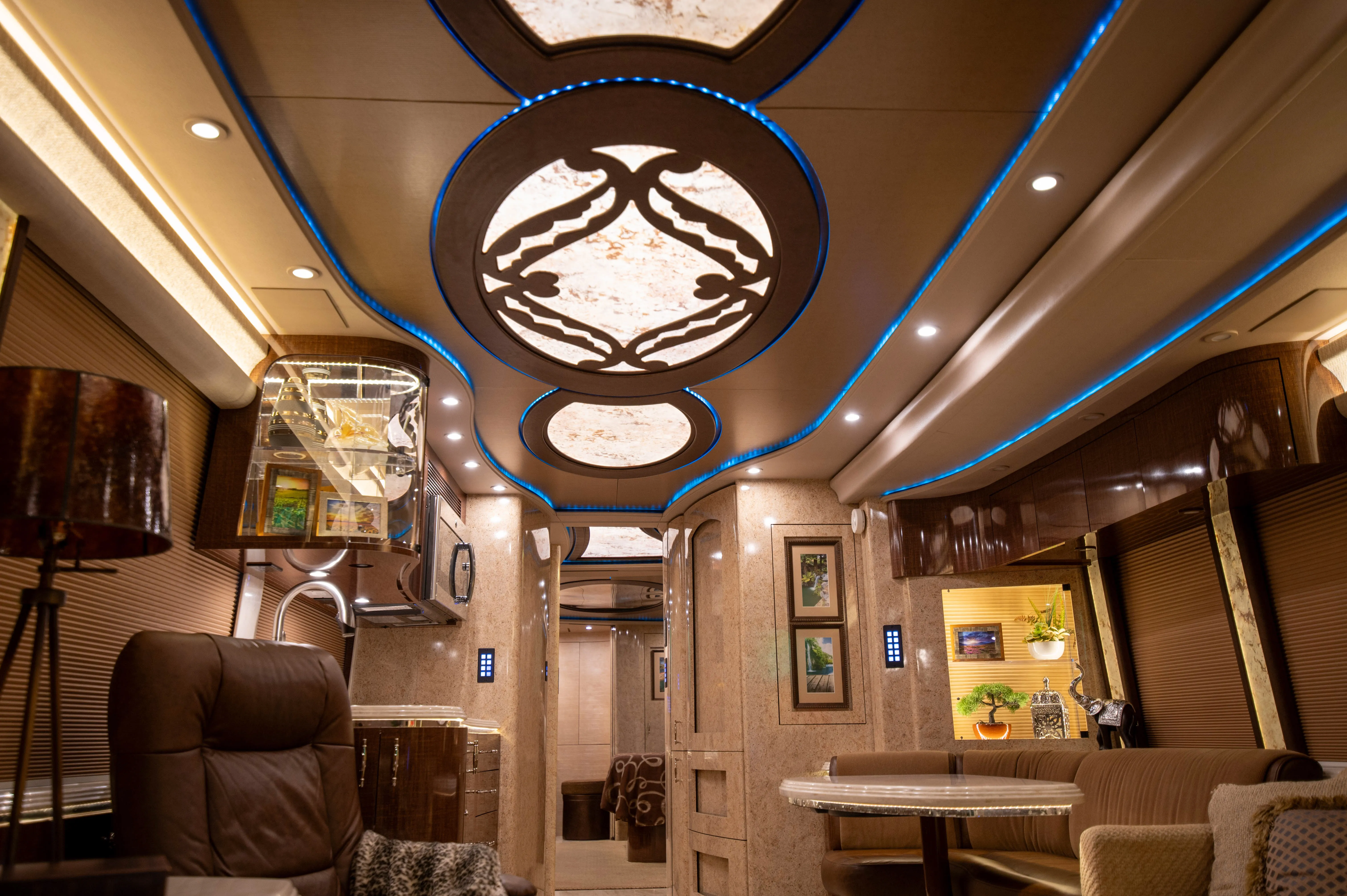 - L-shaped leather dinette for relaxed dining and seating flexibility