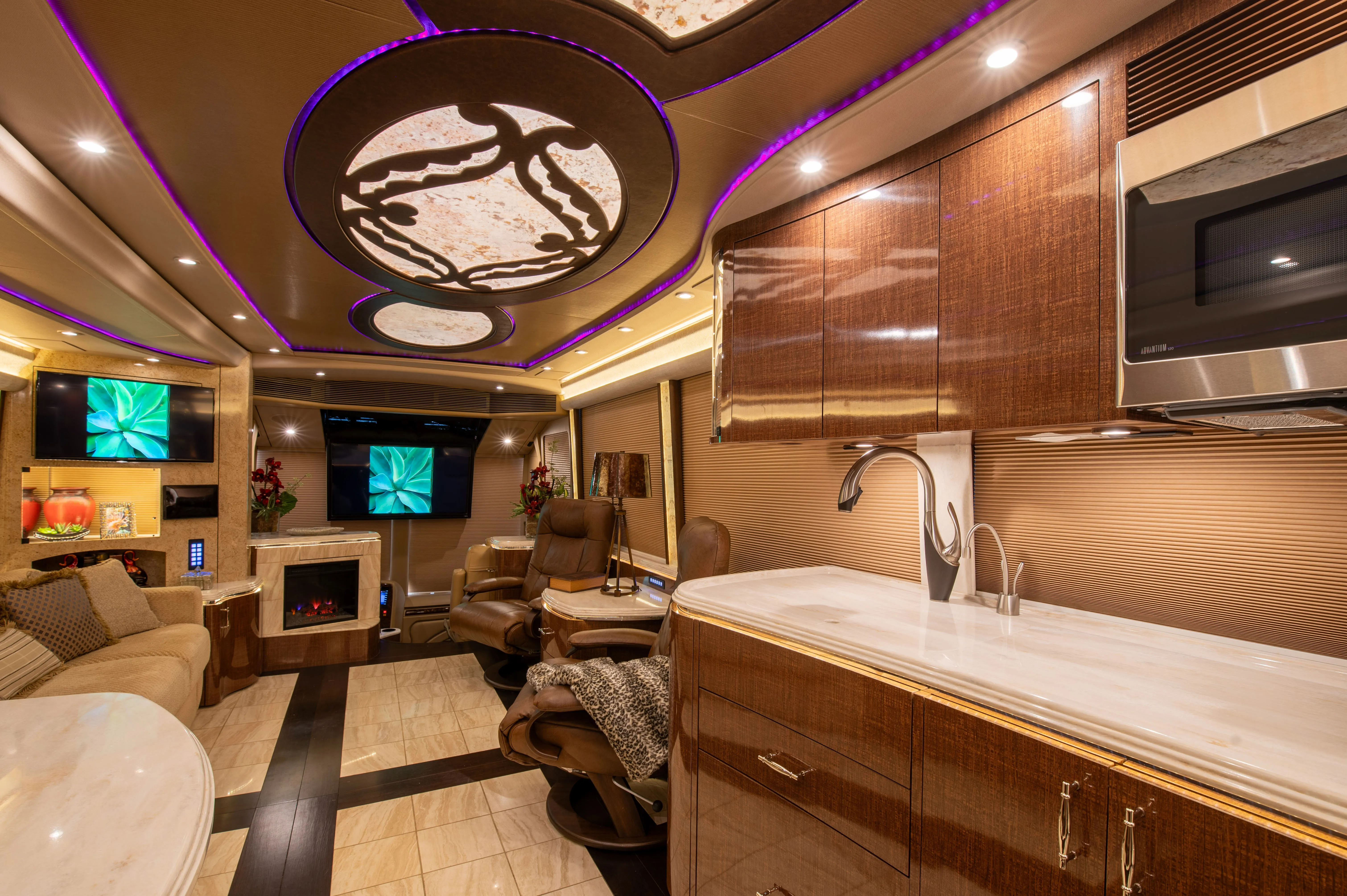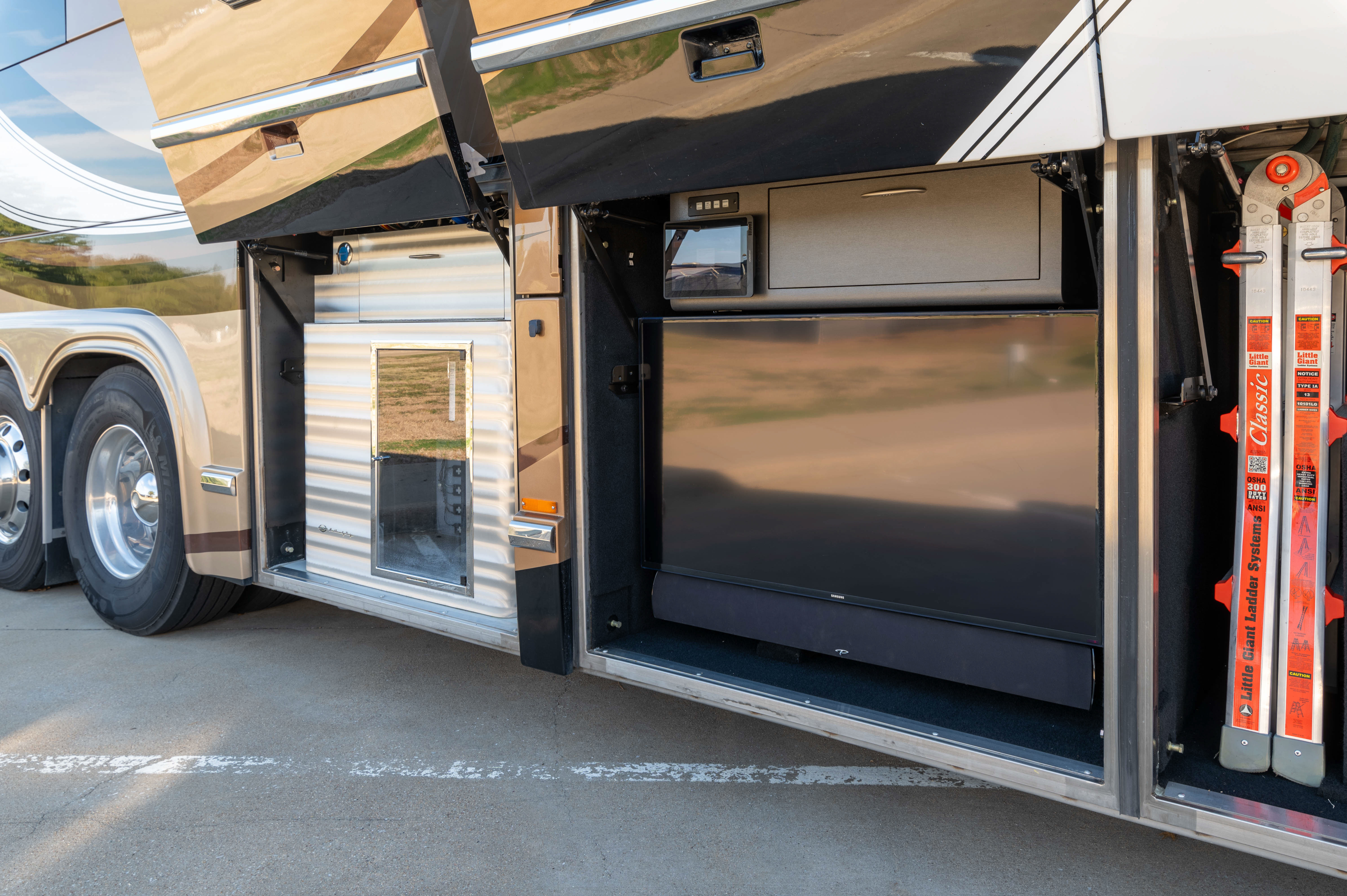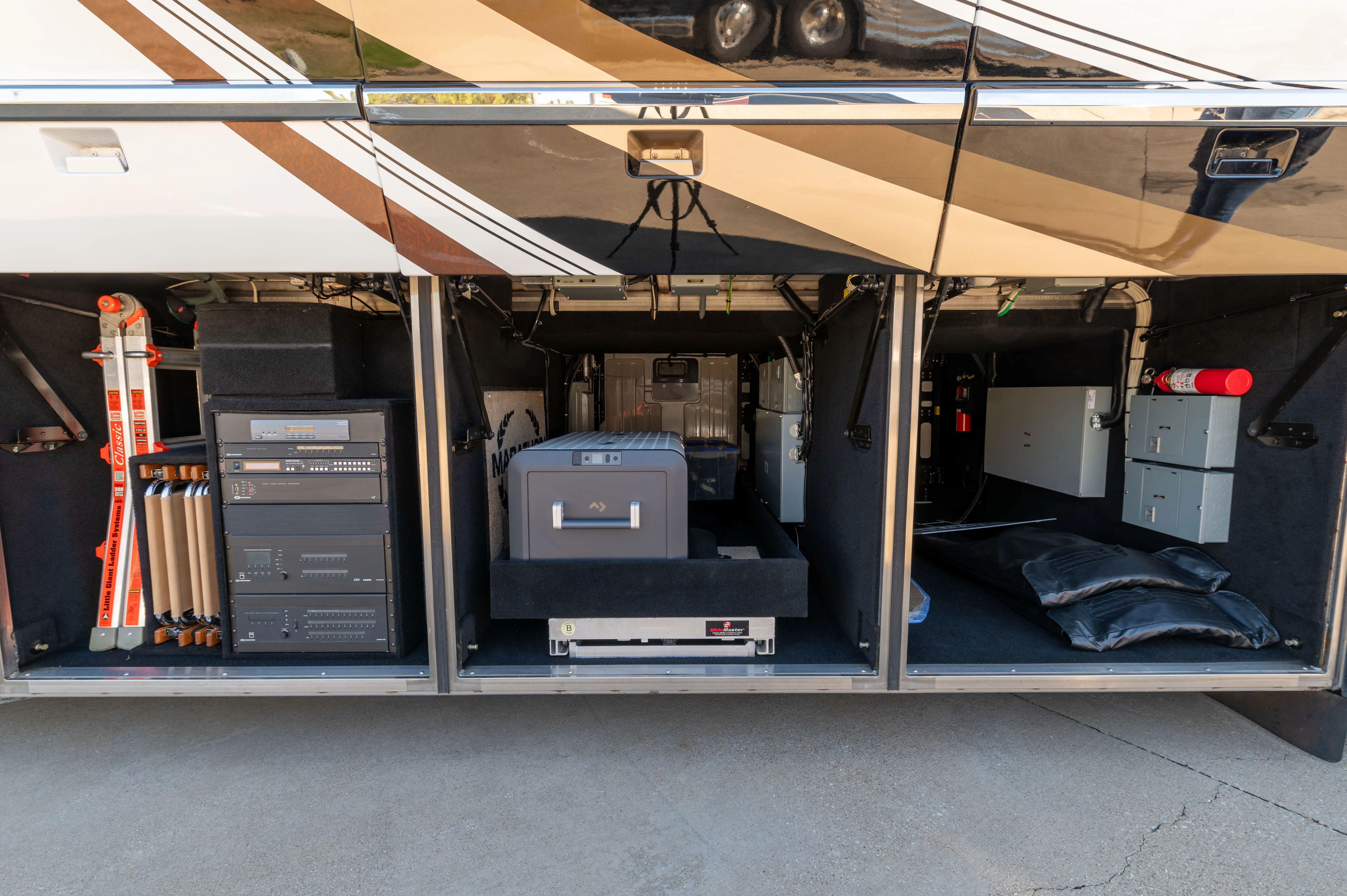 This 2015 Marathon Coach on the Prevost H3-45 chassis is configured to deliver comfortable daily living with practical upgrades that matter over the long haul. The double-slide layout supports a livable interior footprint, while thoughtful features improve comfort, usability, and outdoor enjoyment.