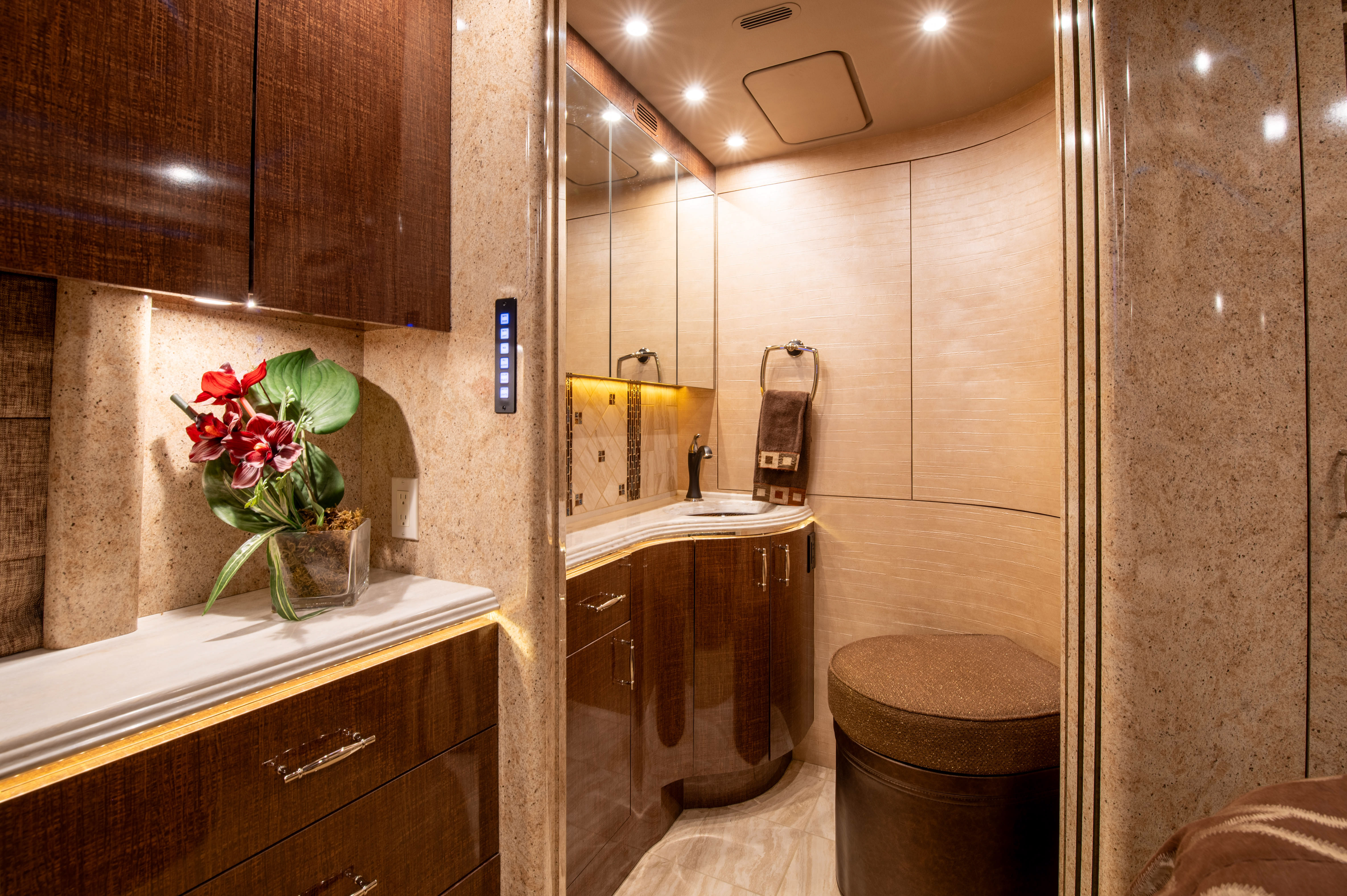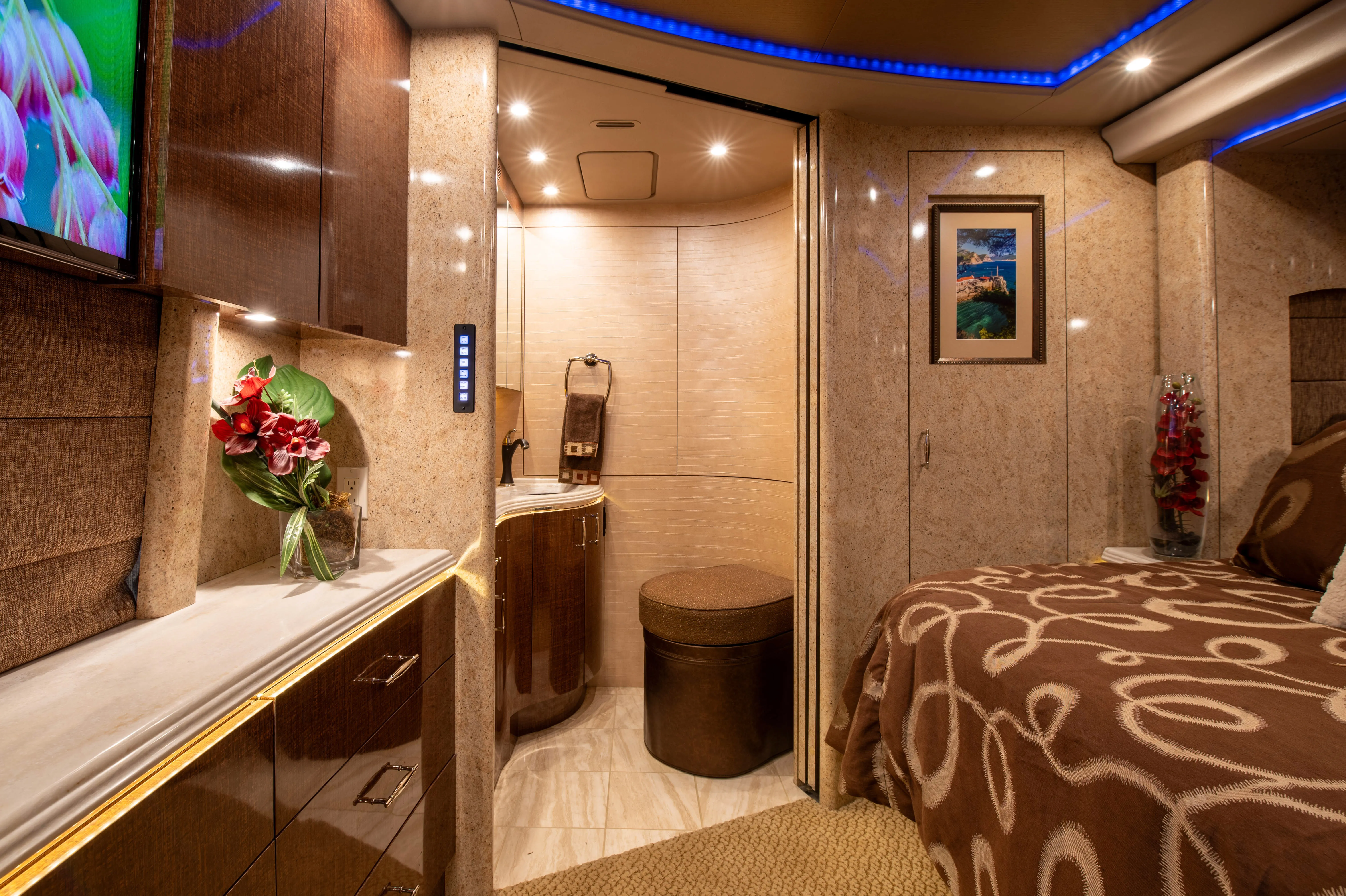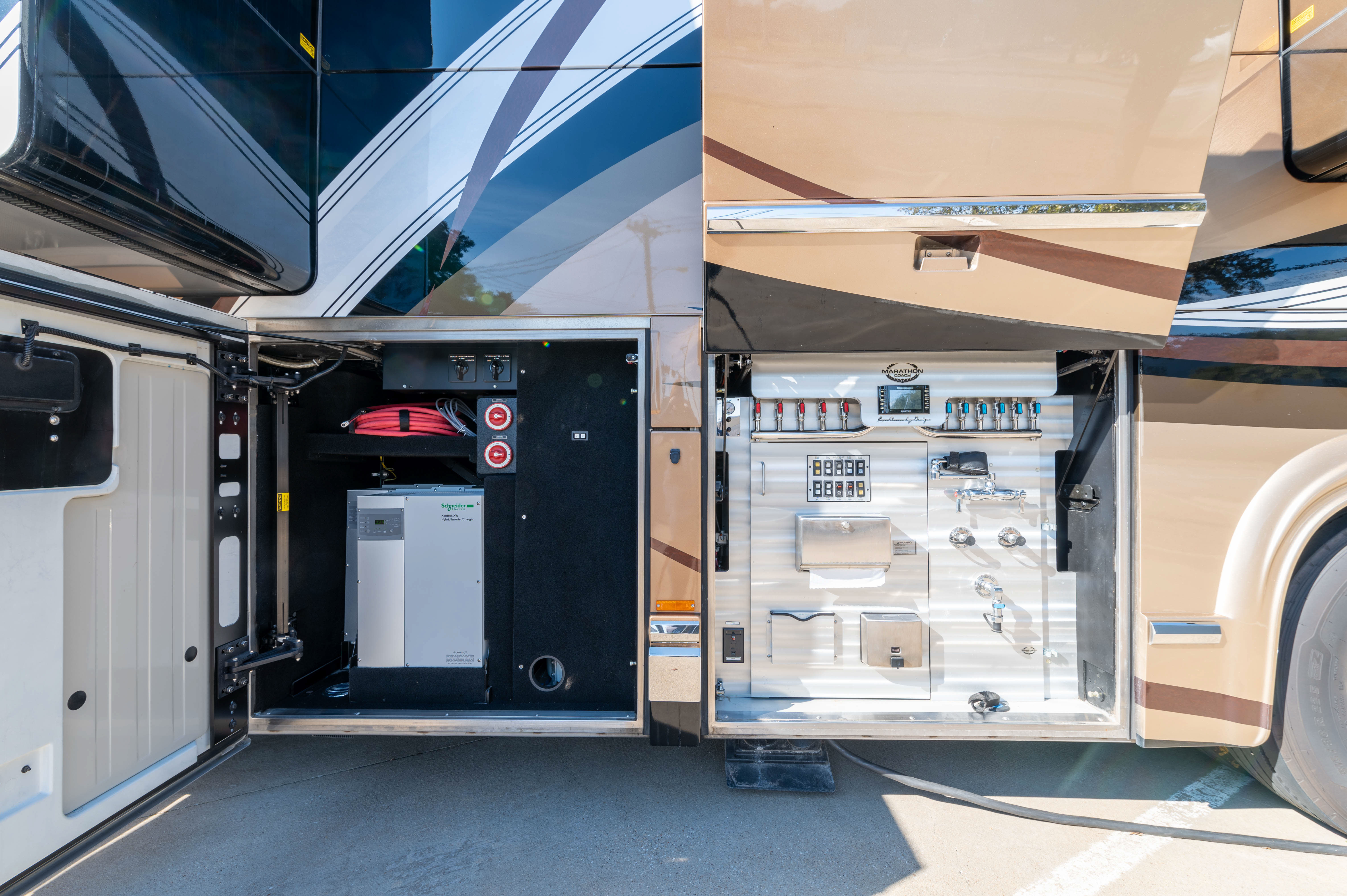 Interior details and core systems are designed to make ownership easier, from consistent shower temperature control to a sewer setup that supports cleaner, faster campsite transitions.