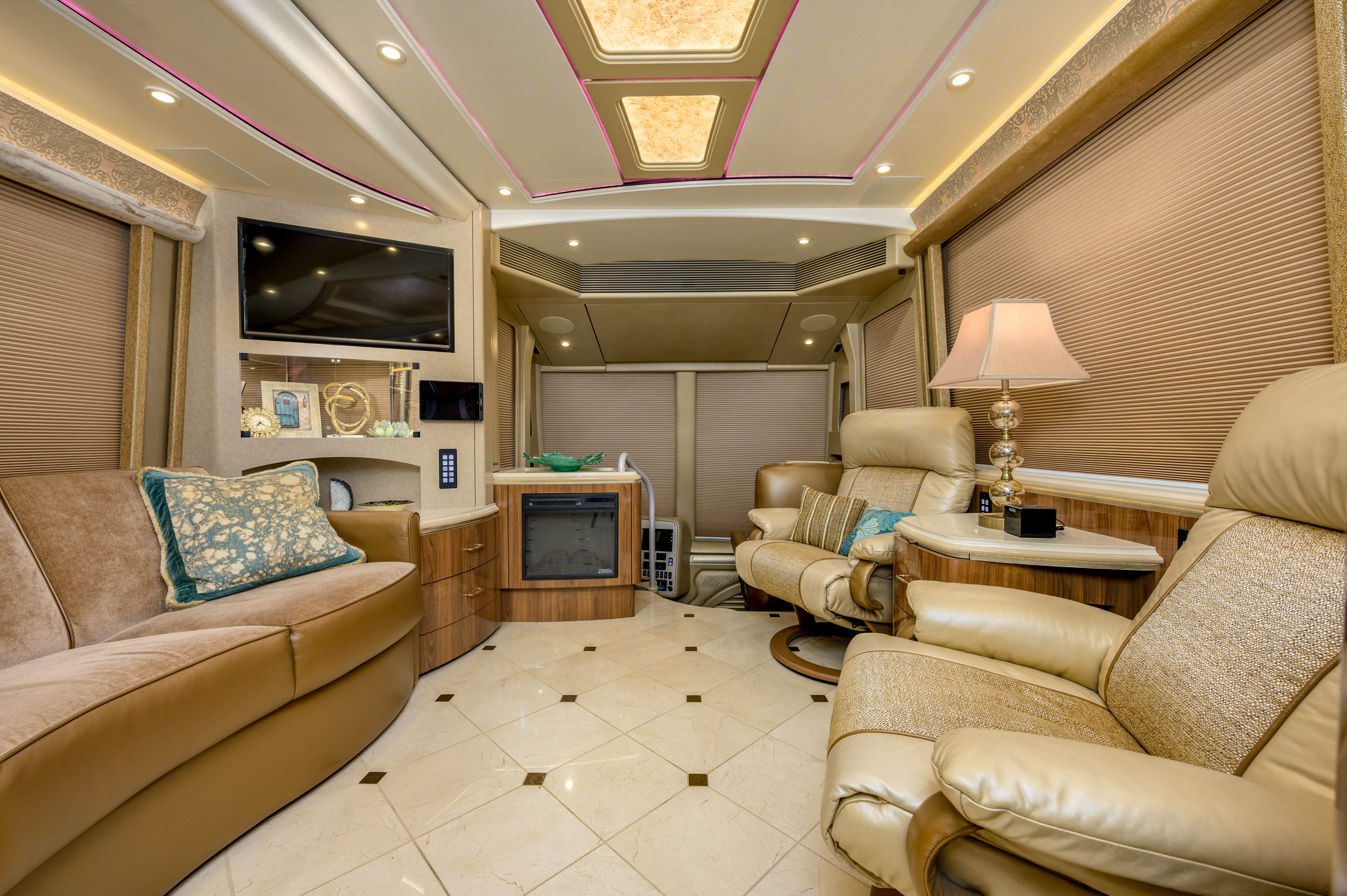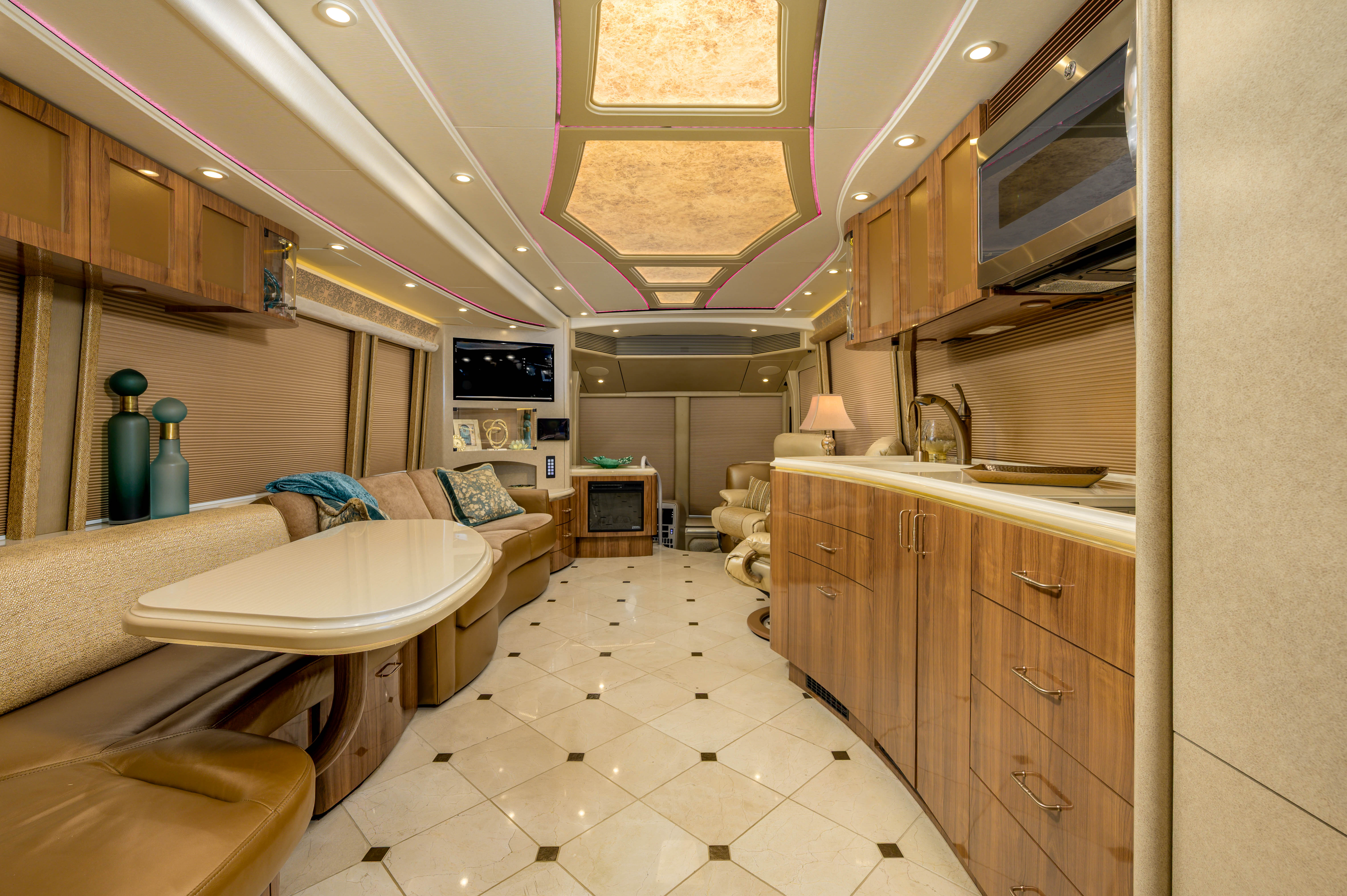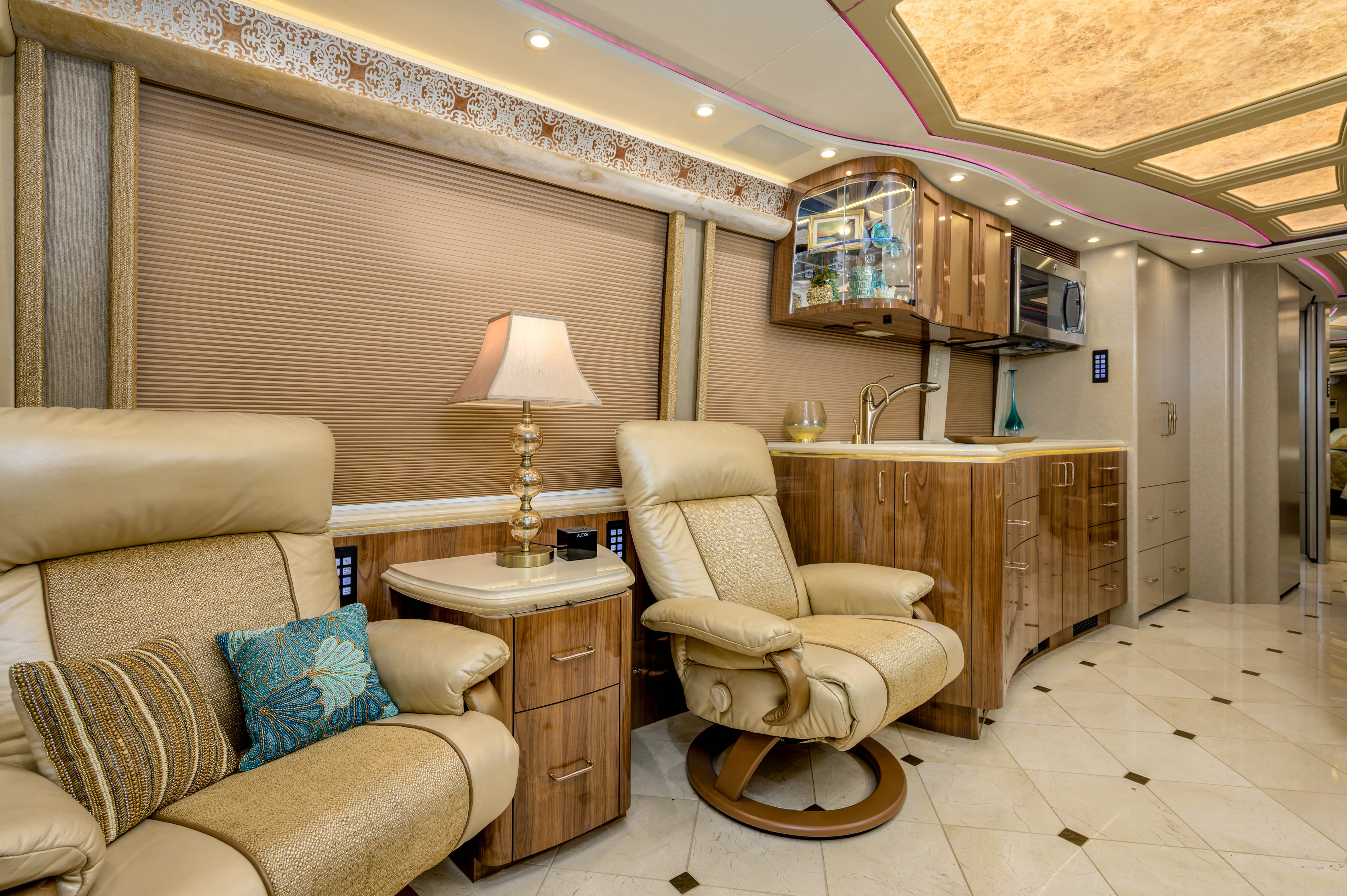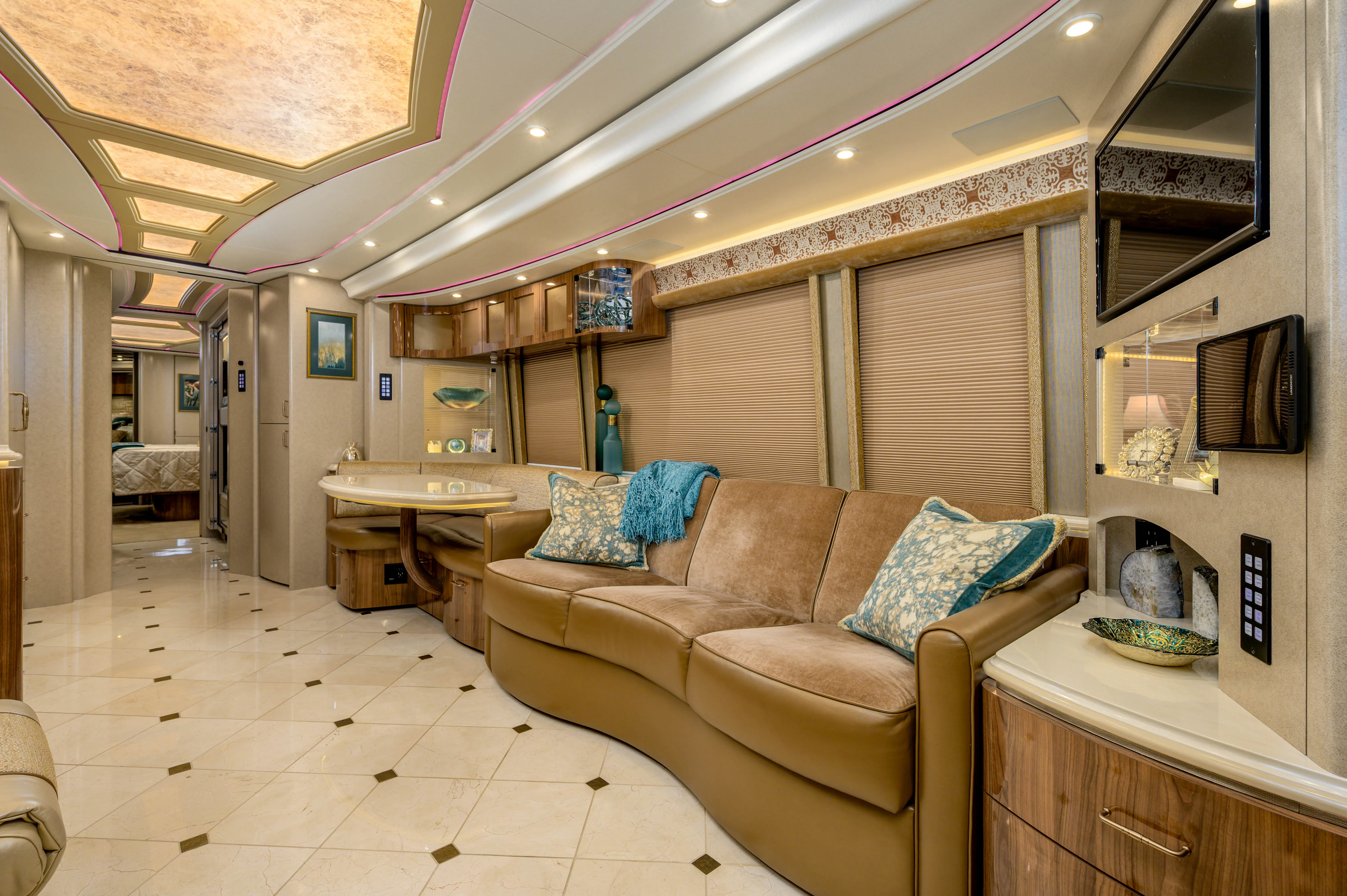 Integrated Crestron controls support intuitive management of key systems, while Prevost driver-assist technology and robust off-grid power capability reinforce confidence on longer trips.