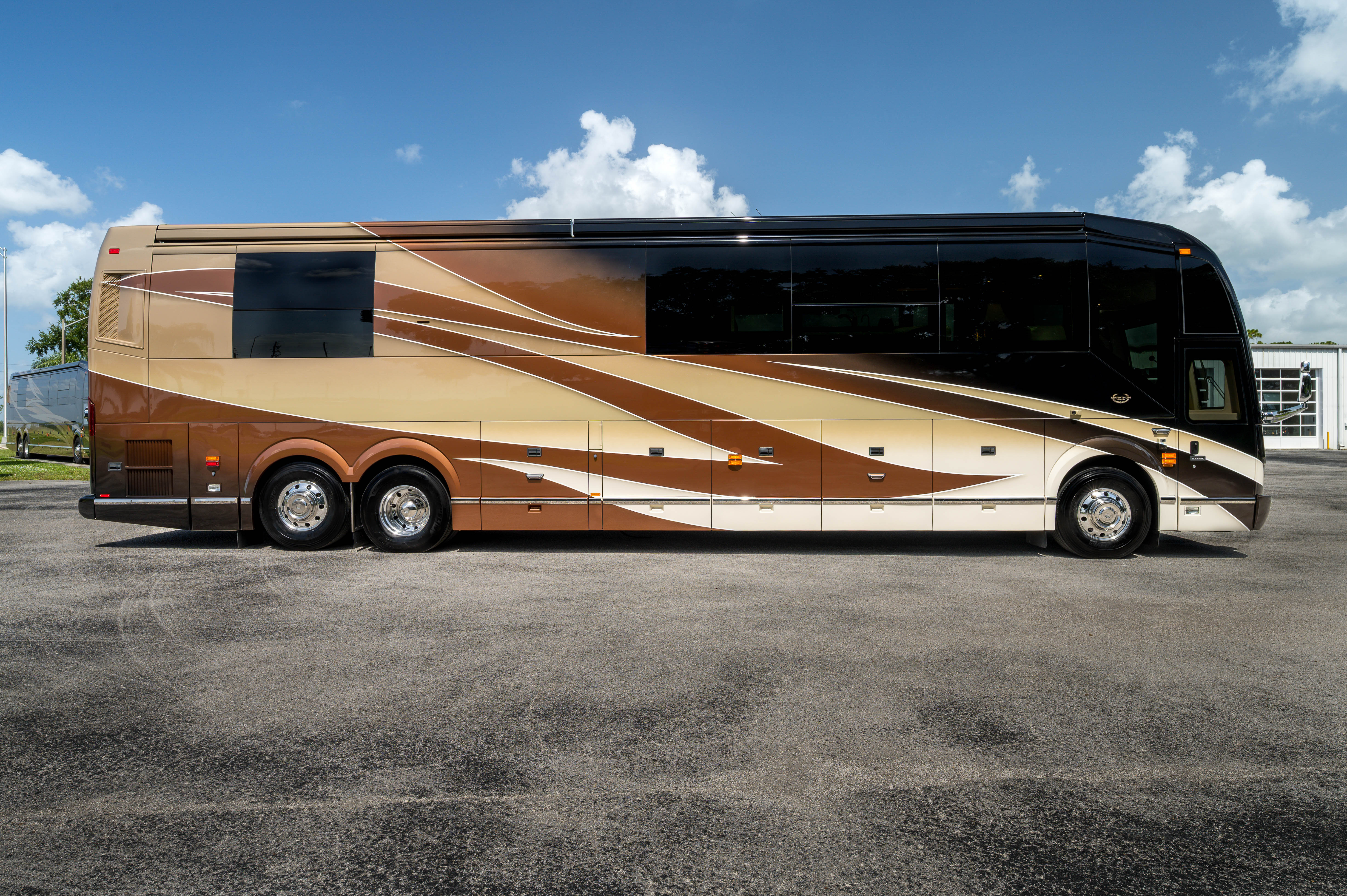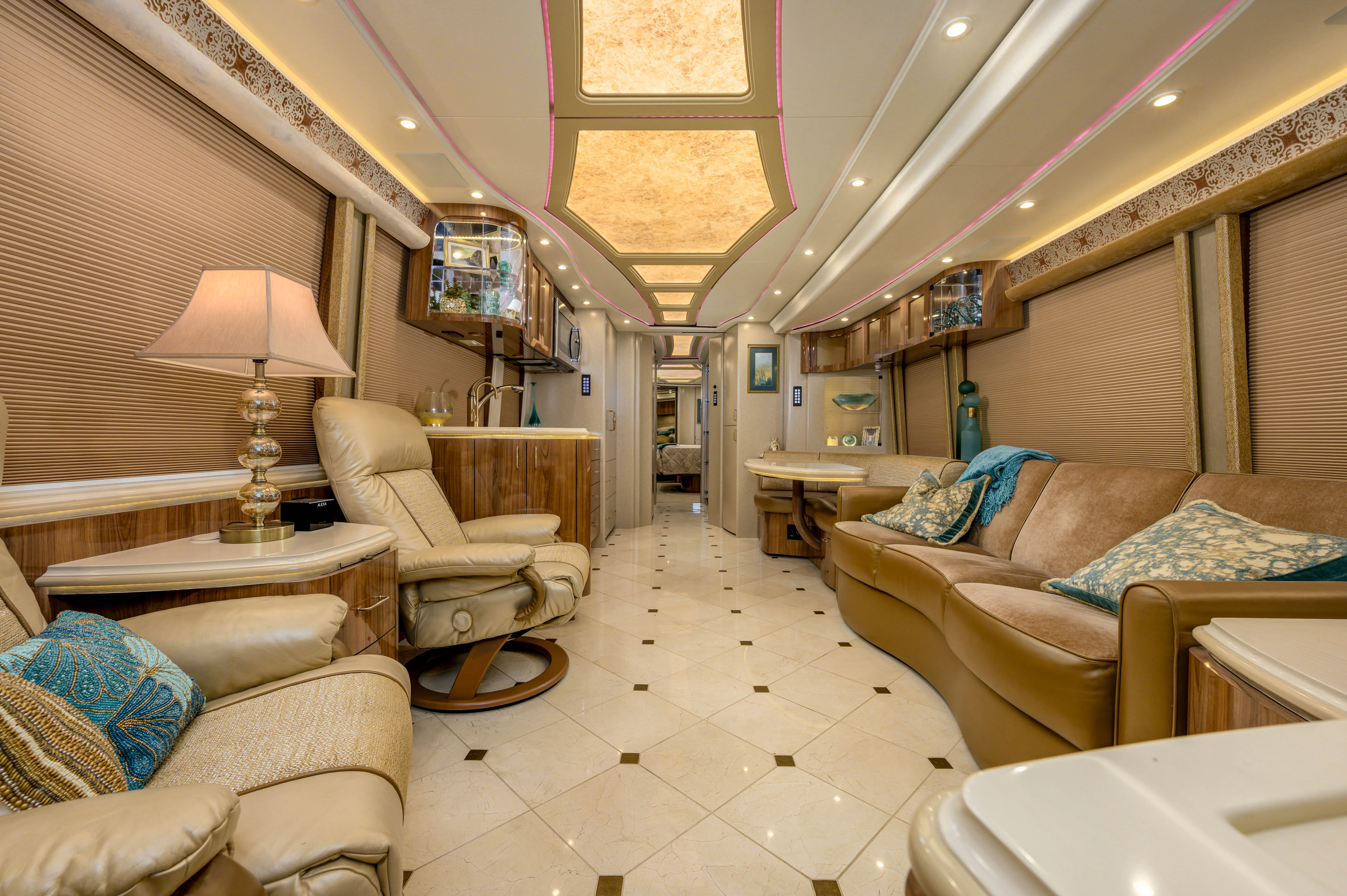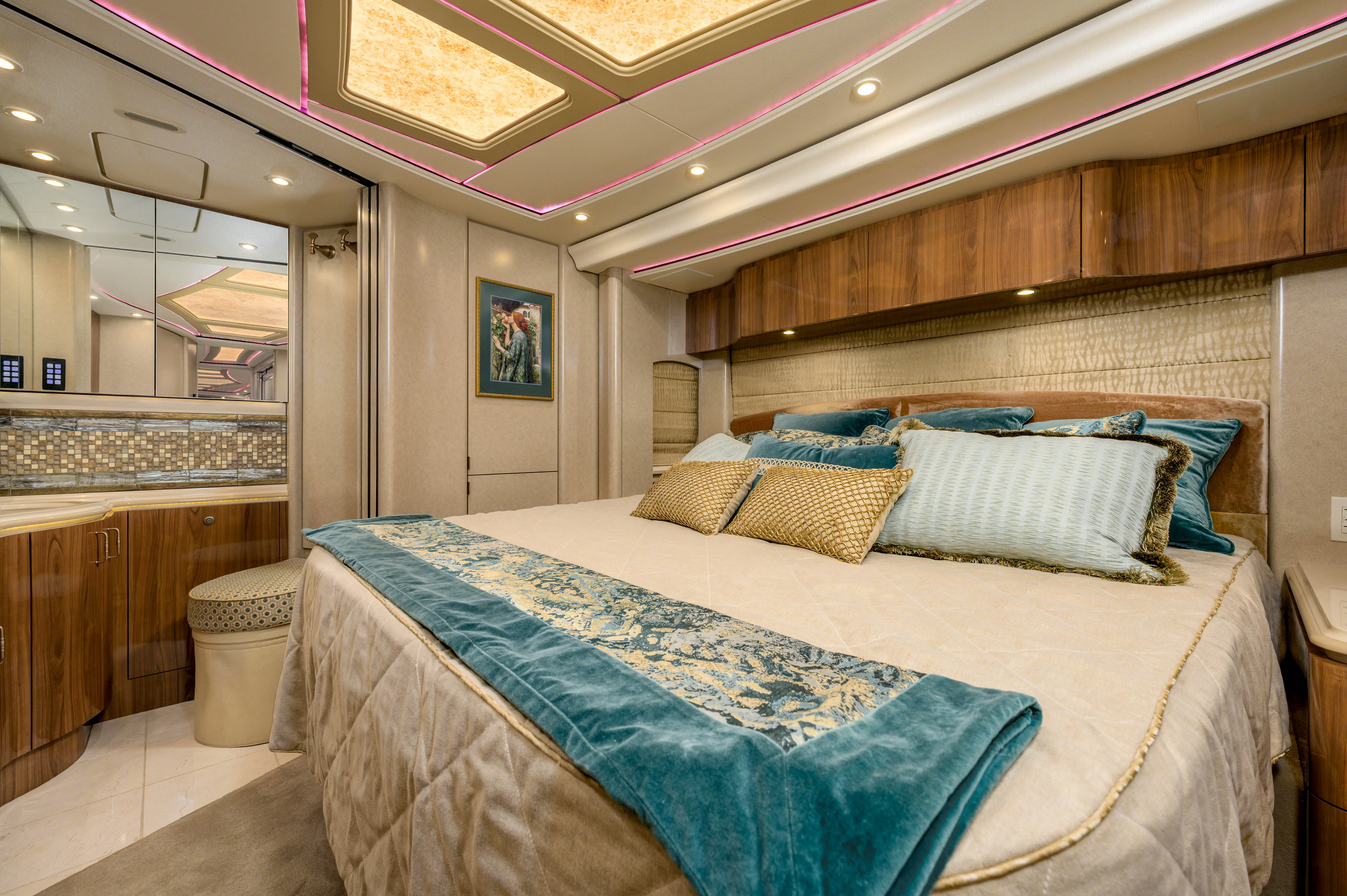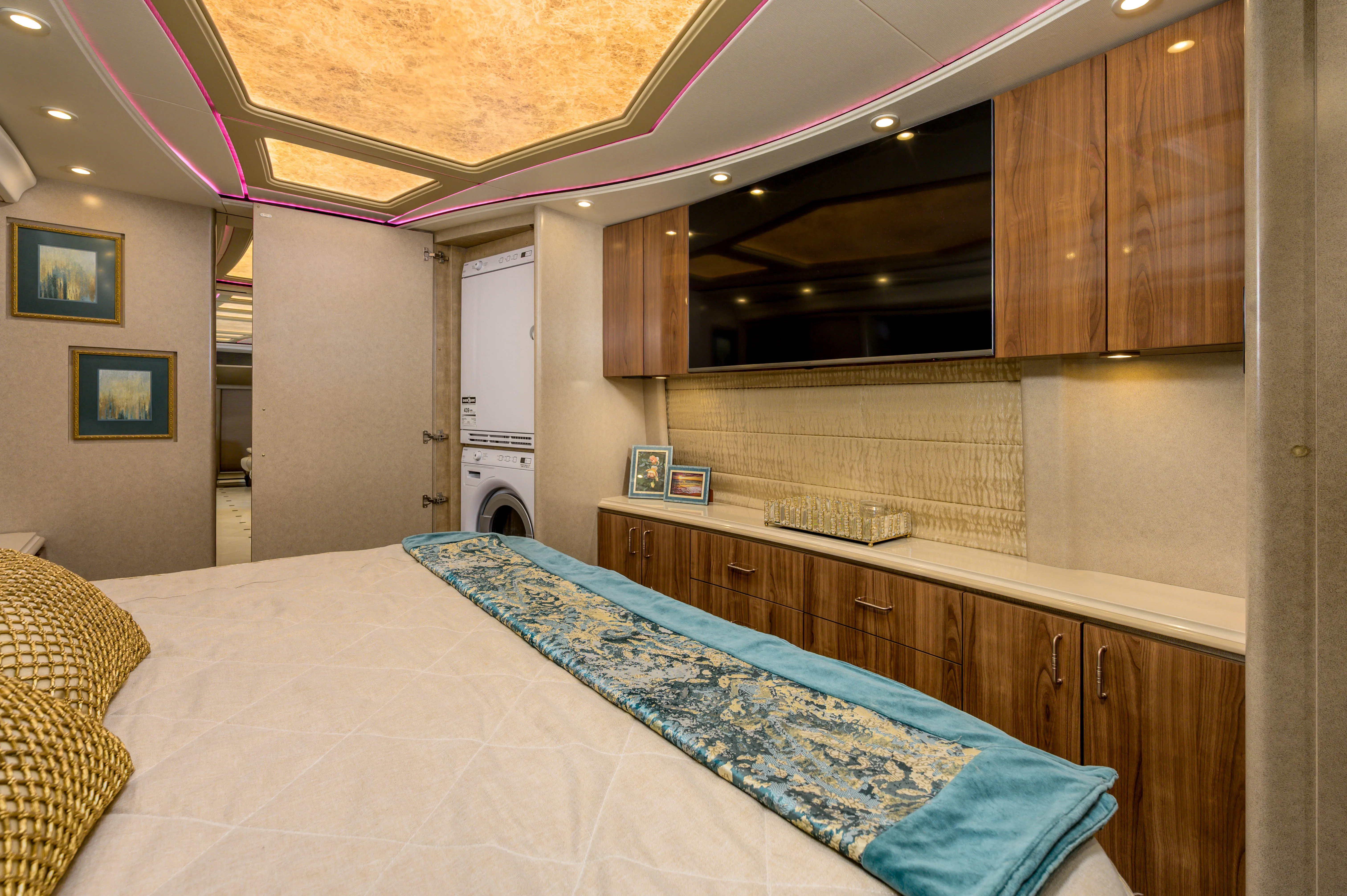 Integrated Crestron controls support intuitive management of key systems, while Prevost driver-assist technology and robust off-grid power capability reinforce confidence on longer trips.