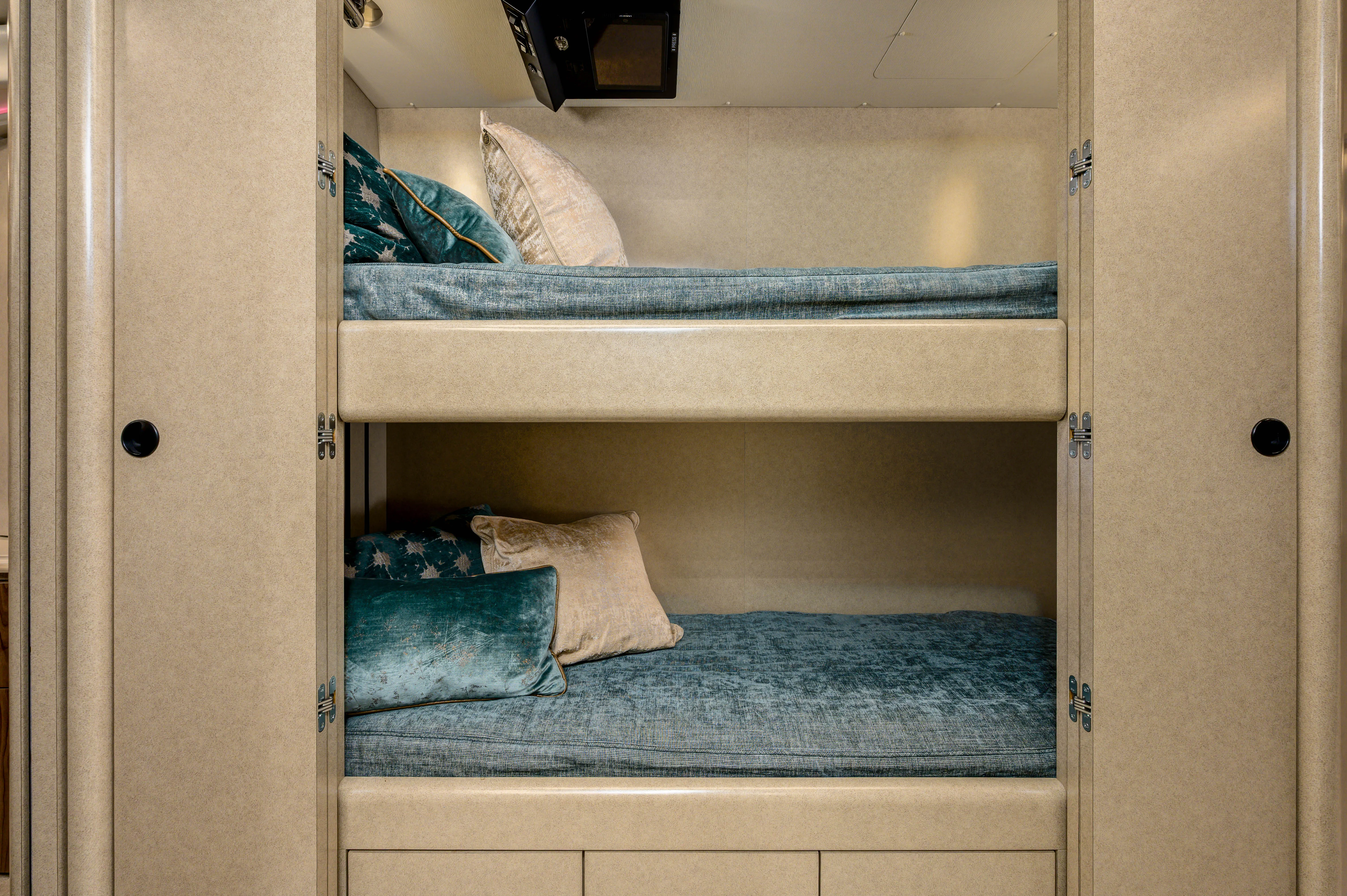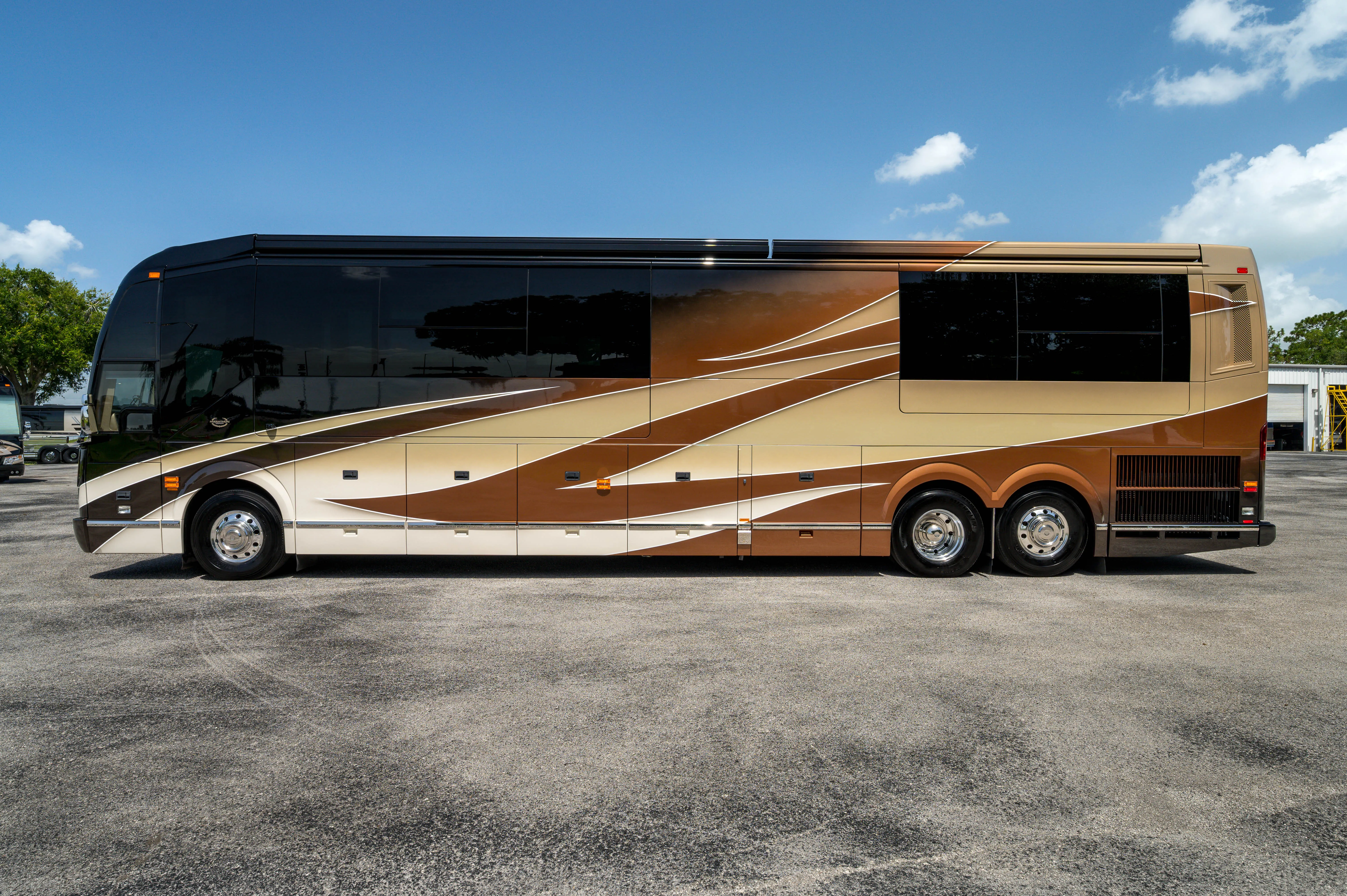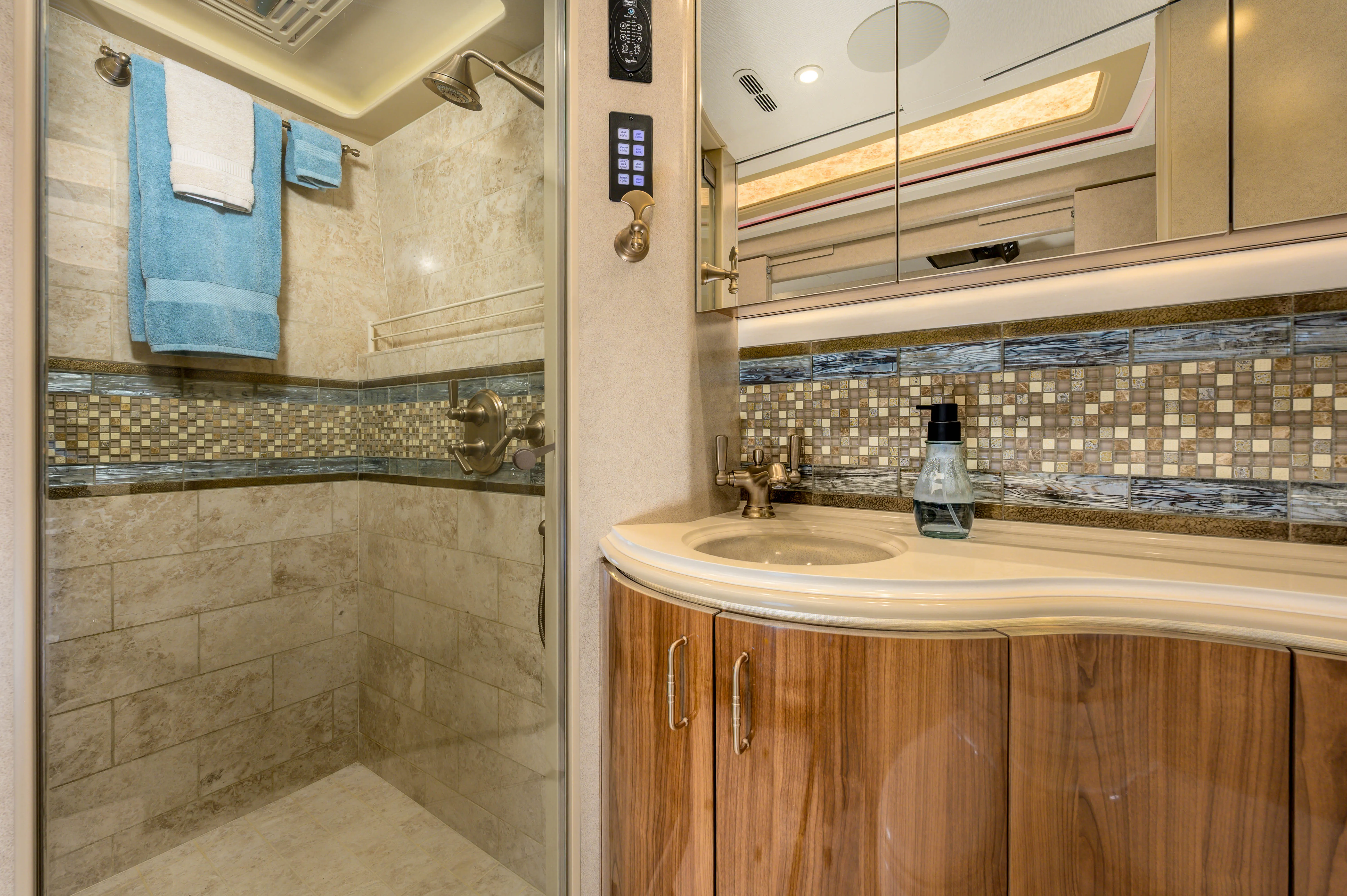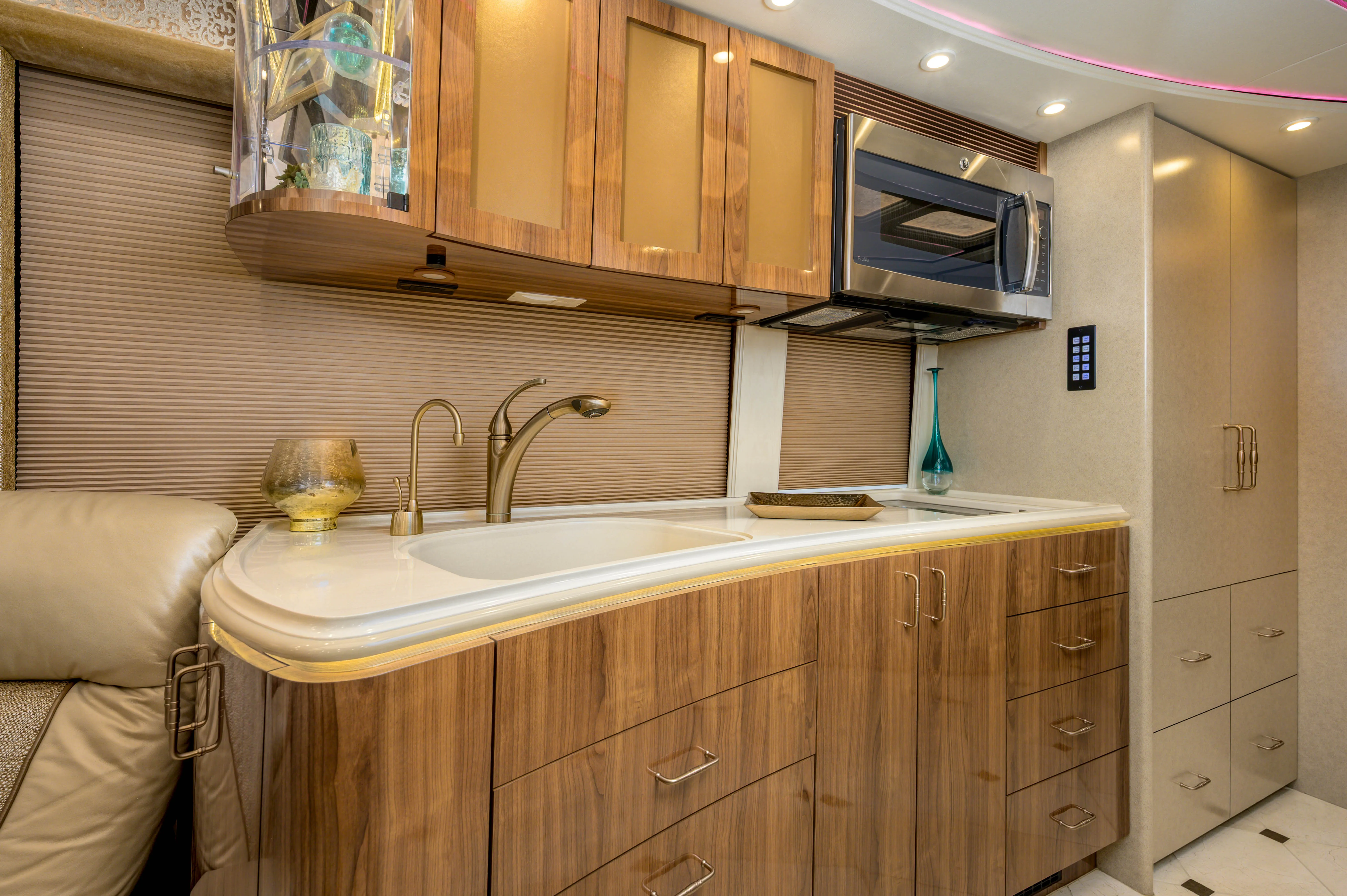 Integrated Crestron controls support intuitive management of key systems, while Prevost driver-assist technology and robust off-grid power capability reinforce confidence on longer trips.