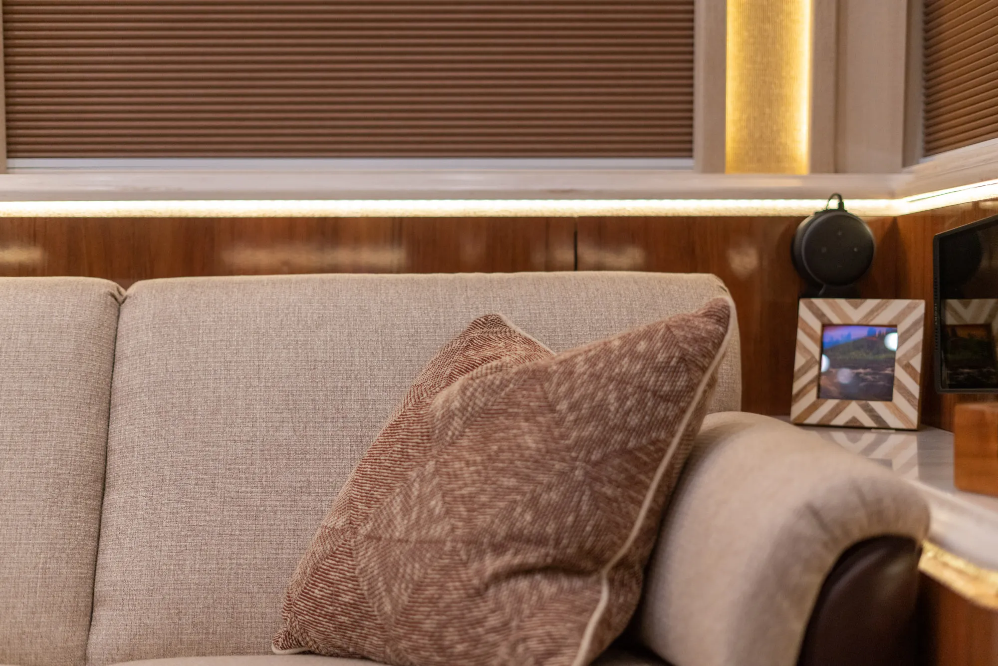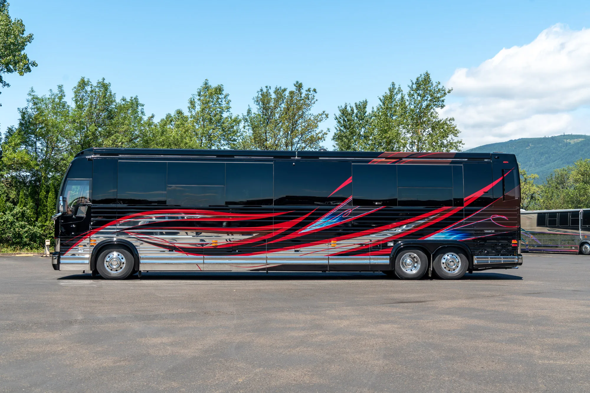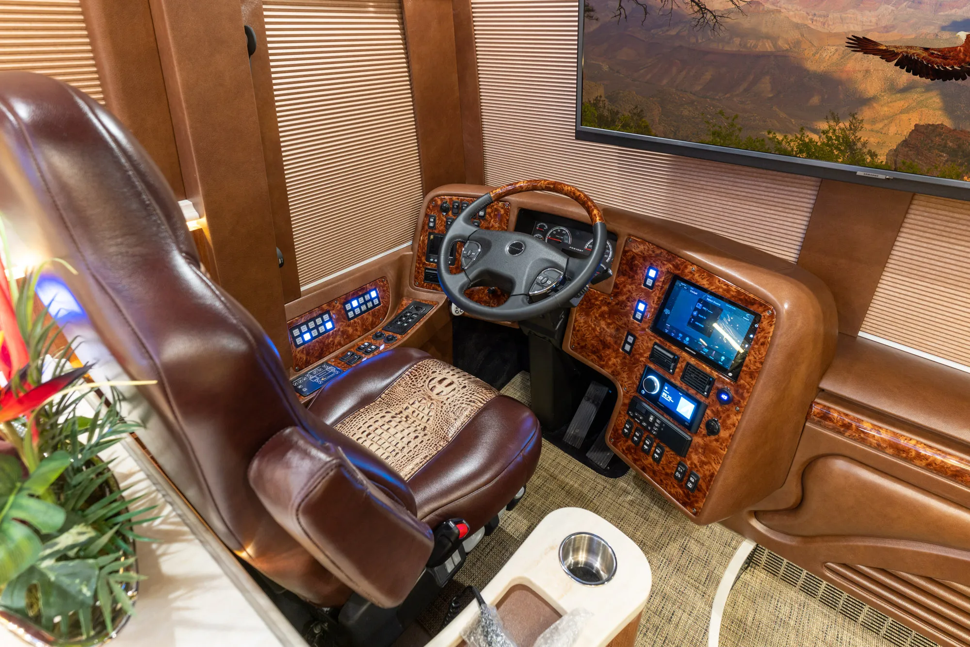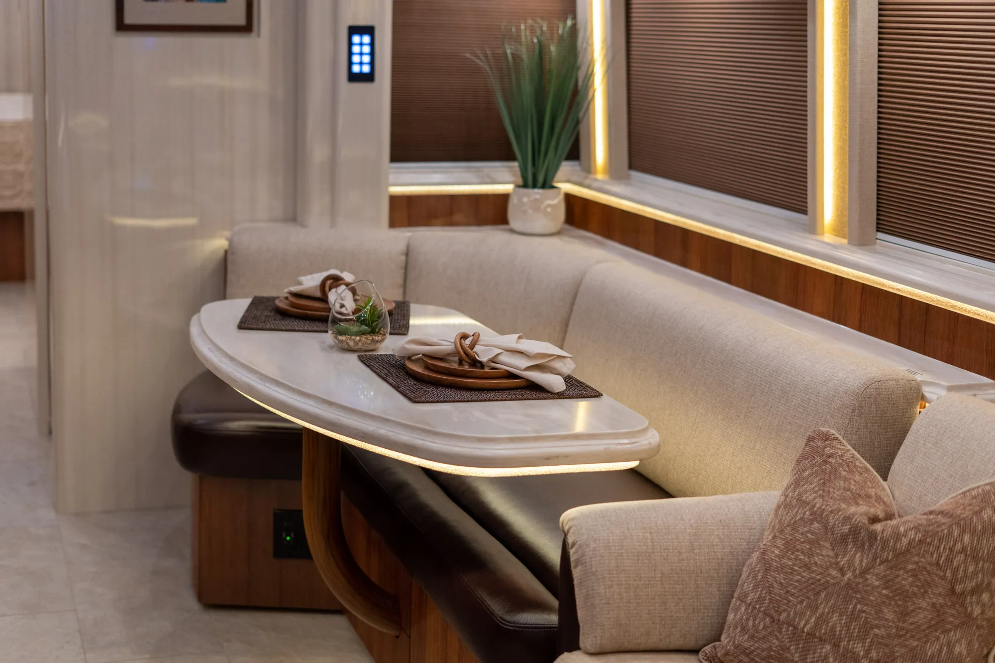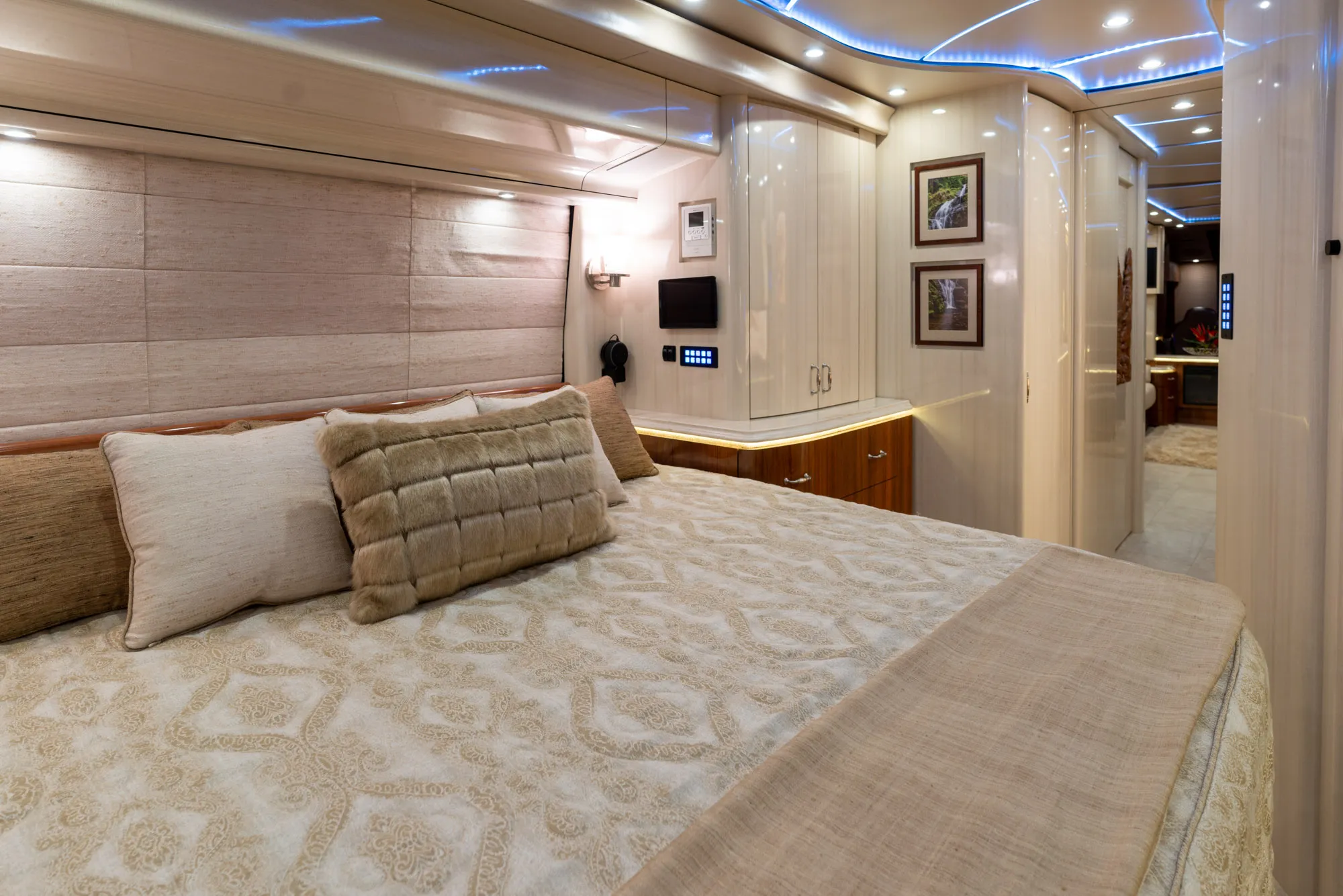 This 2021 Marathon Coach is built on the Prevost X3-45 chassis and reflects a contemporary approach to both design and functionality. The double-slide layout provides a balanced interior footprint that feels open while remaining efficient and easy to manage.
