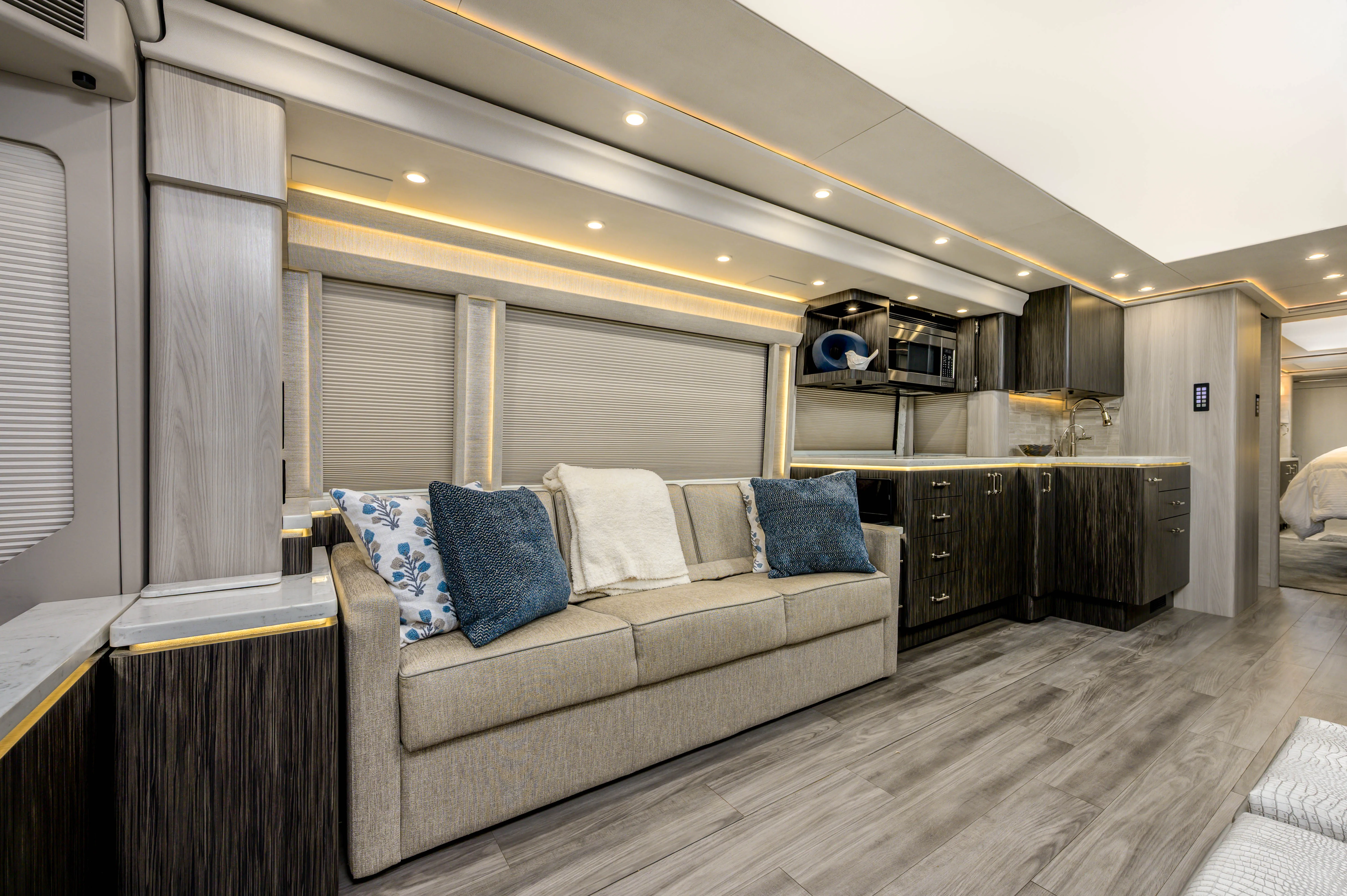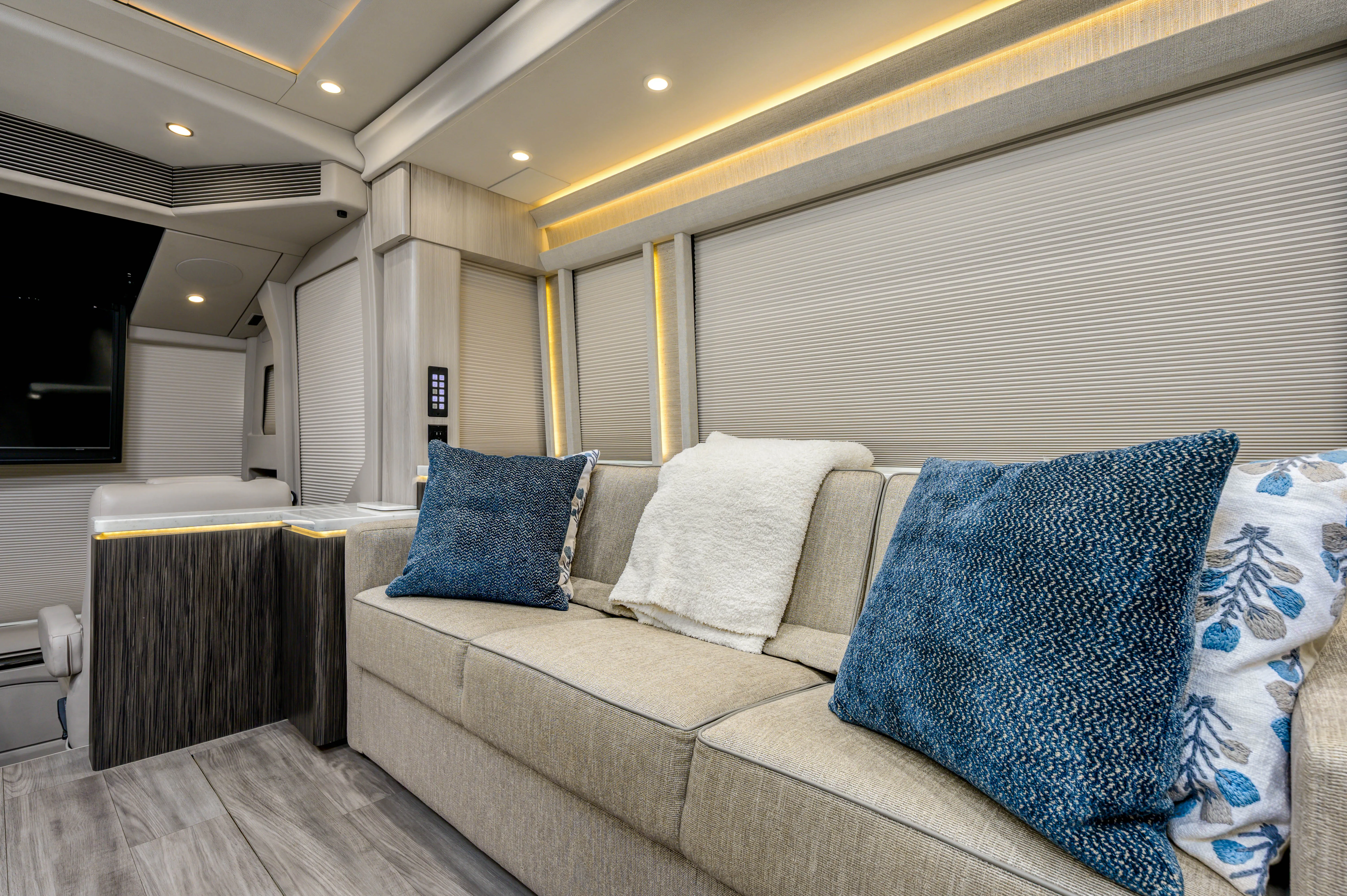 Comfort-forward systems and thoughtful lighting details support both everyday use and long-term travel.
