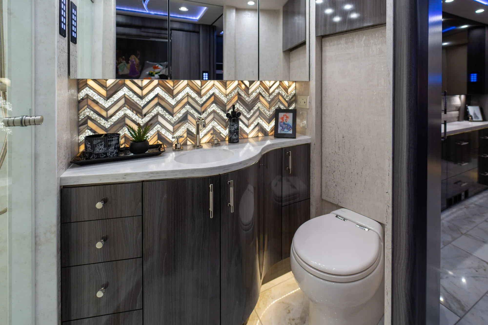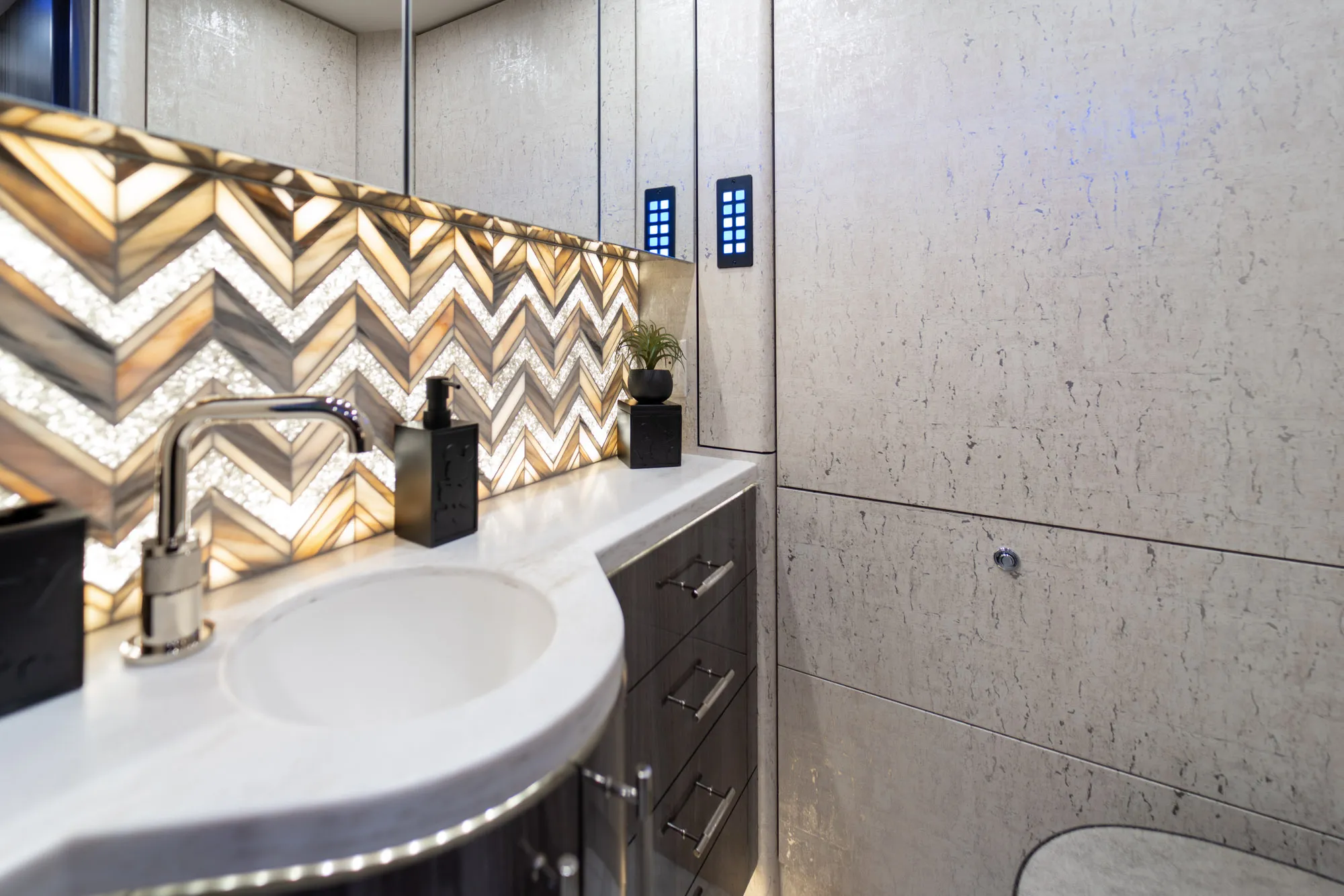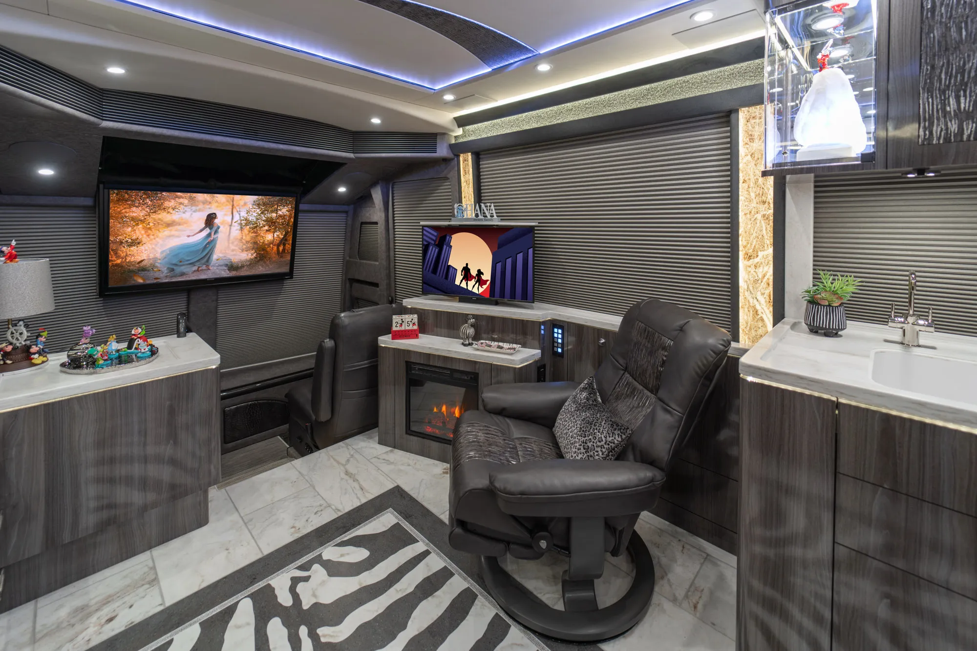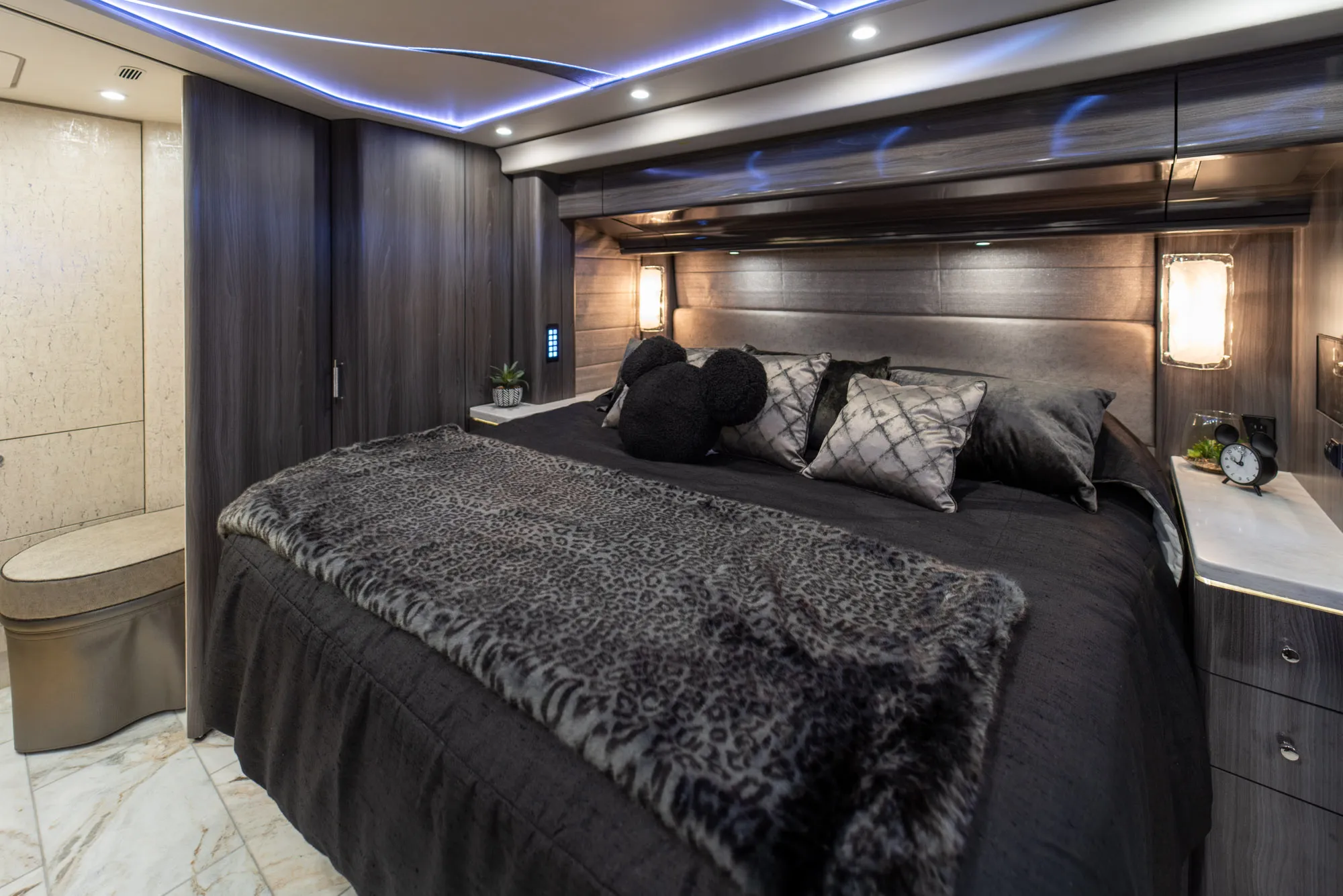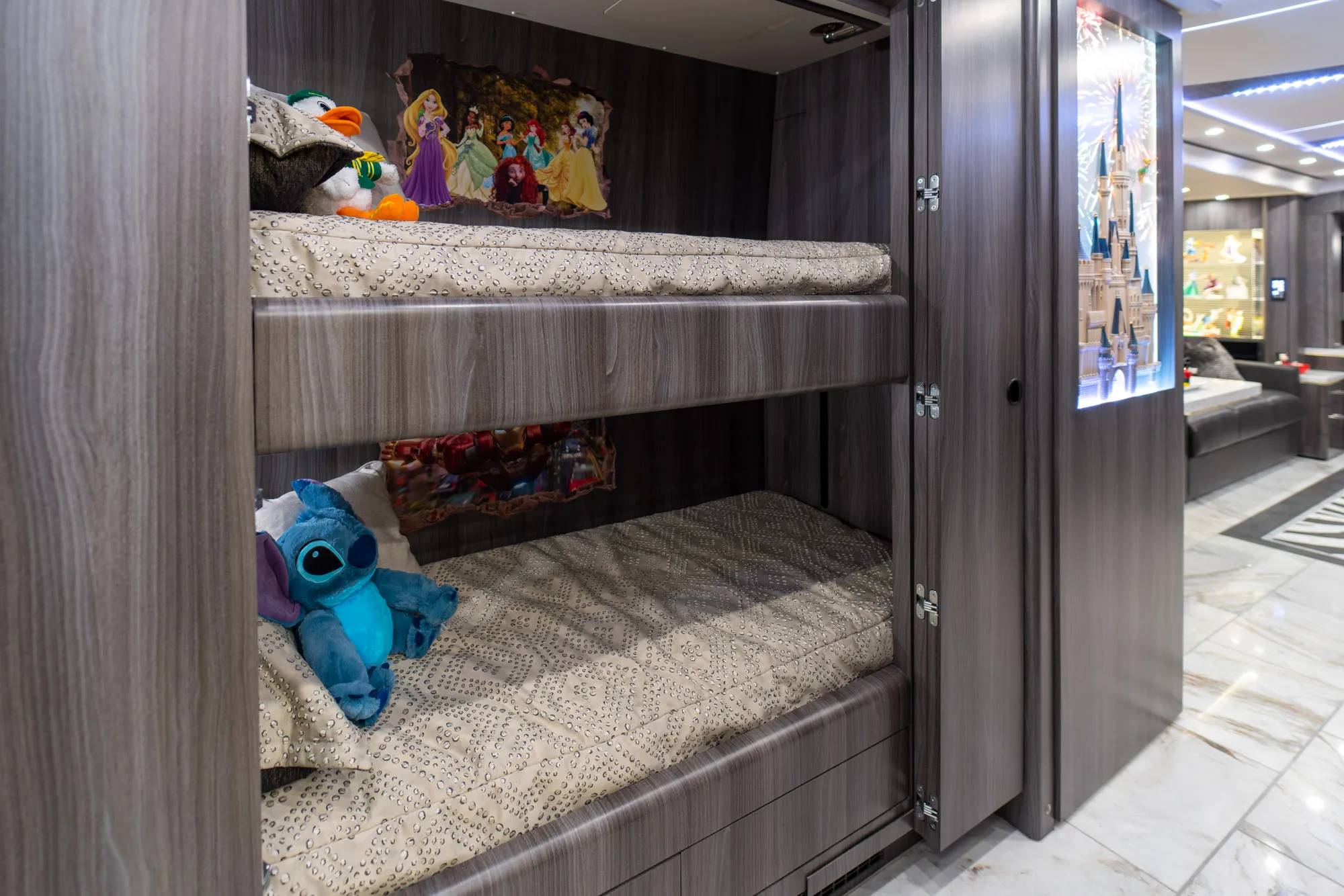 - Crestron audio with surround sound for immersive cabin entertainment