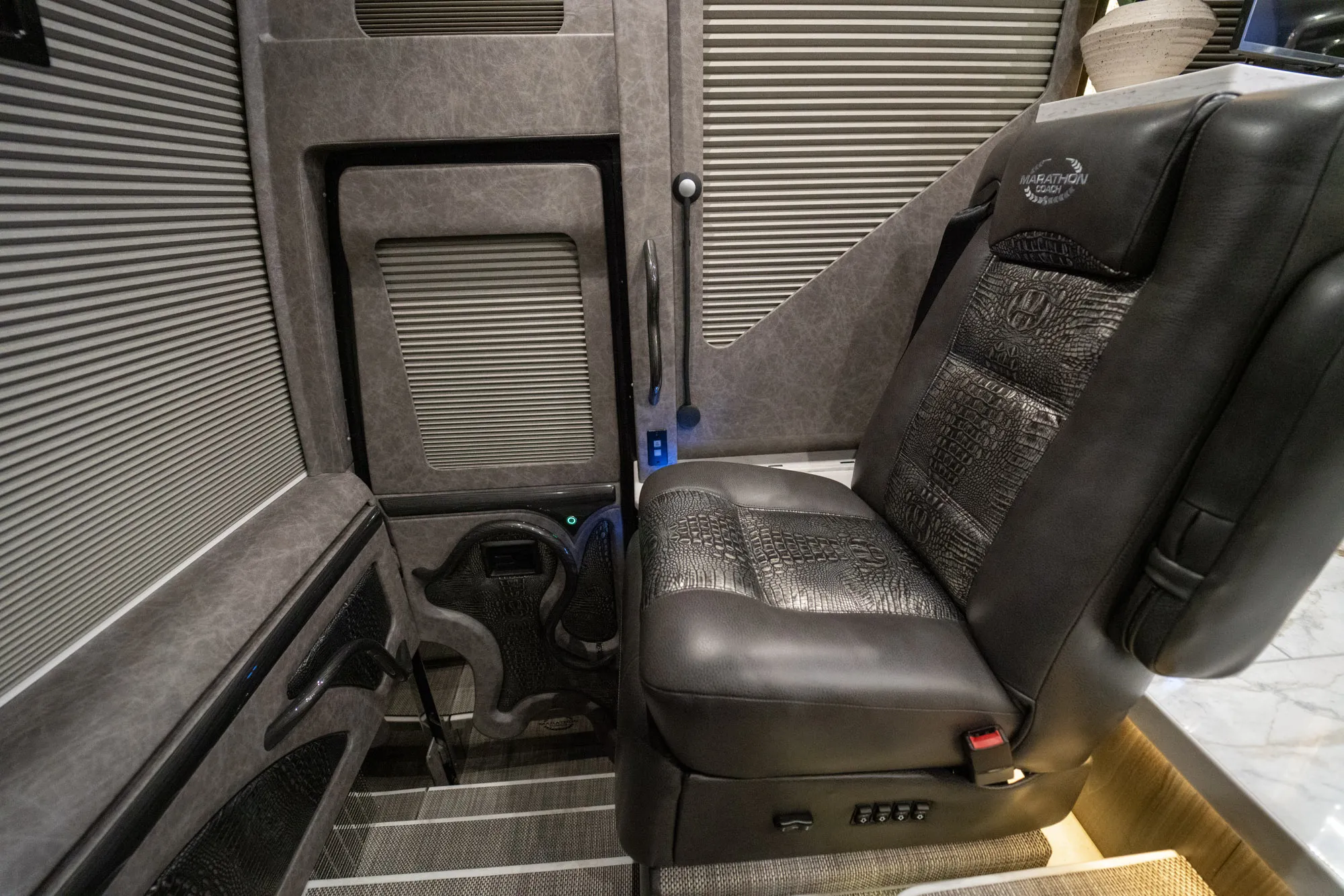 This 2022 Marathon Coach is built on the Prevost H3-45 chassis and configured around comfort, reliability, and integrated systems. The double-slide layout delivers a balanced interior footprint that feels open while remaining efficient and easy to live with.