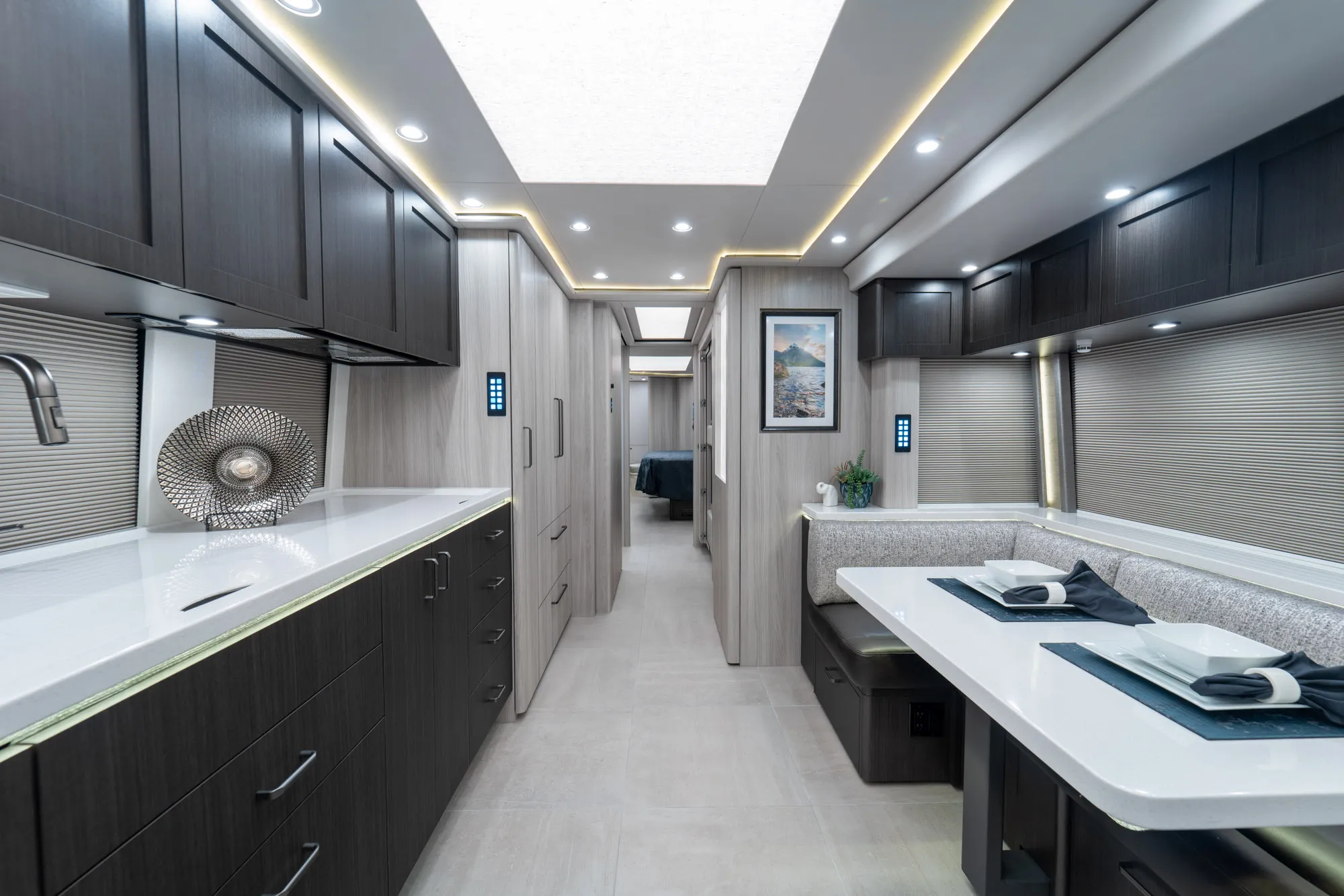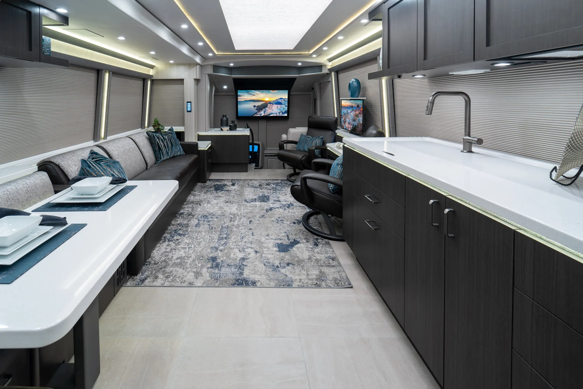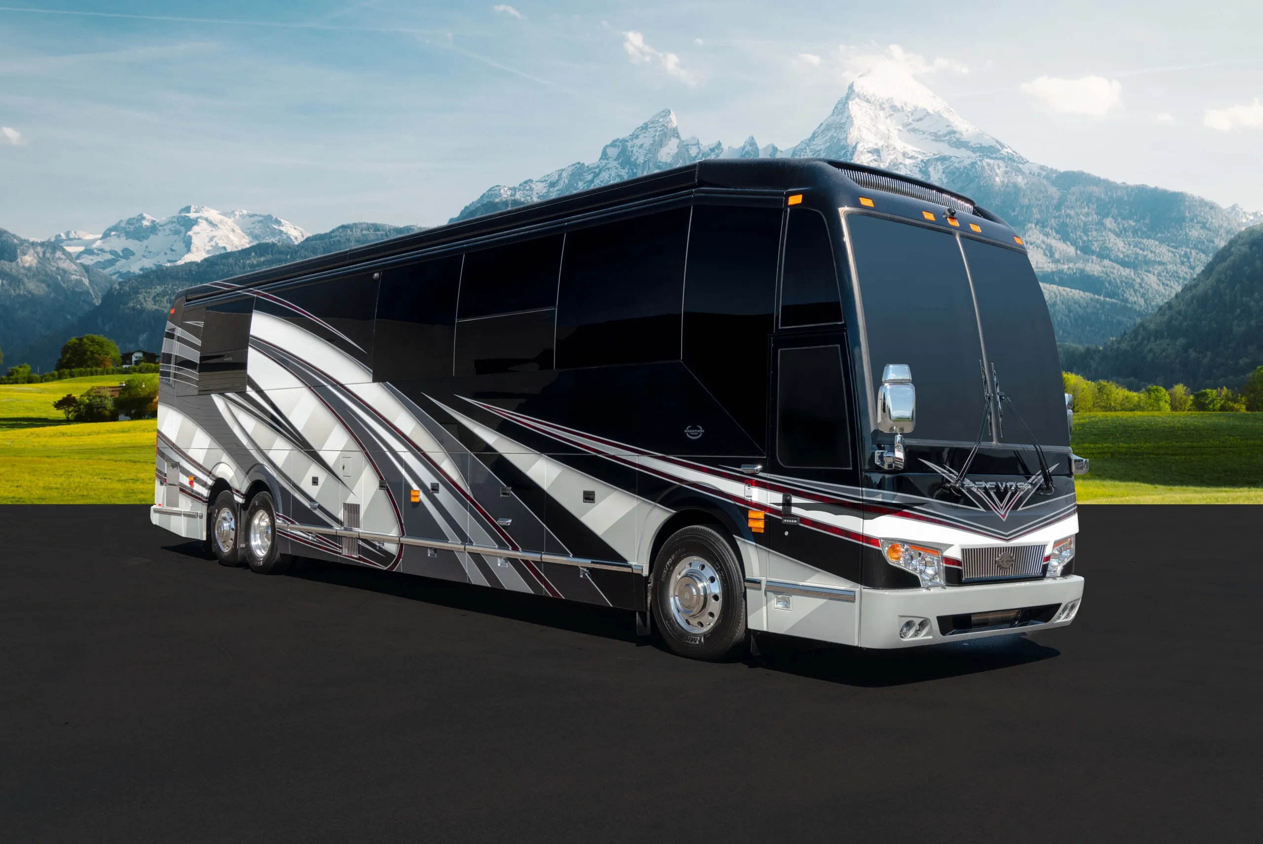 A modern Marathon Coach designed around integrated systems, comfortable interior spaces, and a layout well suited for extended travel with confidence.