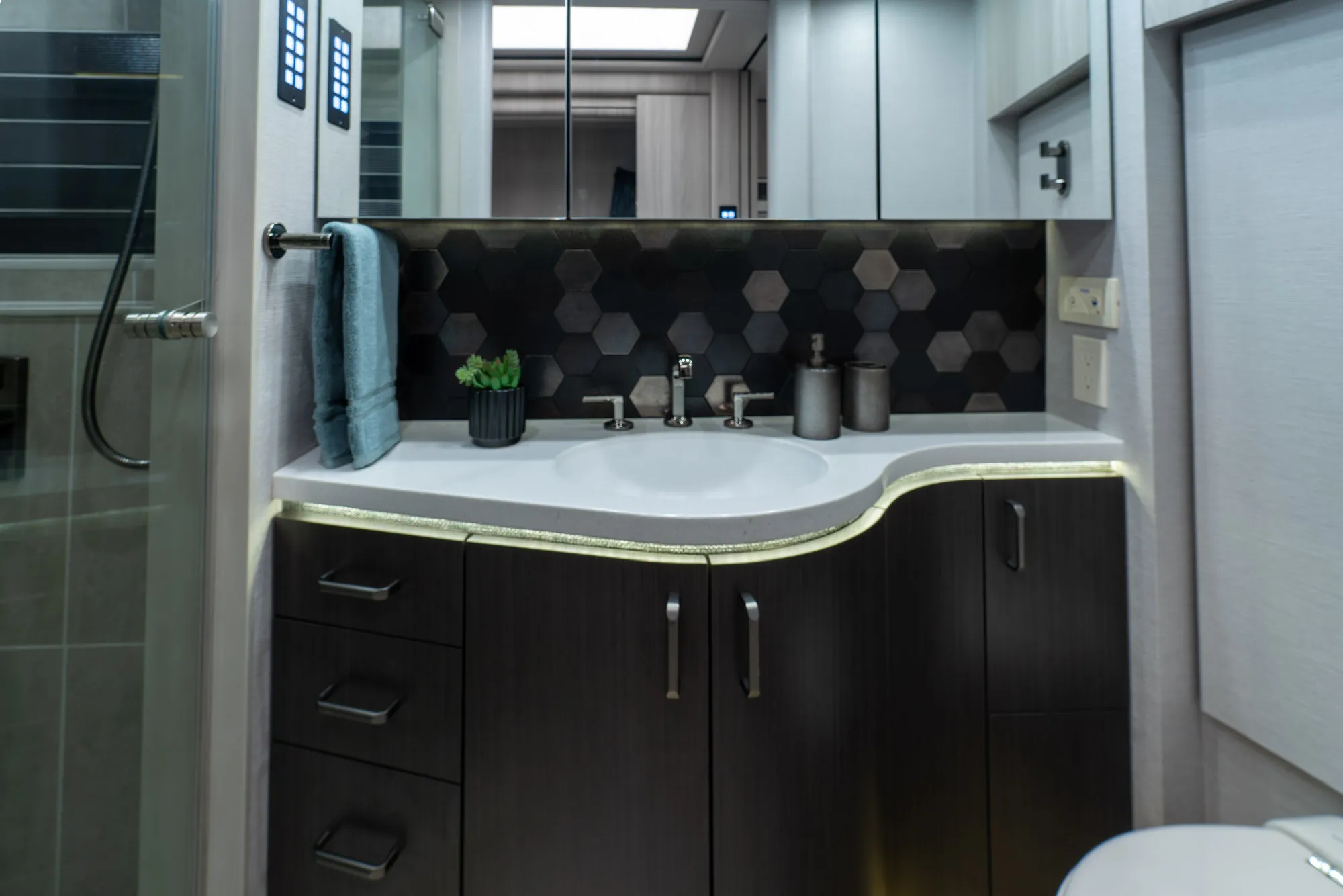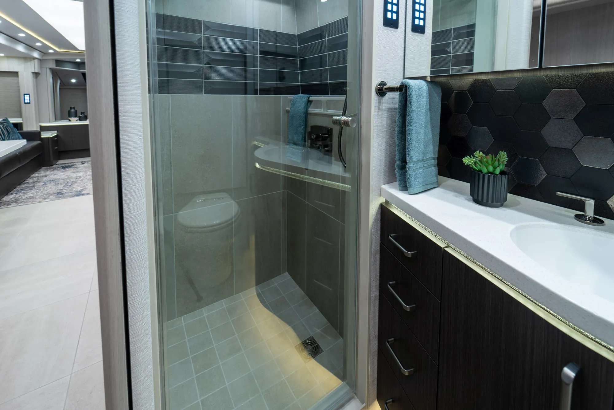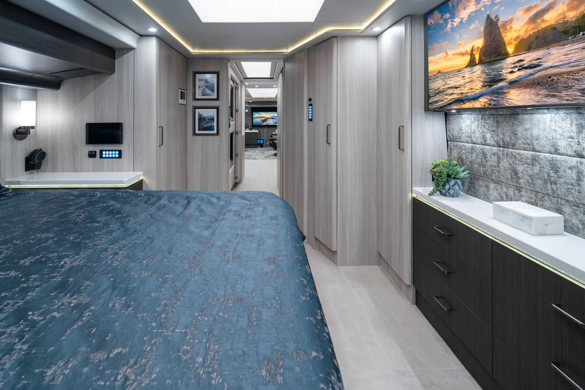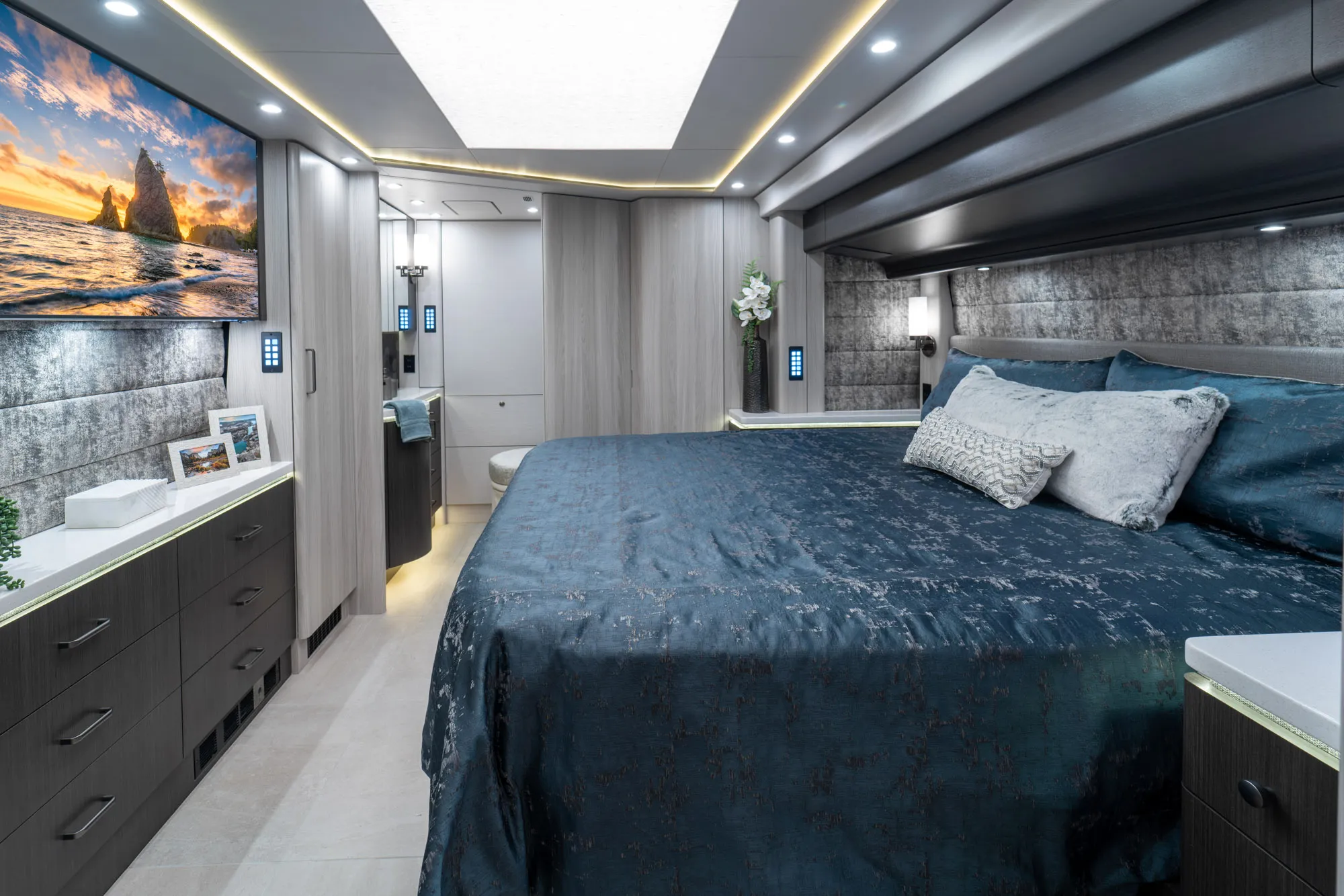 A modern Marathon Coach designed around integrated systems, comfortable interior spaces, and a layout well suited for extended travel with confidence.