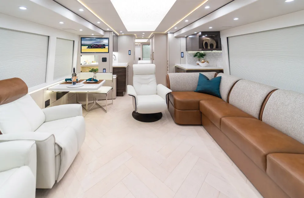 A refined Marathon Coach featuring integrated control systems, a comfortable interior environment, and a layout designed for confident everyday use and travel.