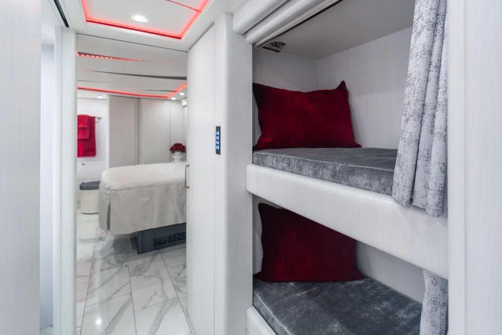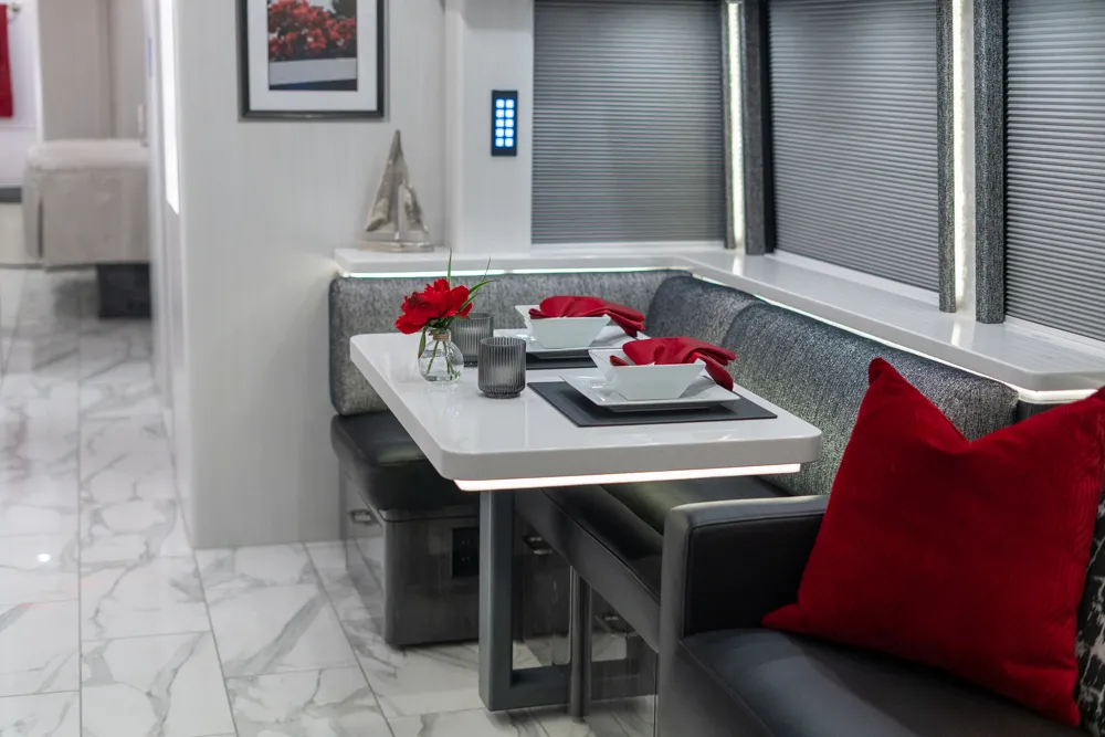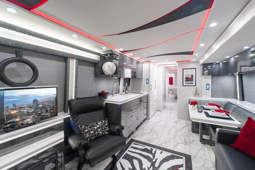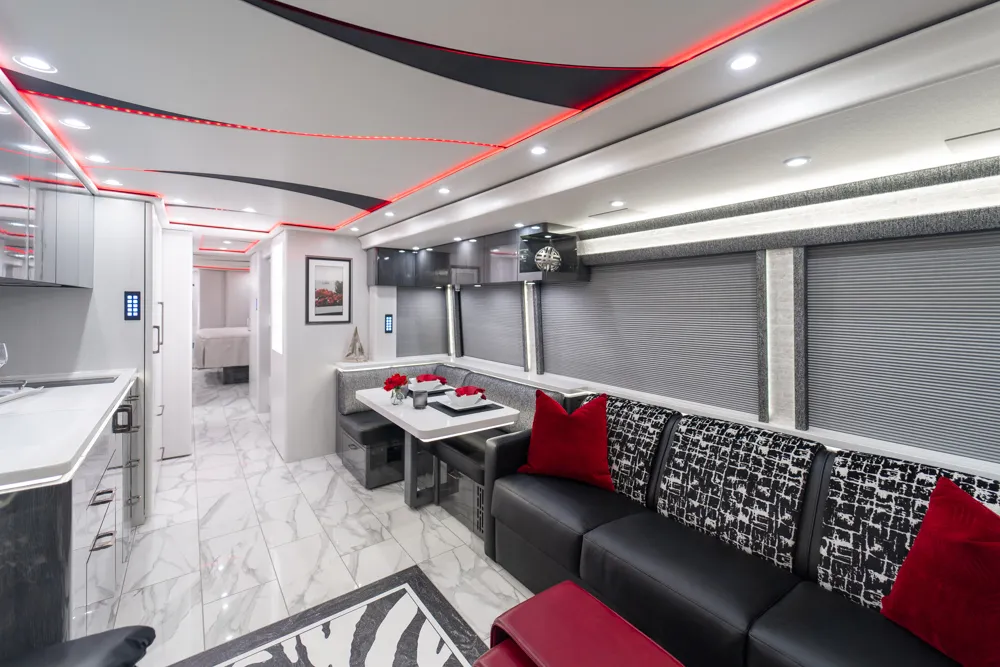 The interior layout balances comfort and function, making the coach approachable for both travel and longer stays.
