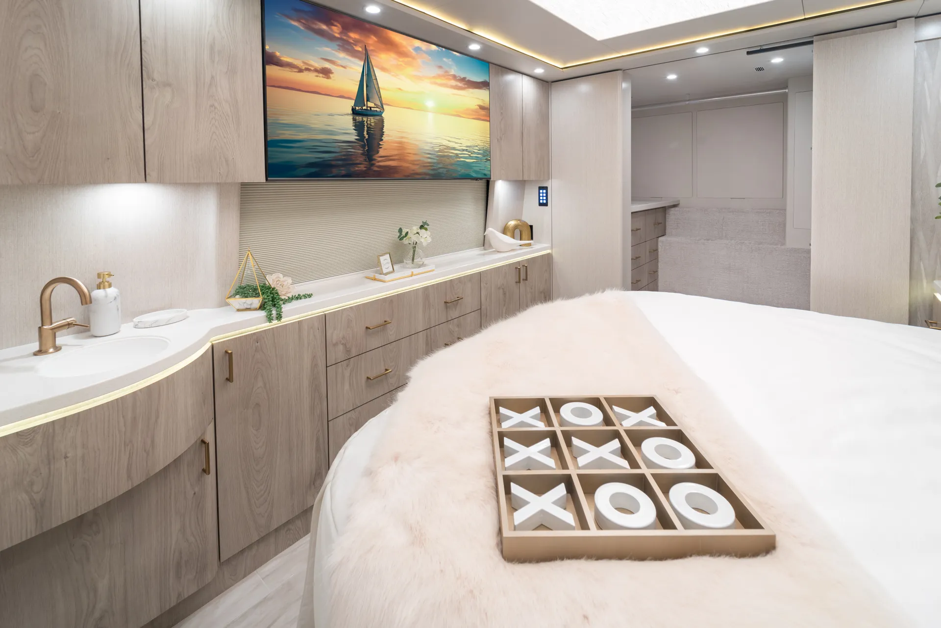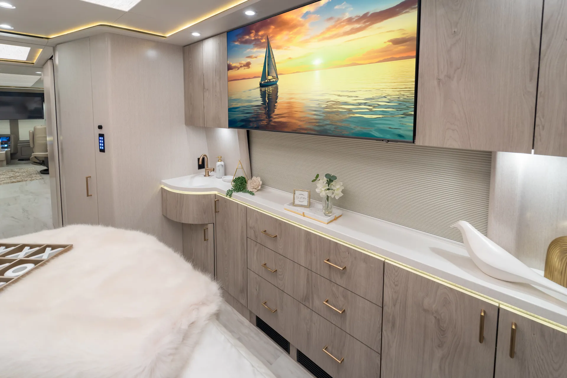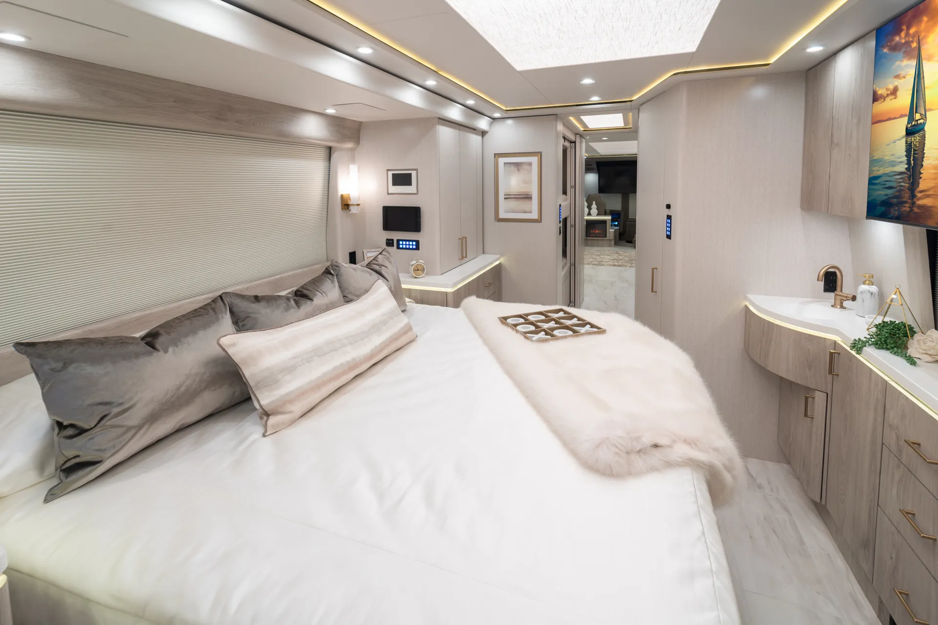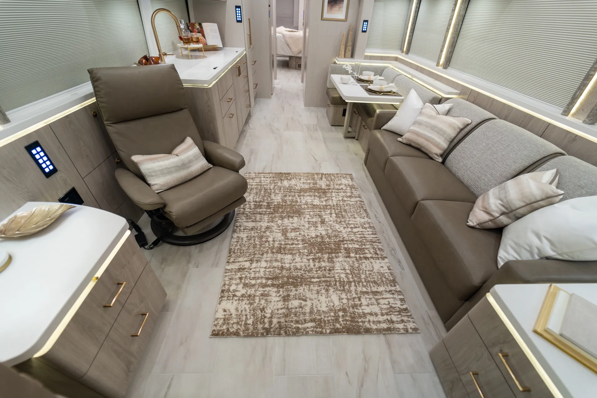 FEATURES SNAPSHOT\n\n● Crestron Audio with Surround Sound\n● Girard Automatic Awning Package with Fairings\n● 20 KW Kohler Generator with Auto-Gen\n● Patented Freedom Plus Sewer System\n● Patented TechLink Electrical System