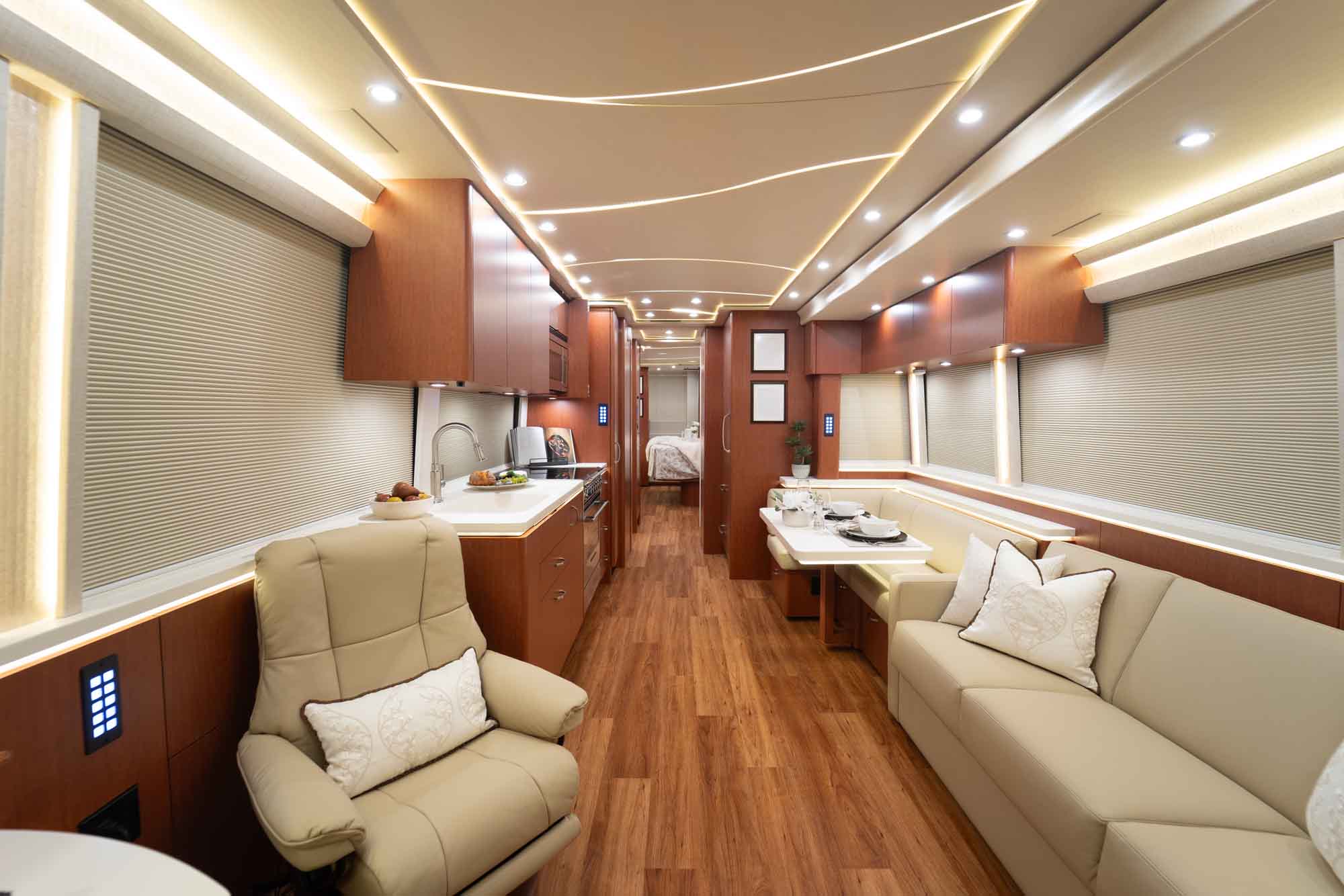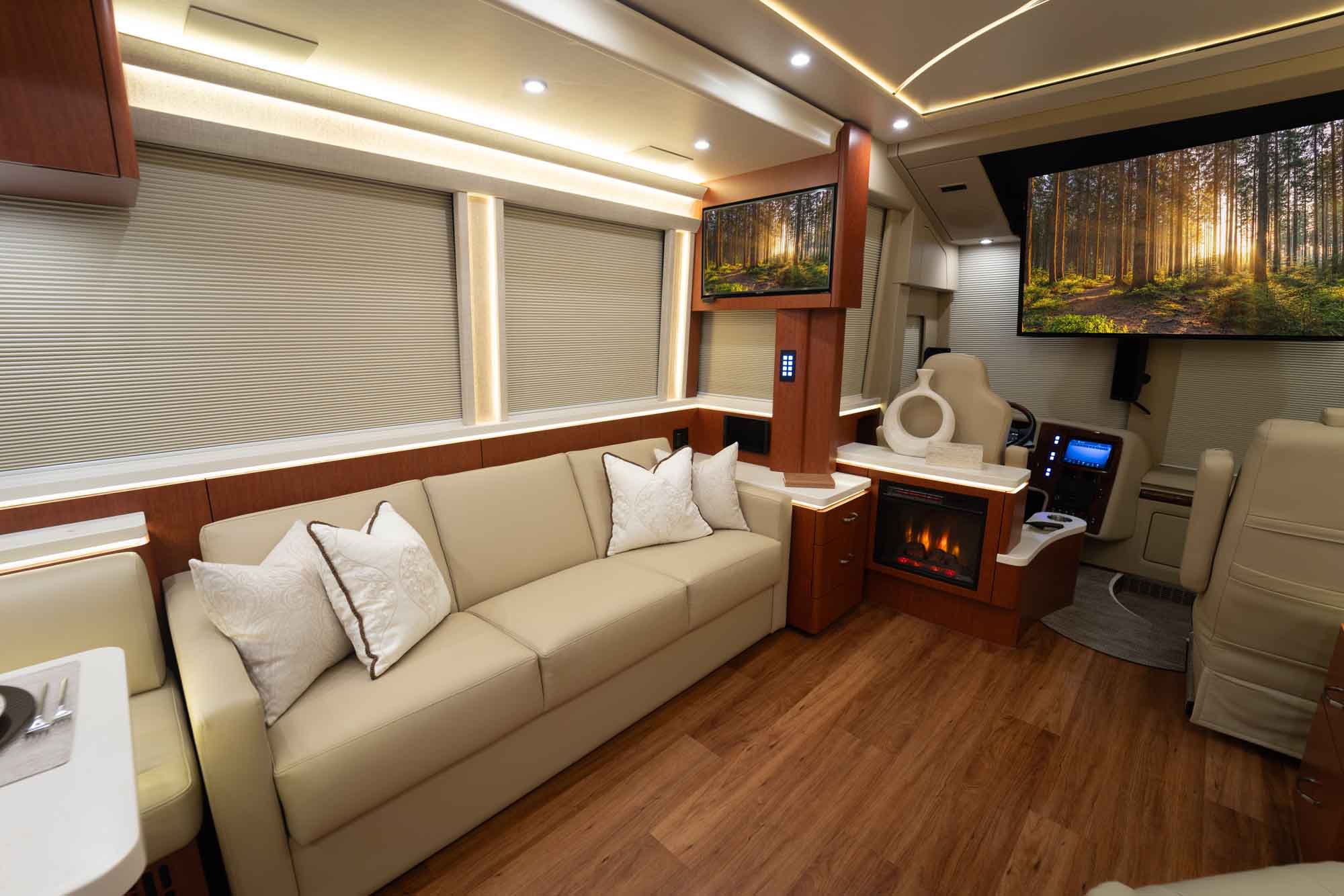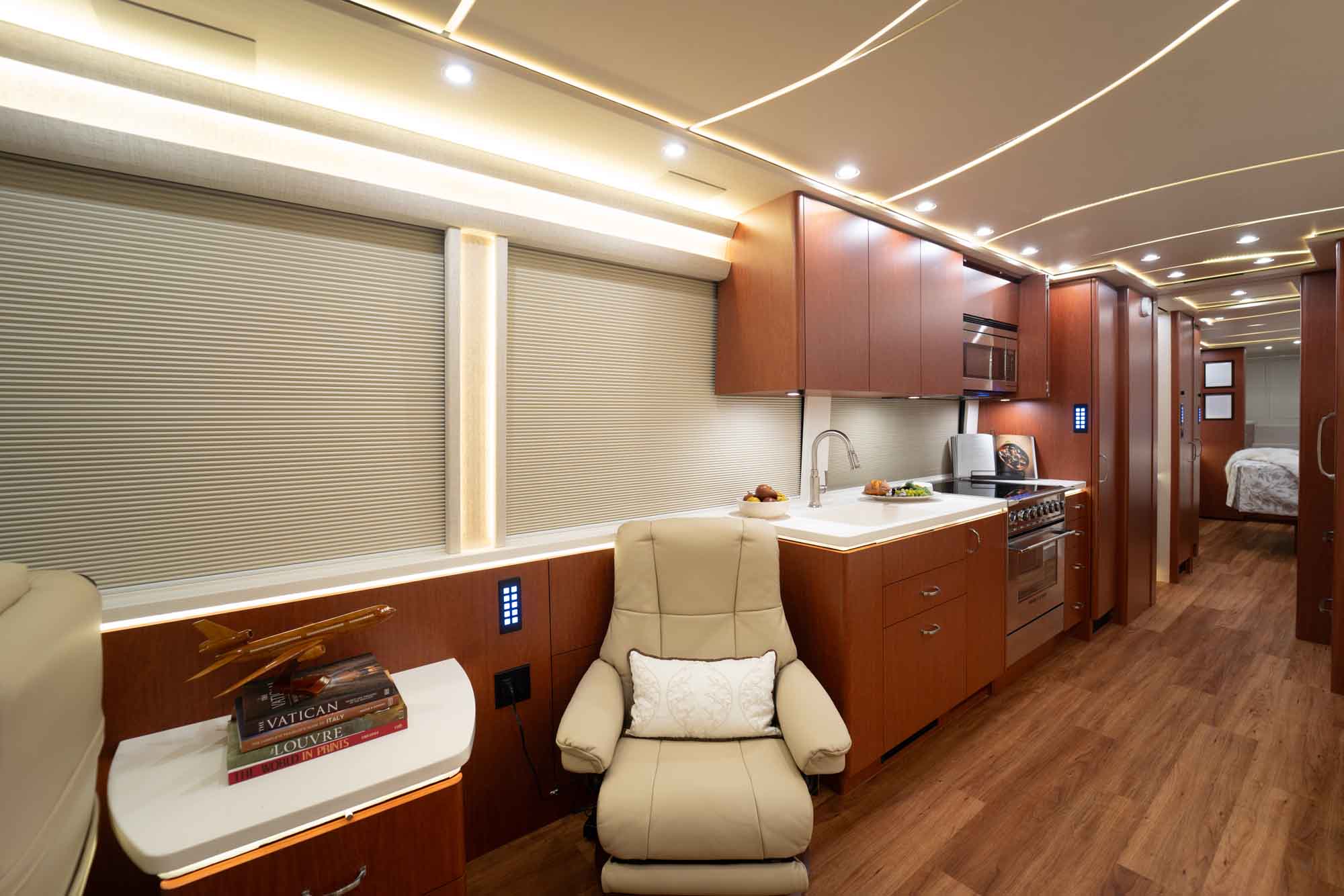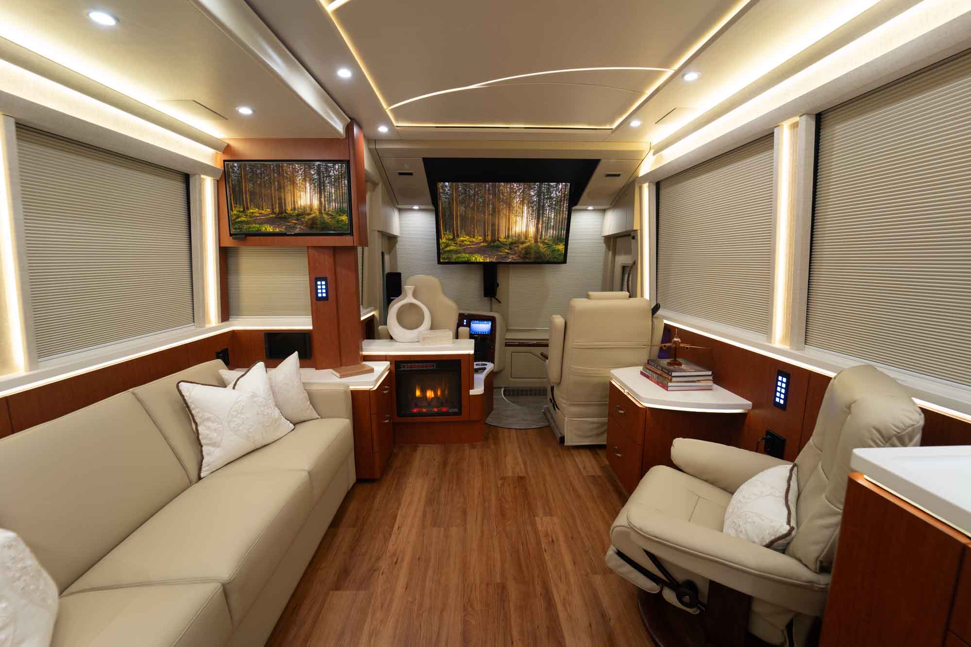 FEATURES SNAPSHOT\n● Crestron Audio with Surround Sound\n● Girard Automatic Awning Package with Fairings\n● 20 KW Kohler Generator with Auto-Gen\n● Patented Freedom Plus Sewer System\n● Patented TechLink Electrical System