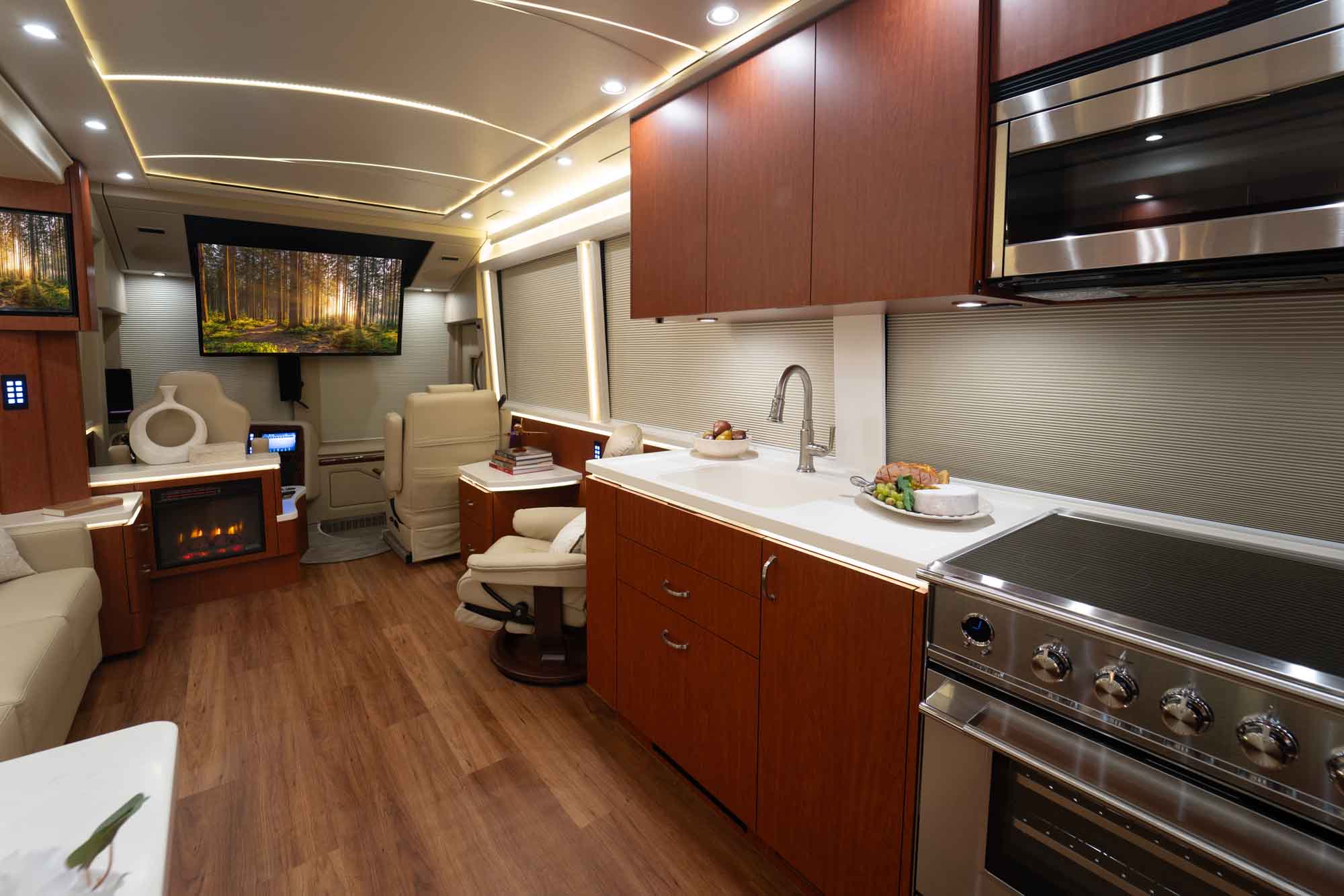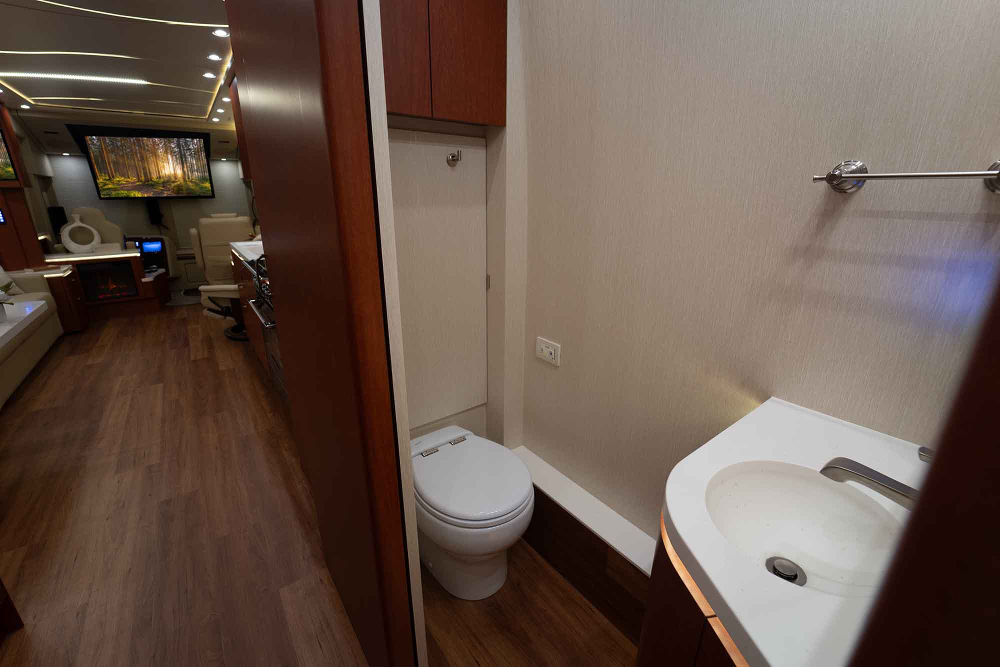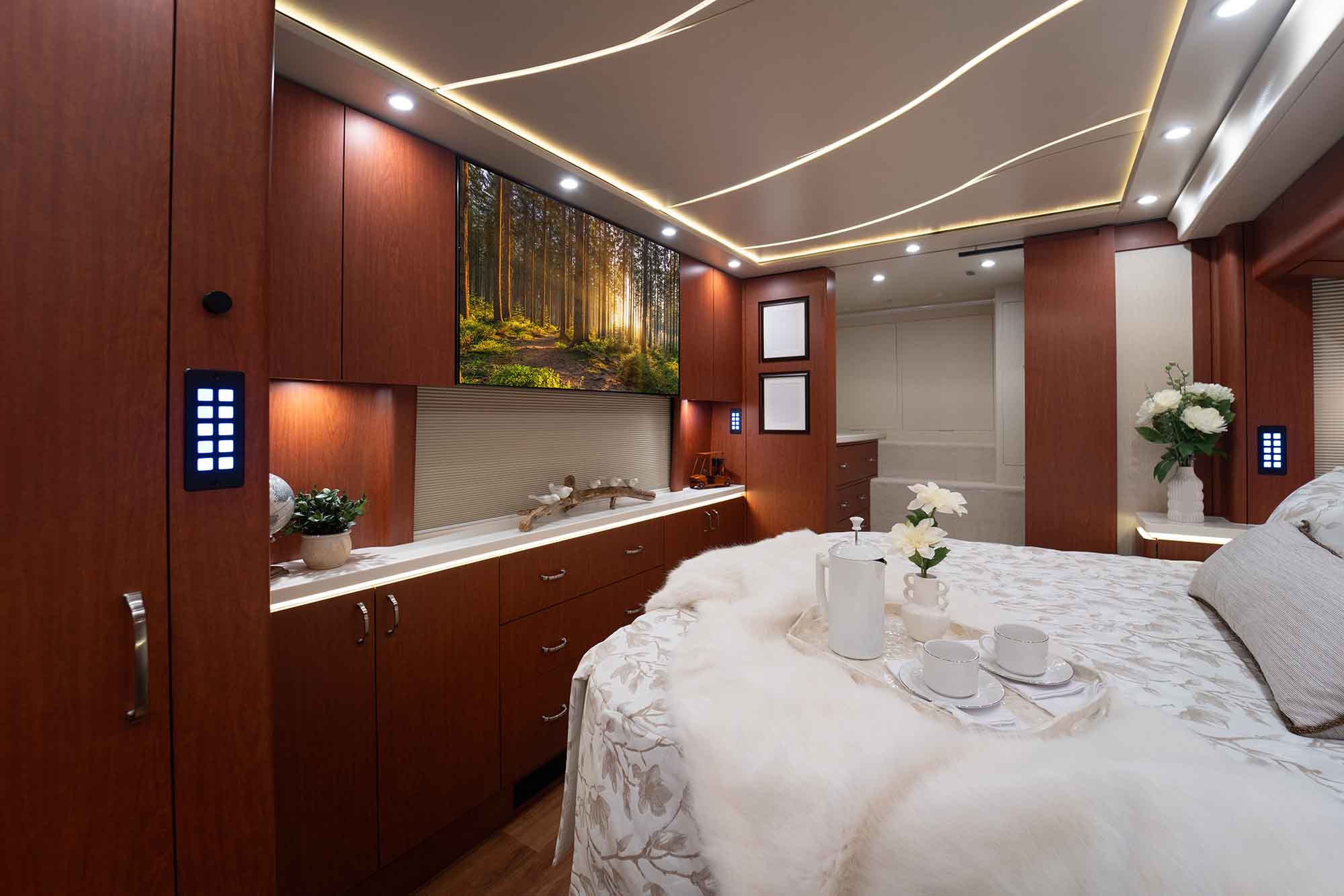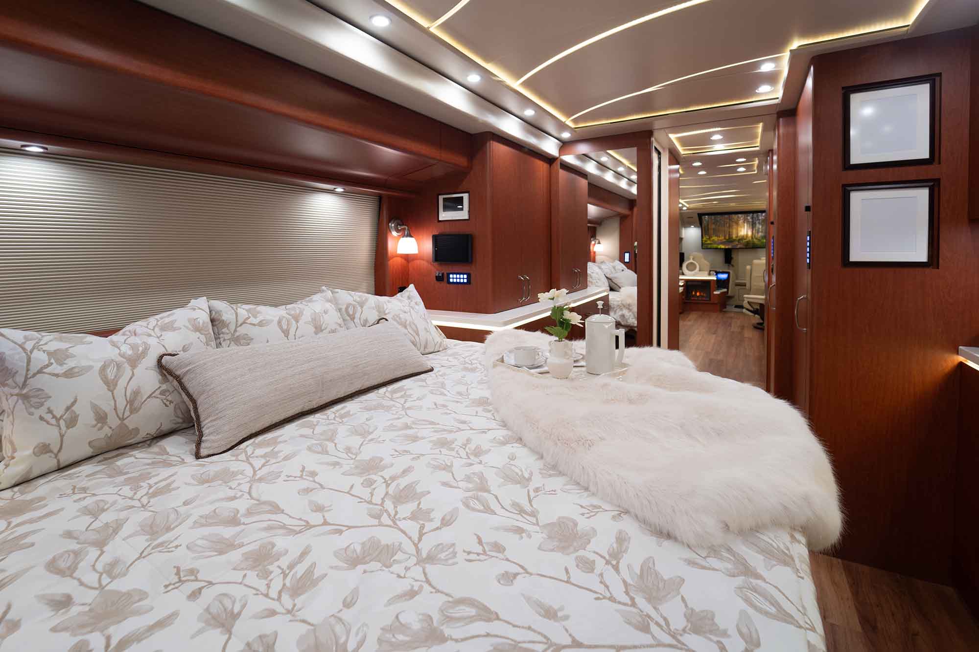 FEATURES SNAPSHOT\n● Crestron Audio with Surround Sound\n● Girard Automatic Awning Package with Fairings\n● 20 KW Kohler Generator with Auto-Gen\n● Patented Freedom Plus Sewer System\n● Patented TechLink Electrical System