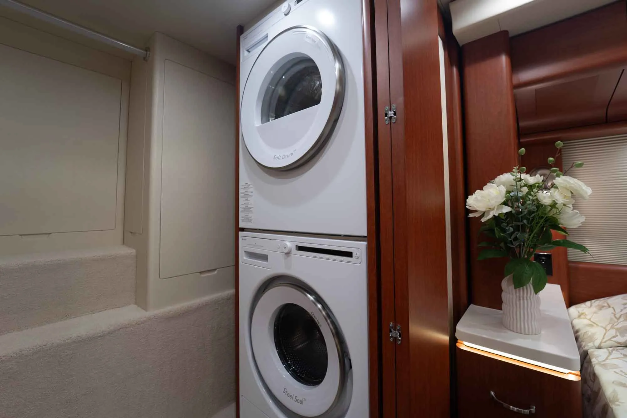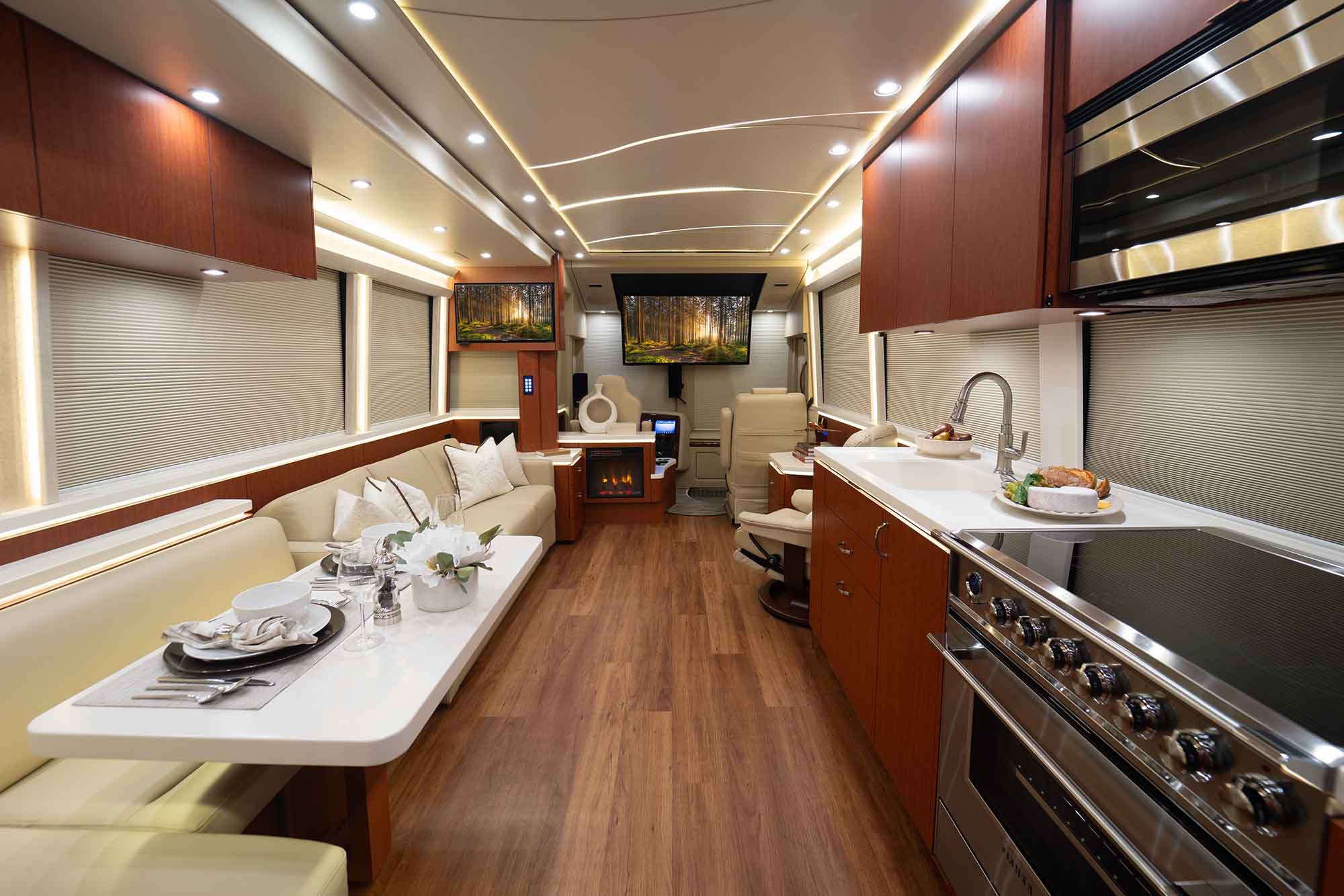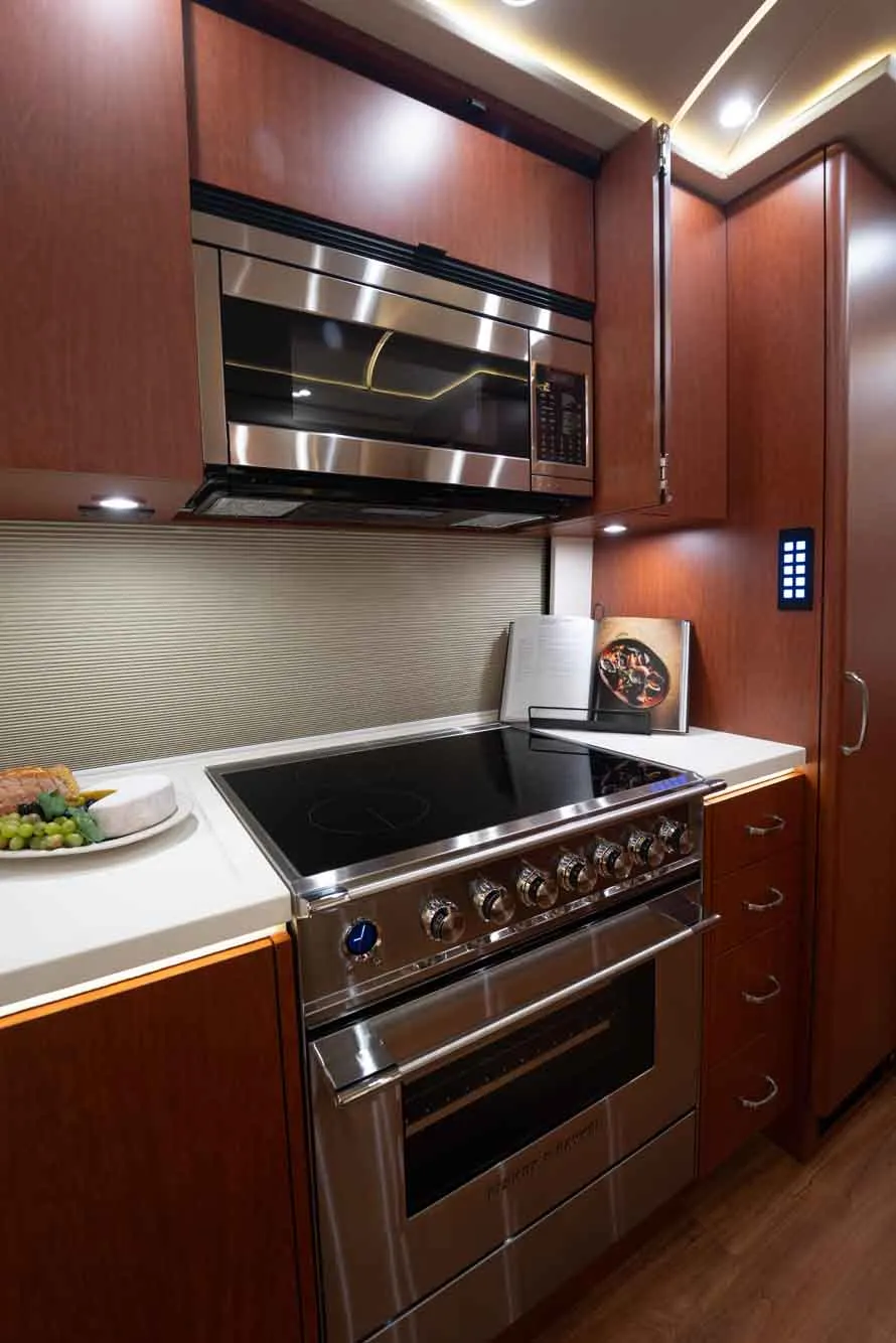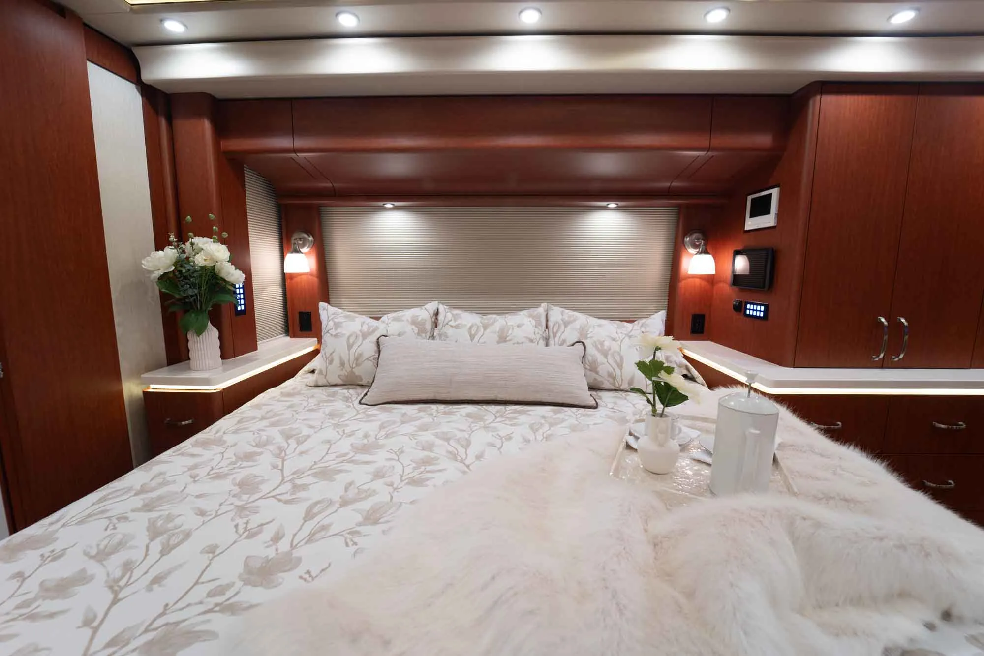 FEATURES SNAPSHOT\n● Crestron Audio with Surround Sound\n● Girard Automatic Awning Package with Fairings\n● 20 KW Kohler Generator with Auto-Gen\n● Patented Freedom Plus Sewer System\n● Patented TechLink Electrical System