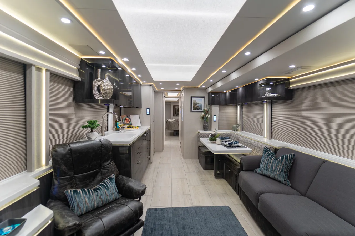 This 2025 Marathon Coach on the Prevost H3-45 chassis delivers a modern ownership experience built around integrated systems, dependable power management, and a comfortable double-slide layout. It is designed for owners who want a coach that feels refined, intuitive, and ready for real travel.