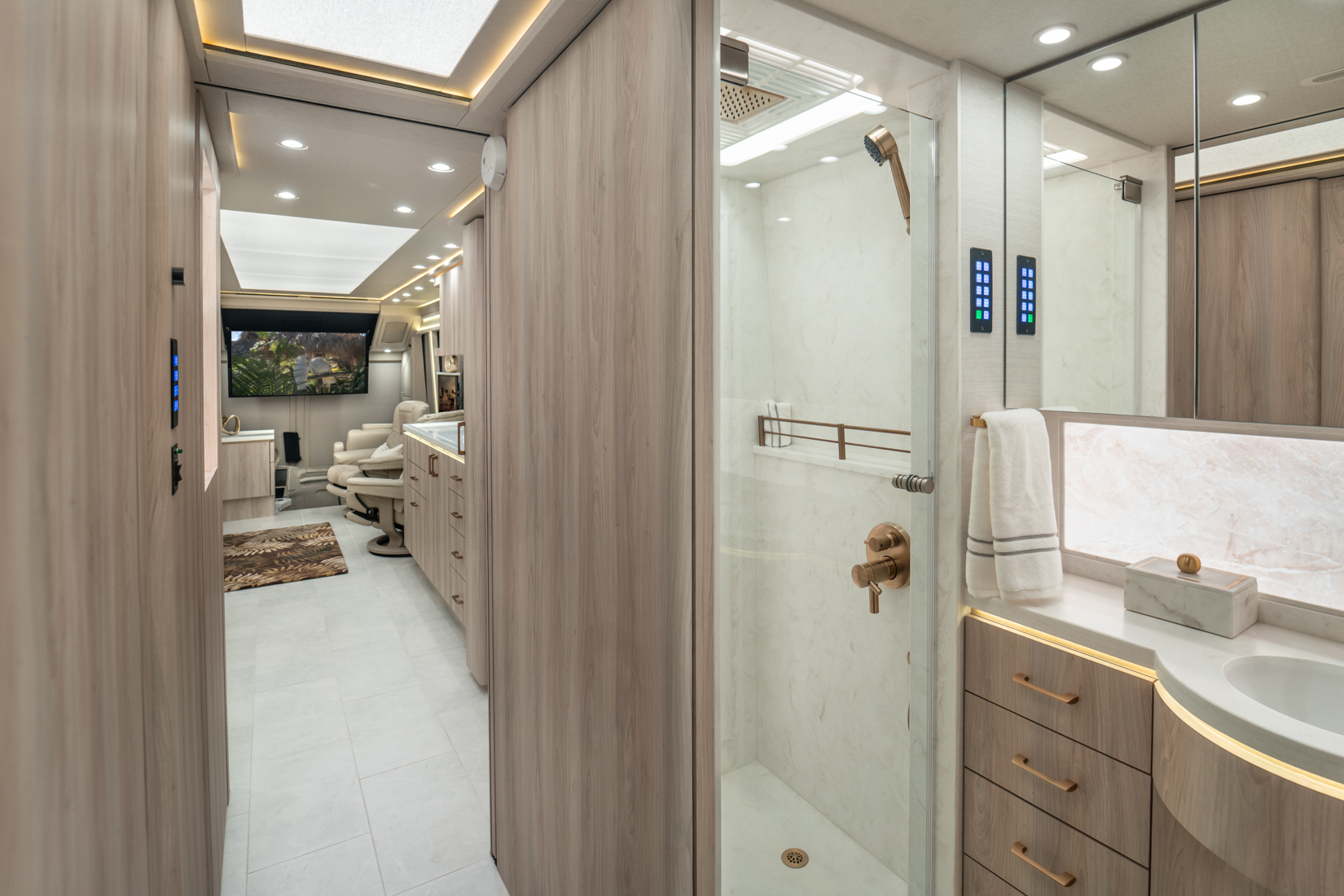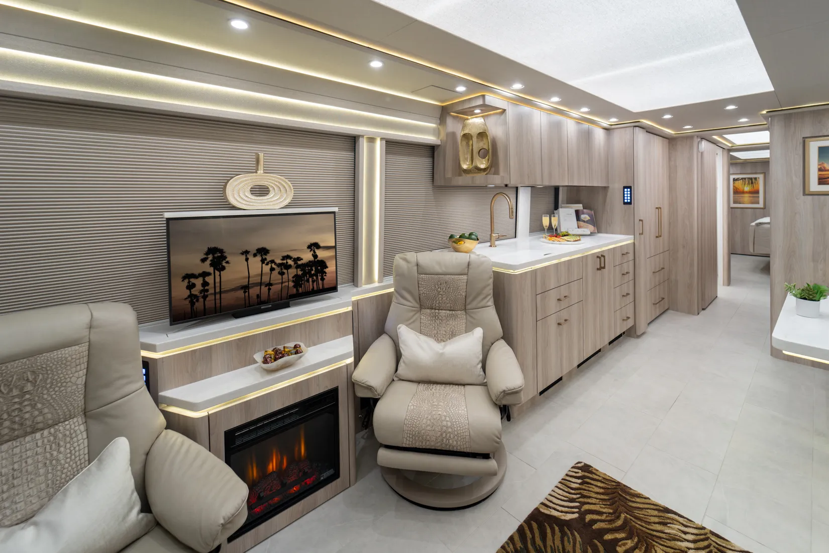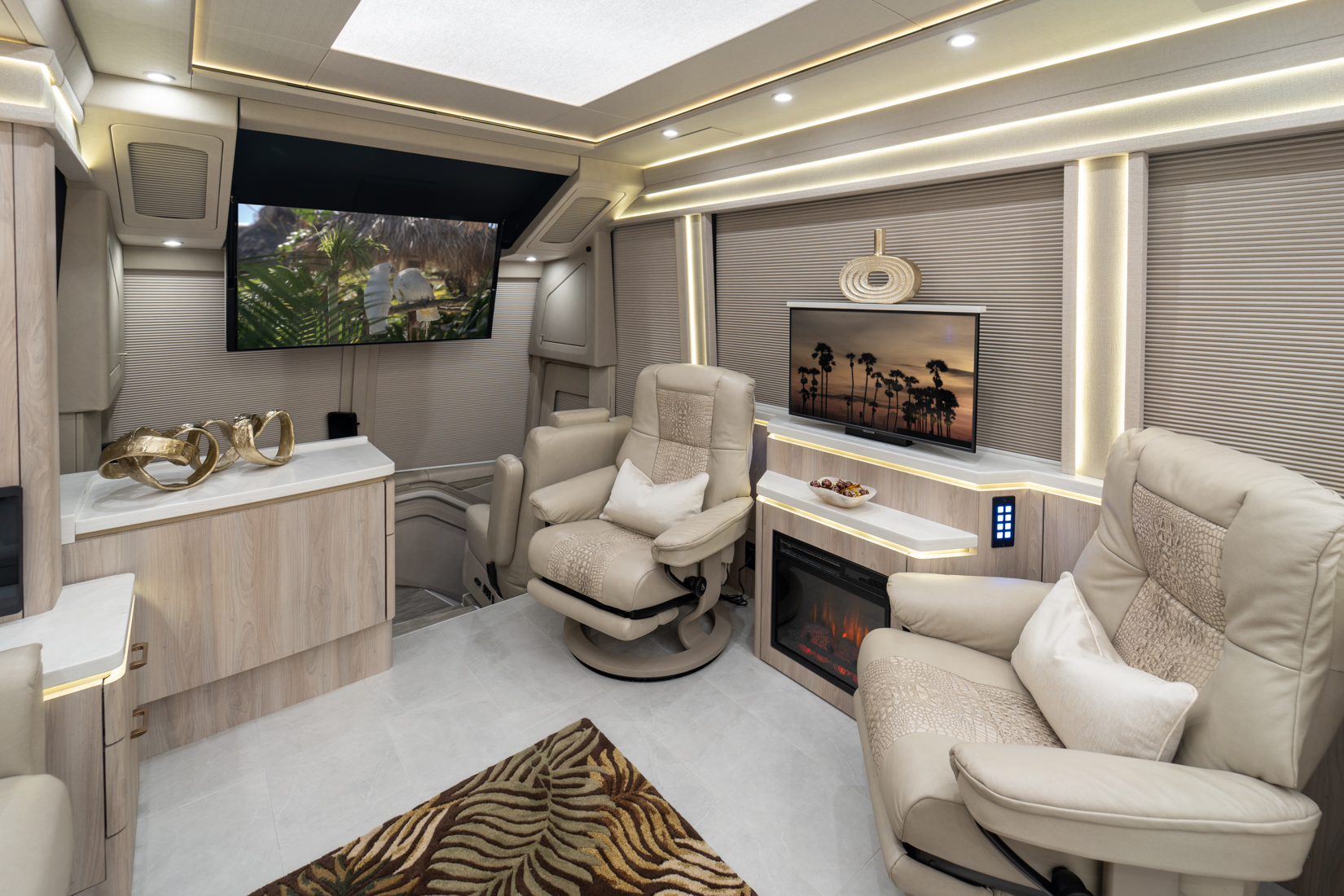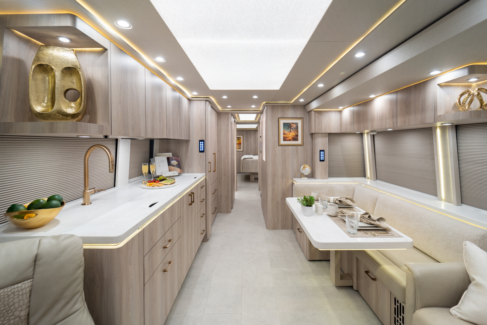 FEATURES SNAPSHOT\n● Crestron Audio with Surround Sound\n● Girard Automatic Awning Package with Fairings\n● 20 KW Kohler Generator with Auto-Gen\n● Patented Freedom Plus Sewer System\n● Patented TechLink Electrical System