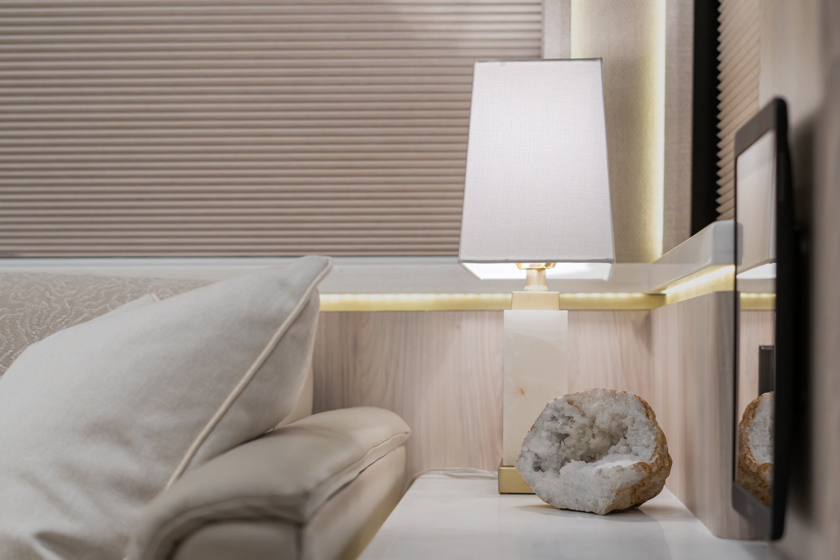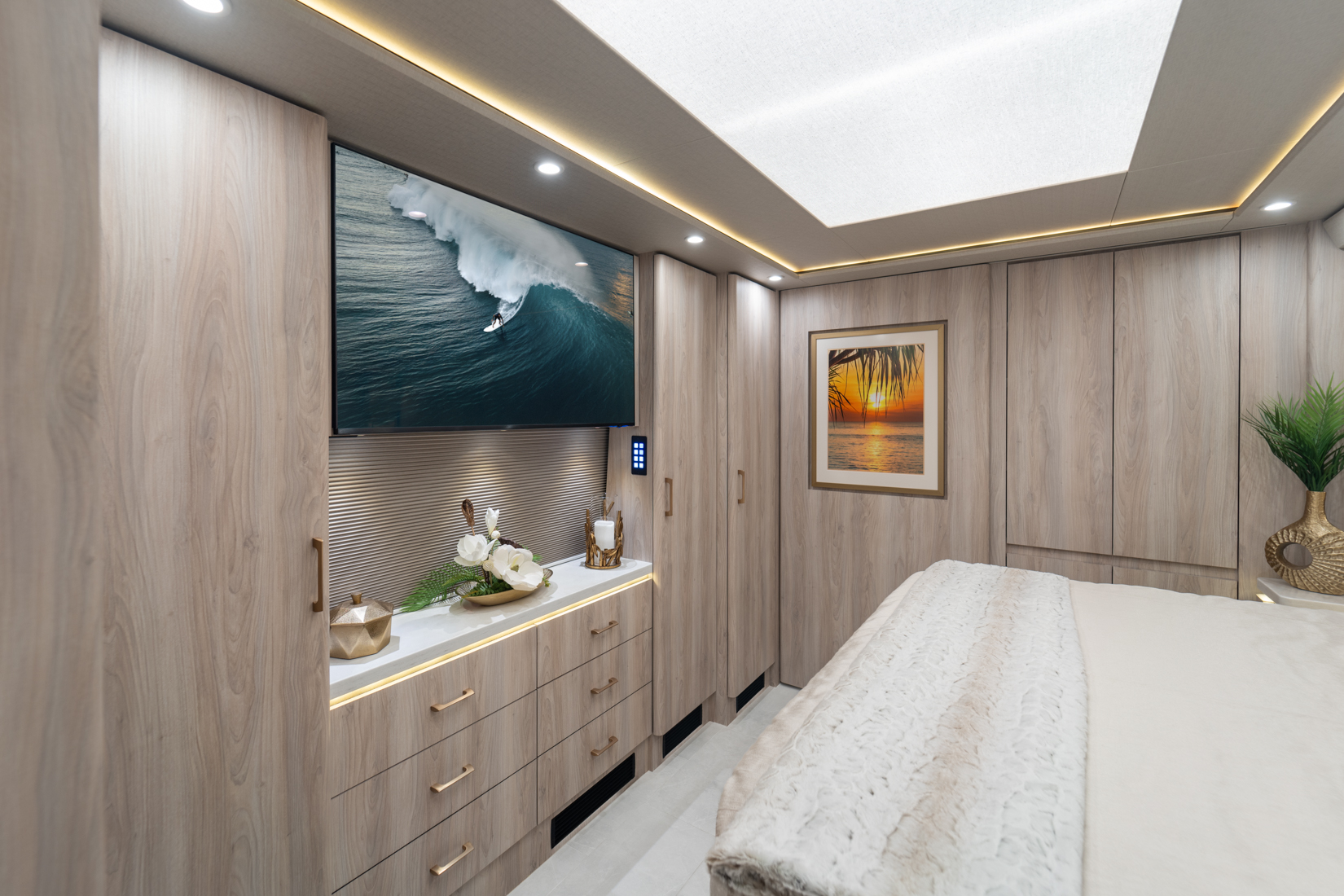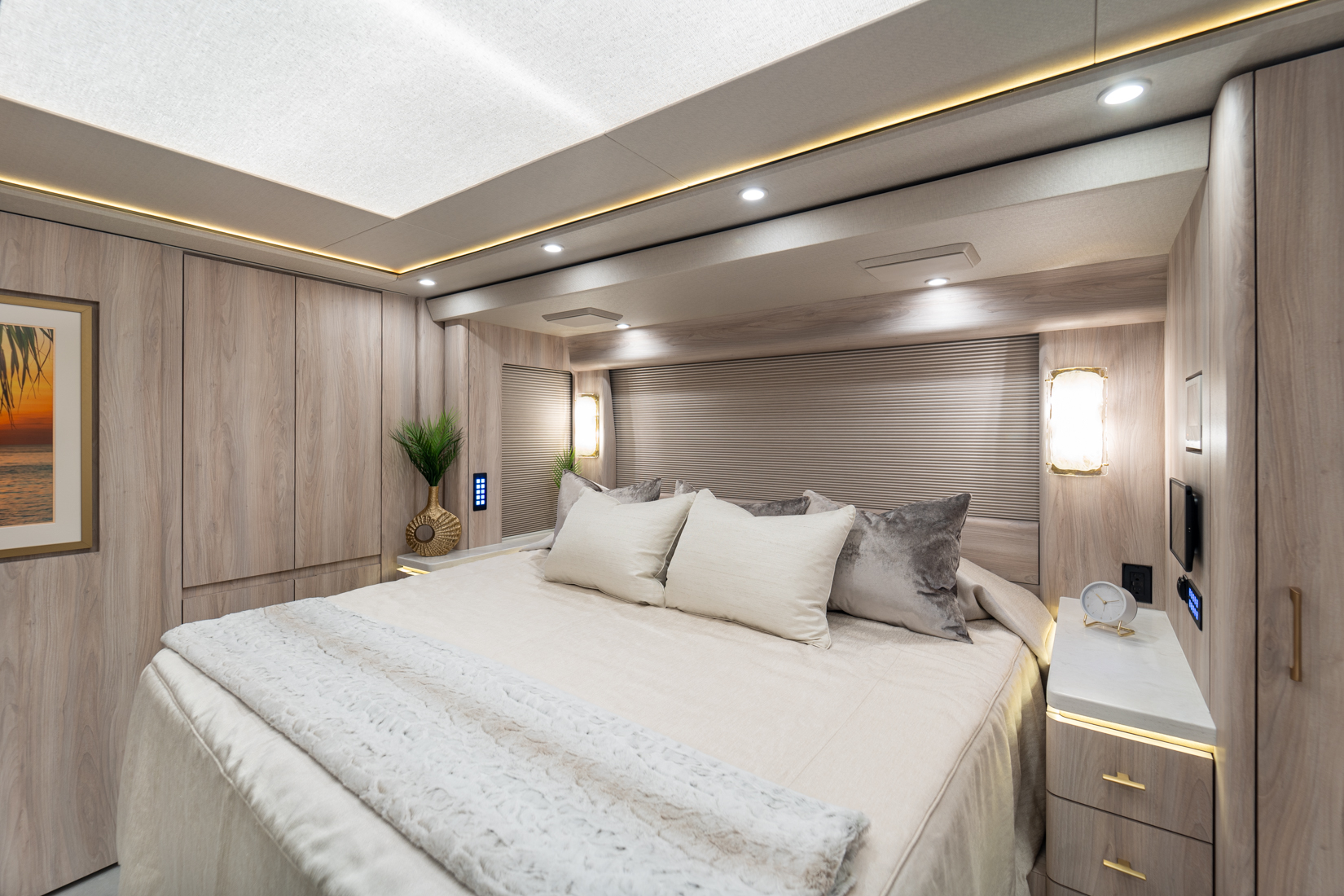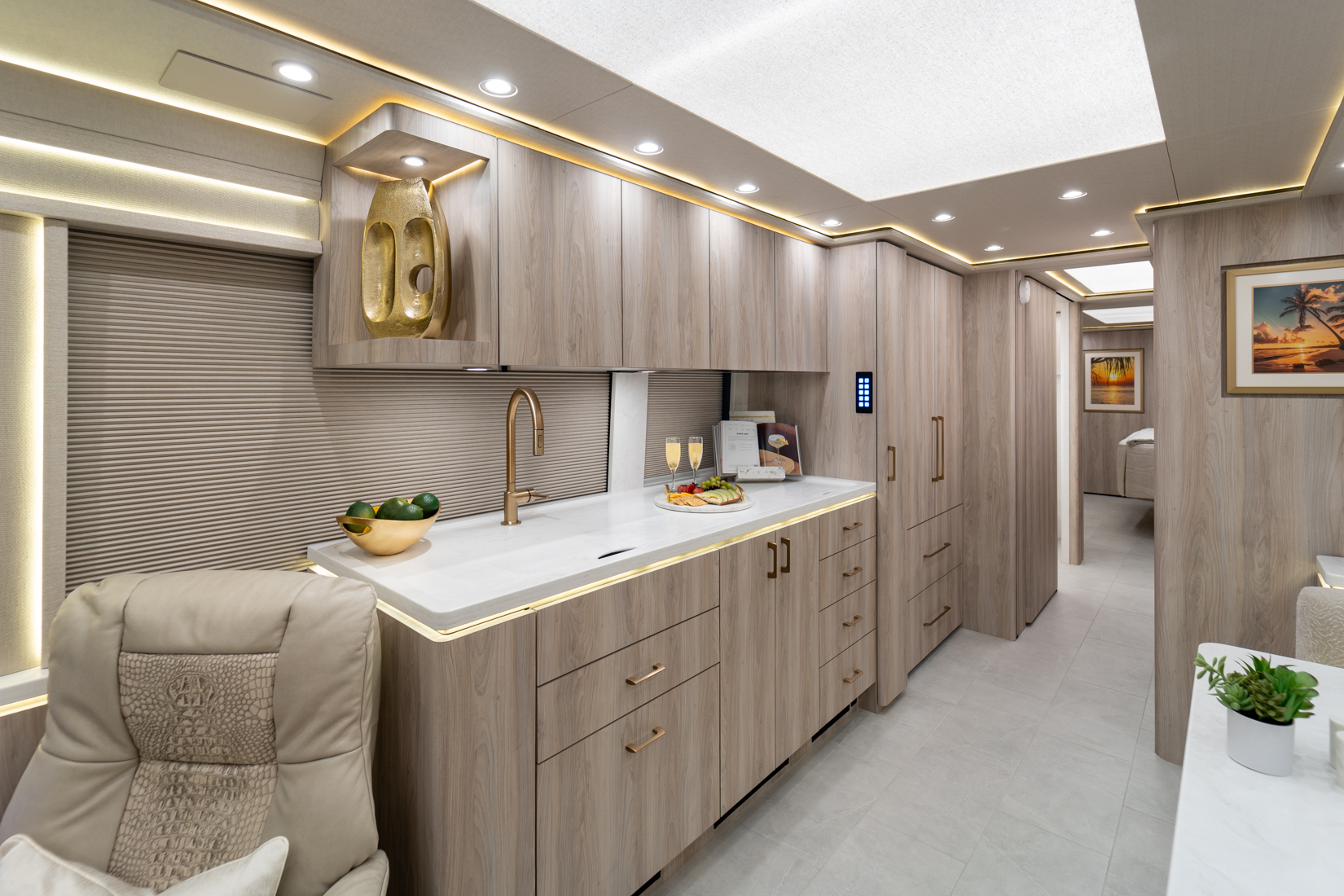 FEATURES SNAPSHOT\n● Crestron Audio with Surround Sound\n● Girard Automatic Awning Package with Fairings\n● 20 KW Kohler Generator with Auto-Gen\n● Patented Freedom Plus Sewer System\n● Patented TechLink Electrical System