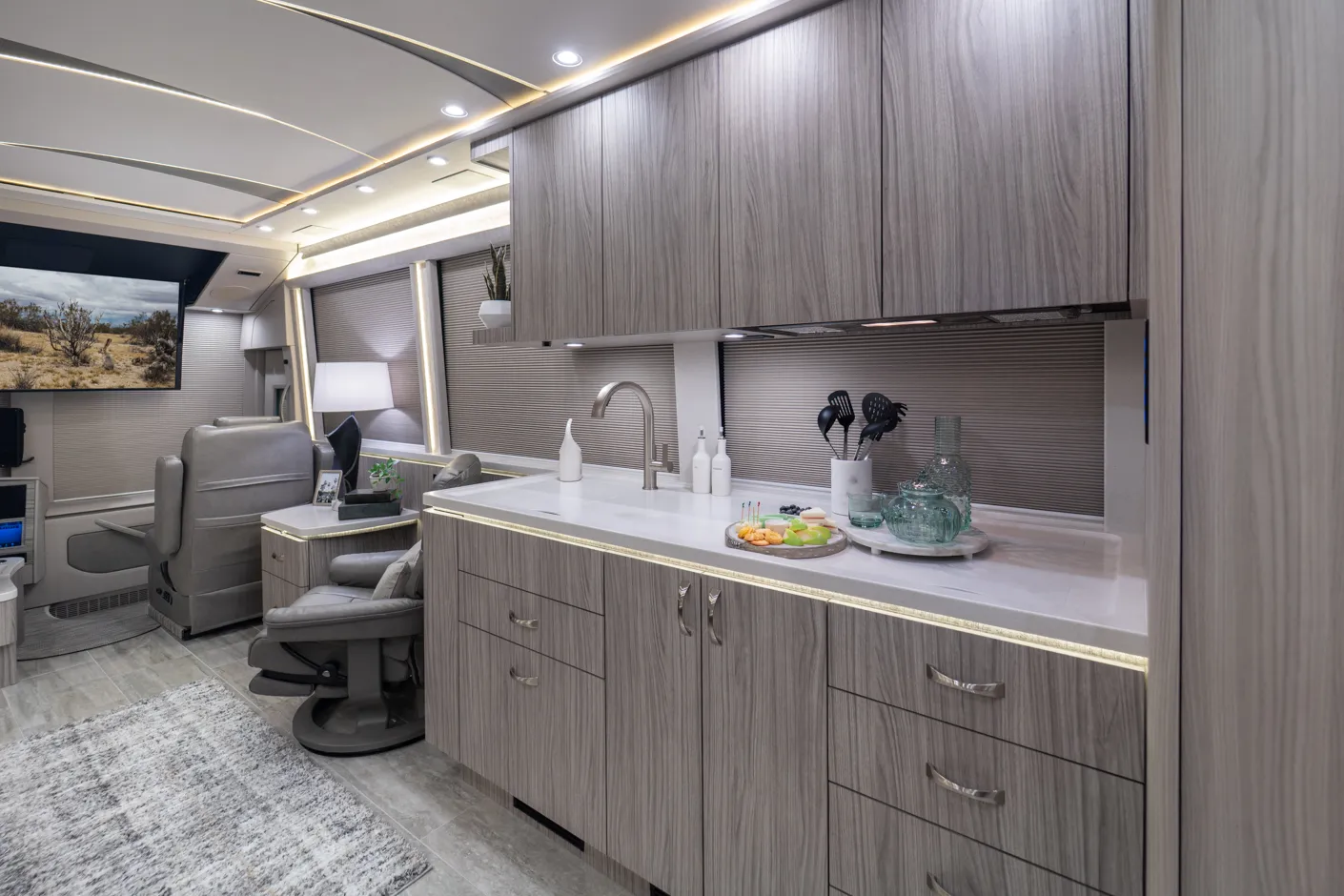 This 2026 Marathon Coach on the Prevost X3-45 chassis is built for owners who want modern systems integration and a comfortable double-slide layout in a coach that feels capable and easy to live with. The configuration supports both long travel days and relaxed extended stays.