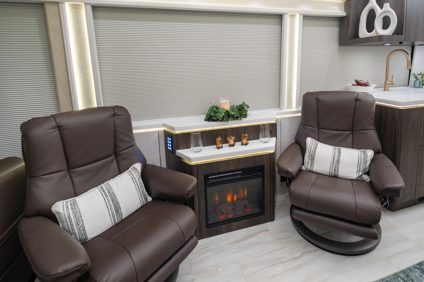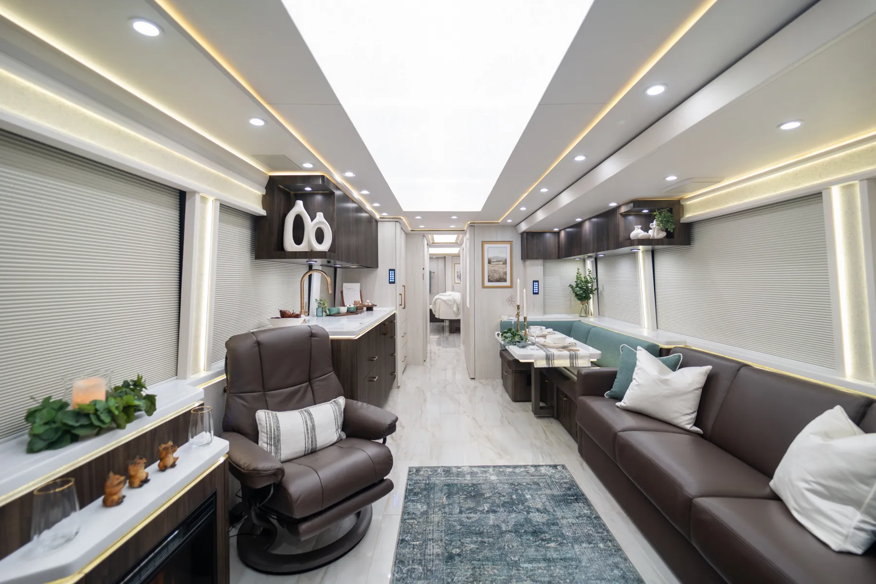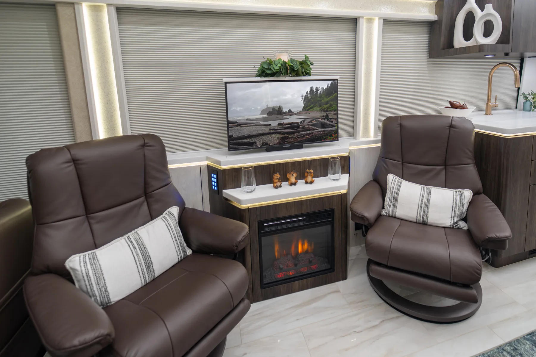FEATURES SNAPSHOT\n● Crestron Audio with Surround Sound\n● Girard Automatic Awning Package with Fairings\n● 20 KW Kohler Generator with Auto-Gen\n● Patented Freedom Plus Sewer System\n● Patented TechLink Electrical System