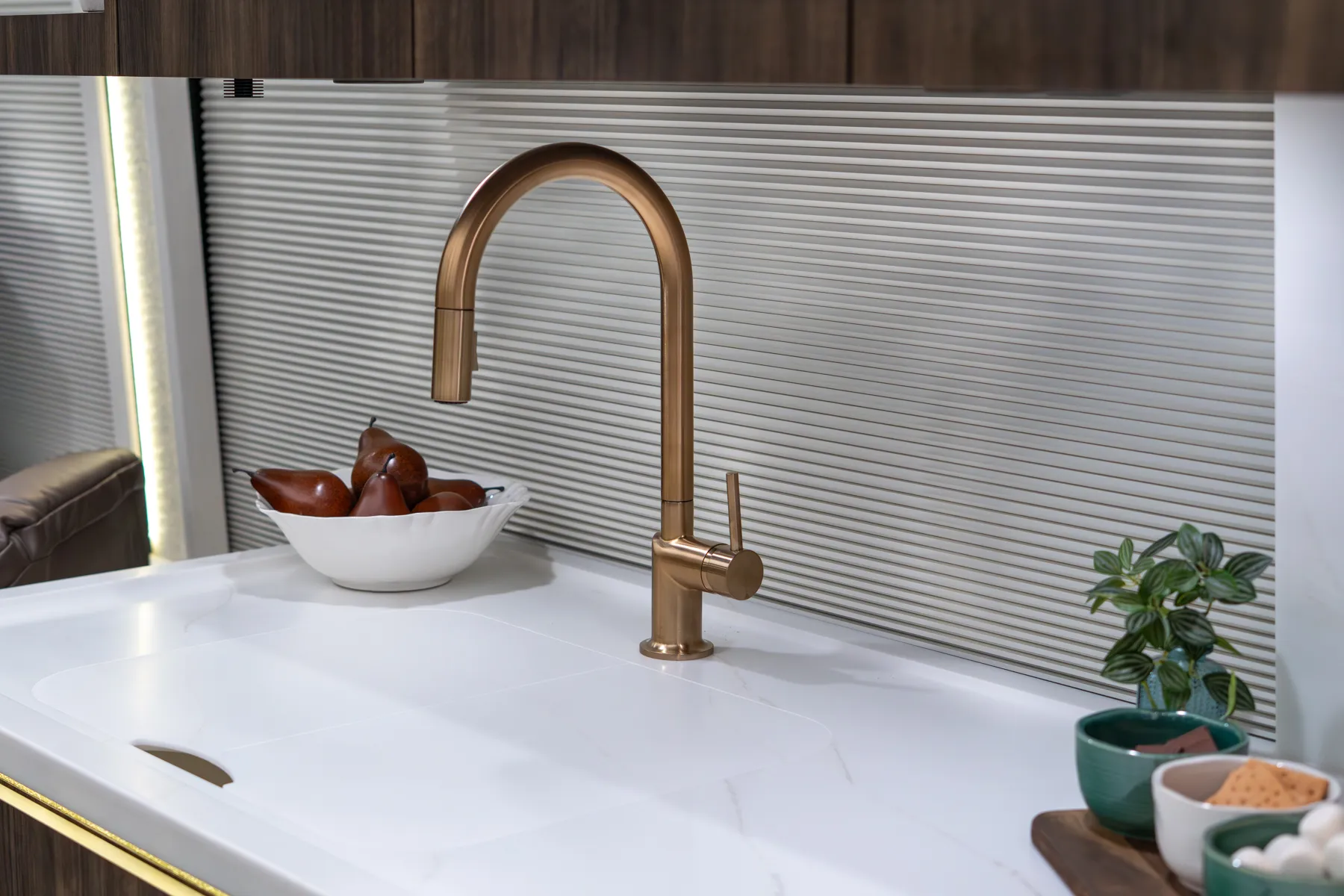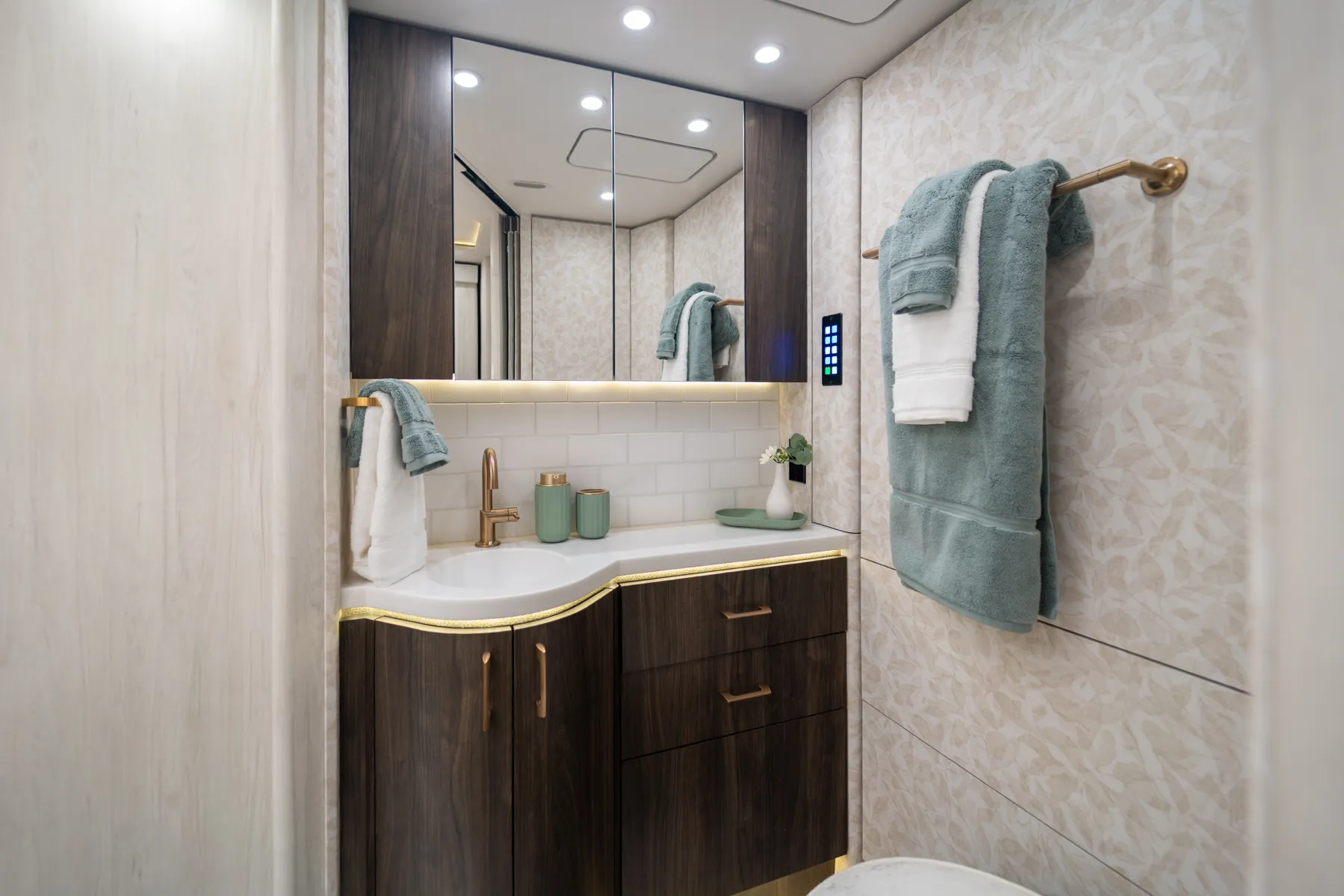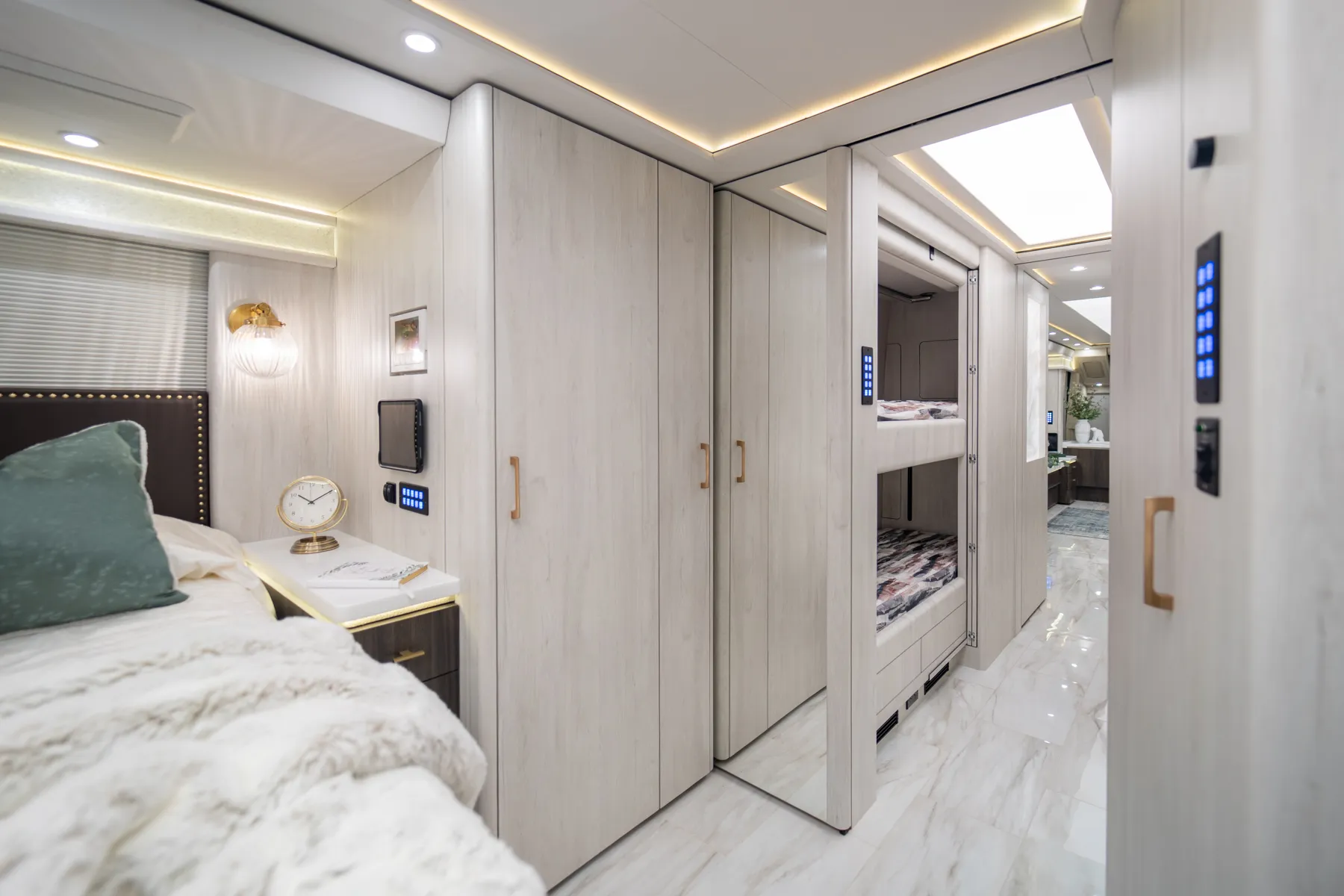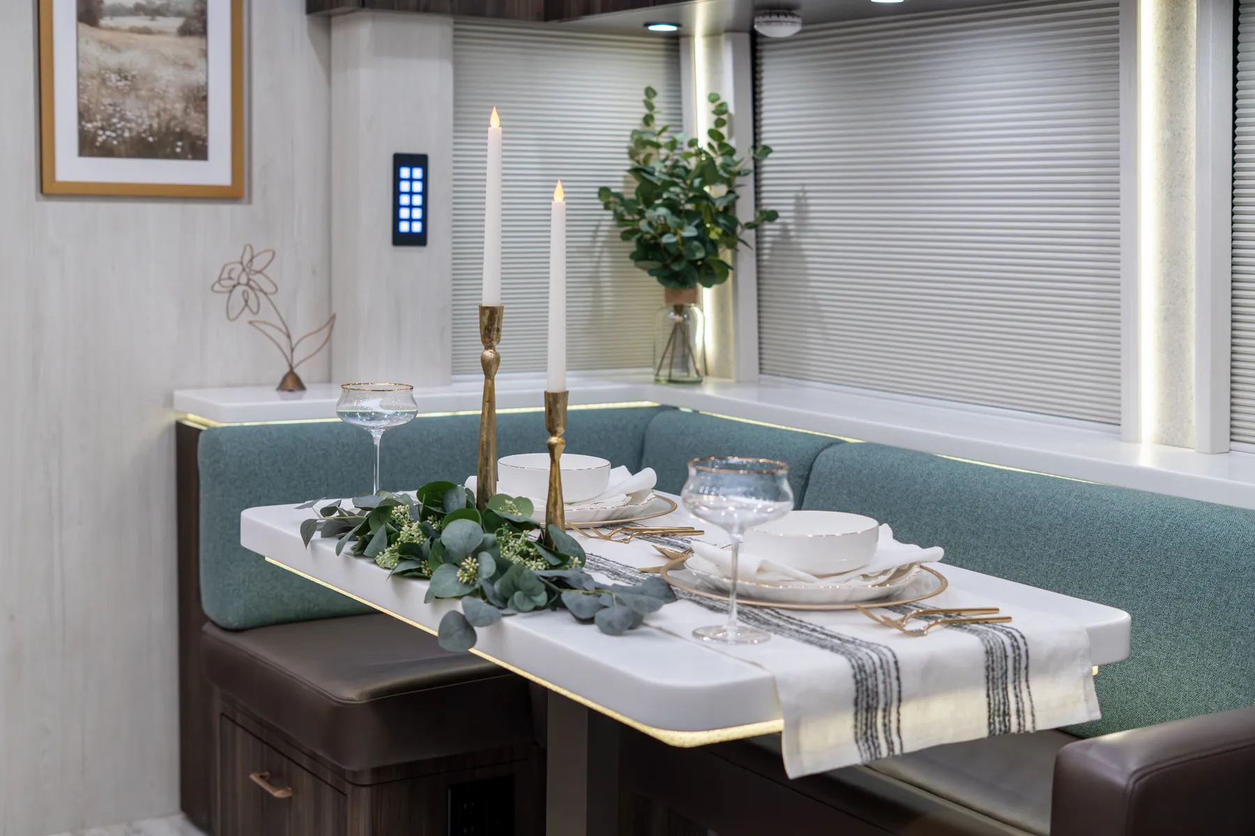 FEATURES SNAPSHOT\n● Crestron Audio with Surround Sound\n● Girard Automatic Awning Package with Fairings\n● 20 KW Kohler Generator with Auto-Gen\n● Patented Freedom Plus Sewer System\n● Patented TechLink Electrical System