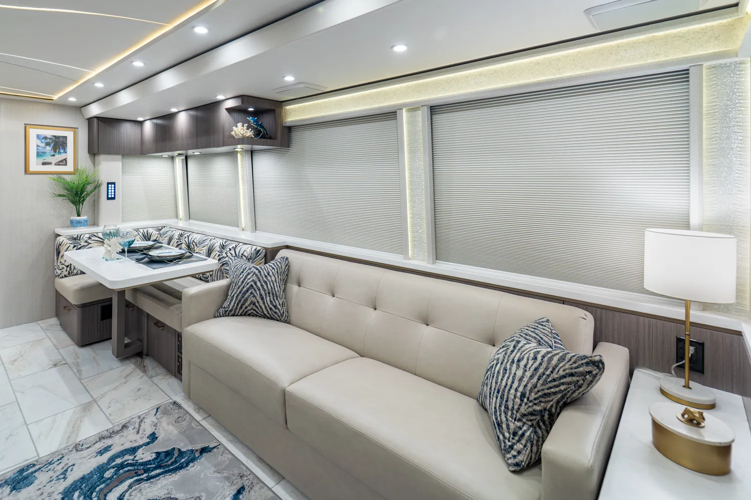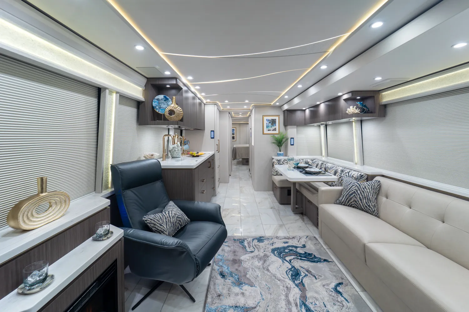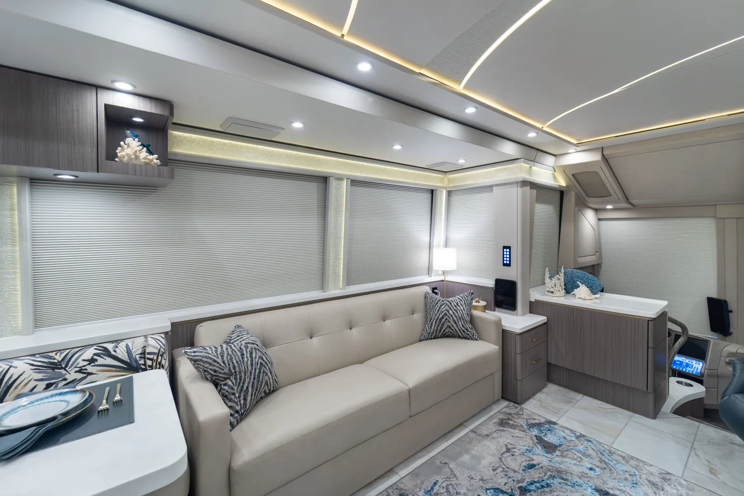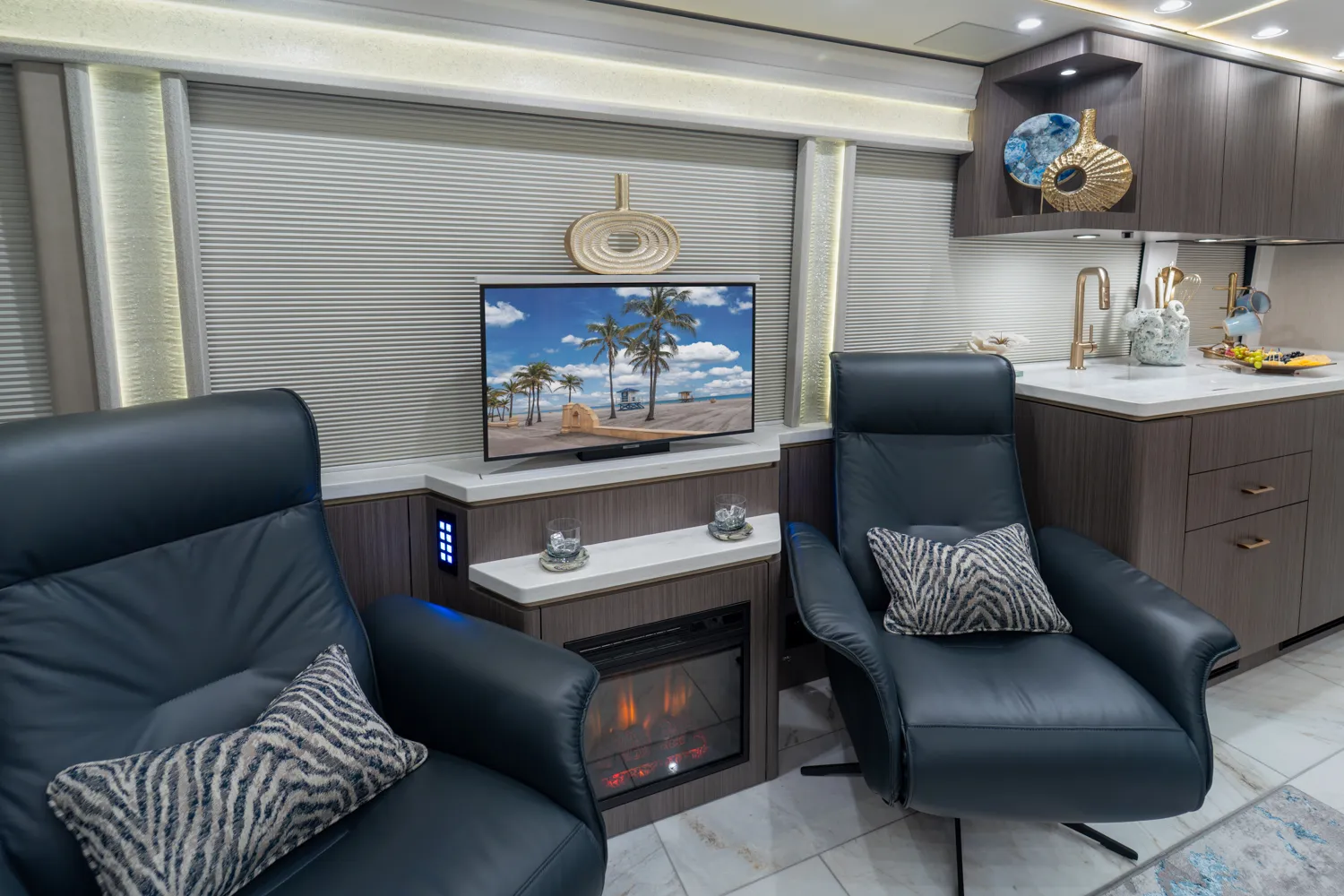 FEATURES SNAPSHOT\n\n● Crestron Audio with Surround Sound\n● Girard Automatic Awning Package with Fairings\n● 20 KW Kohler Generator with Auto-Gen\n● Patented Freedom Plus Sewer System\n● Patented TechLink Electrical System