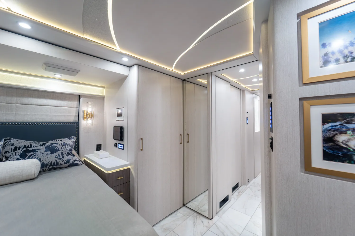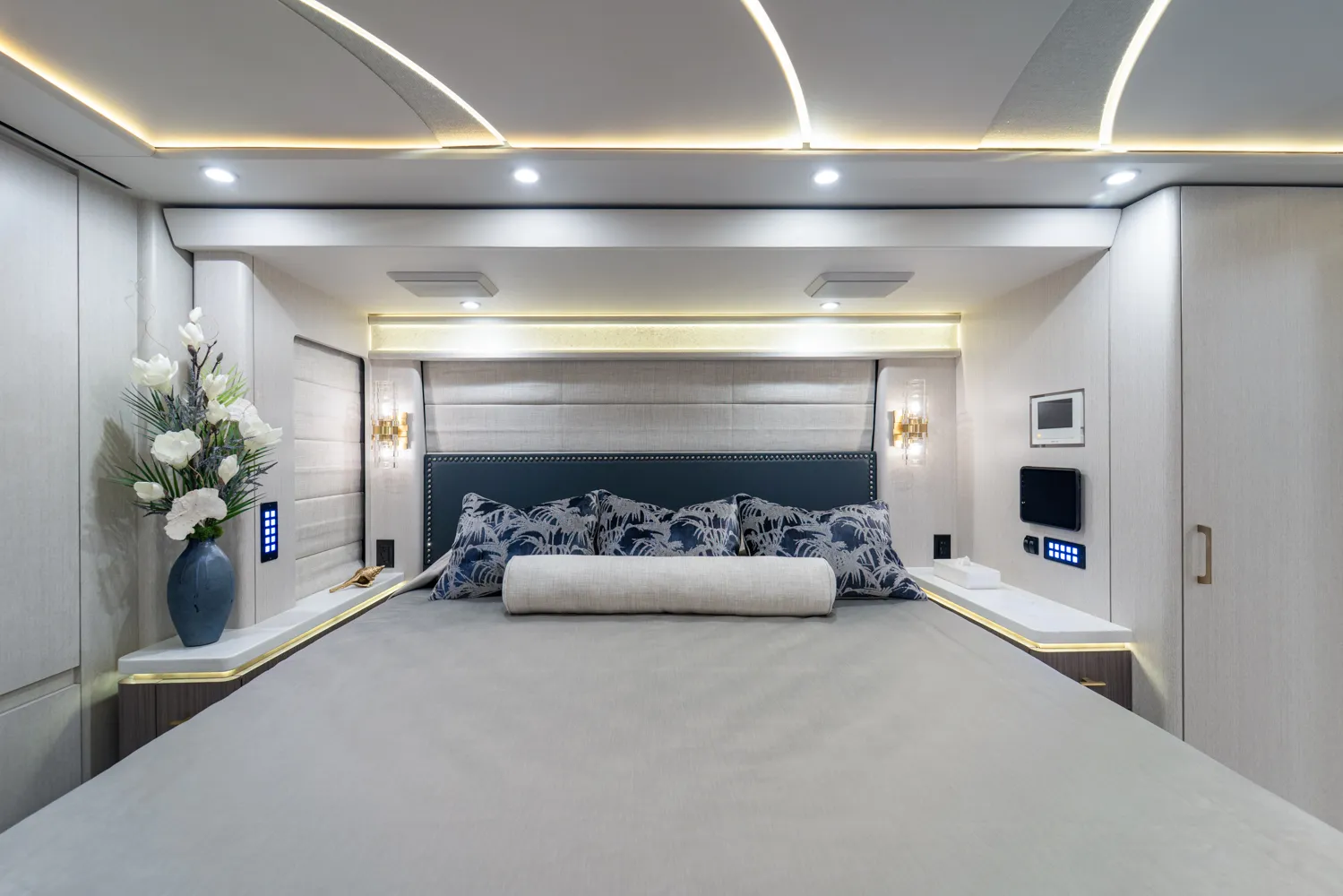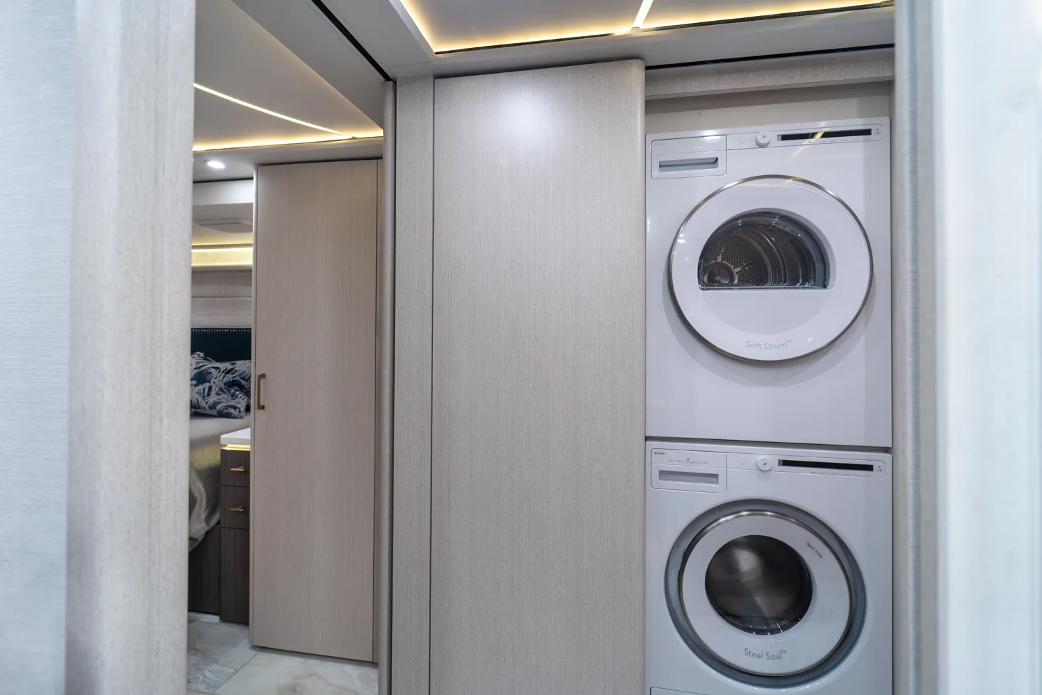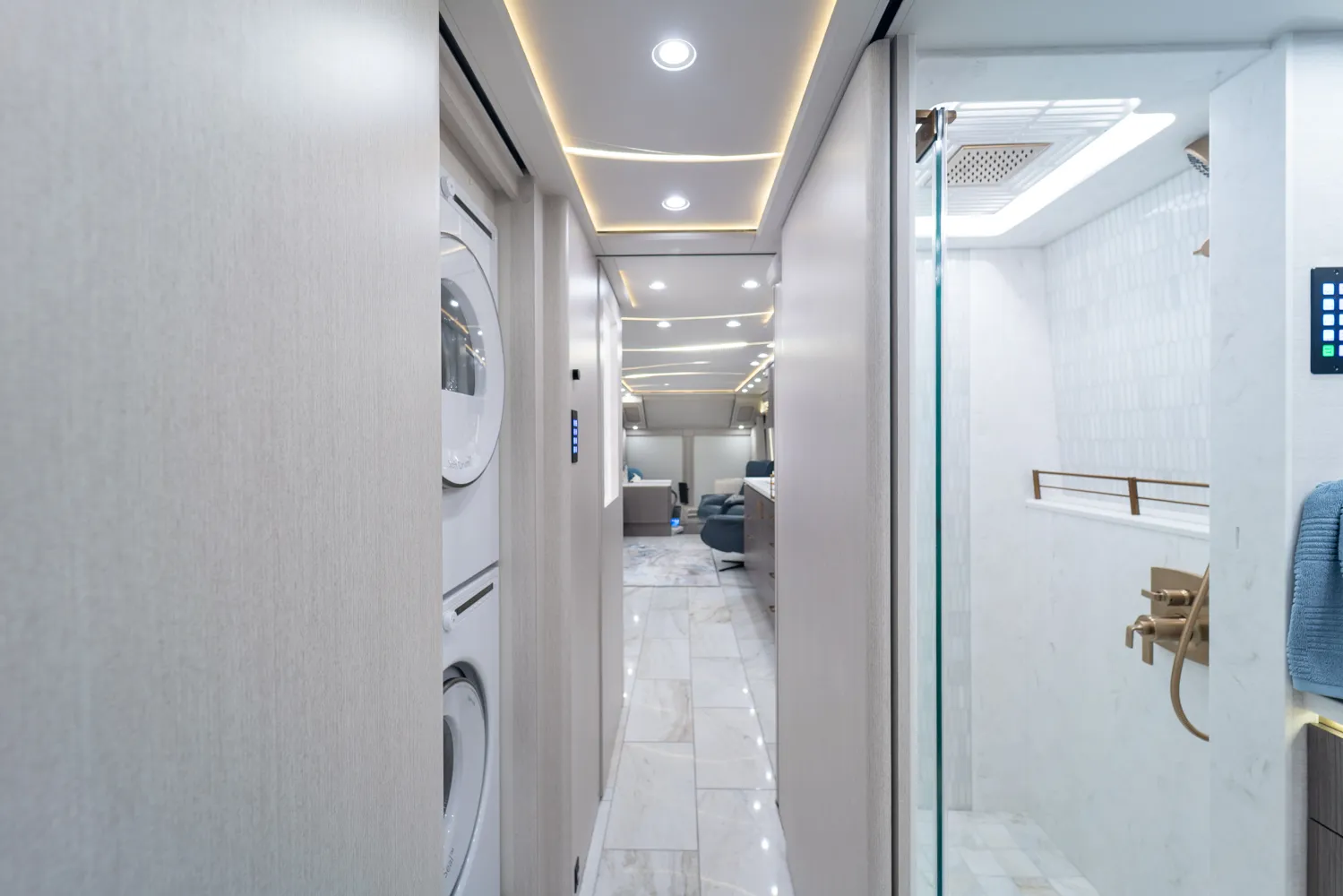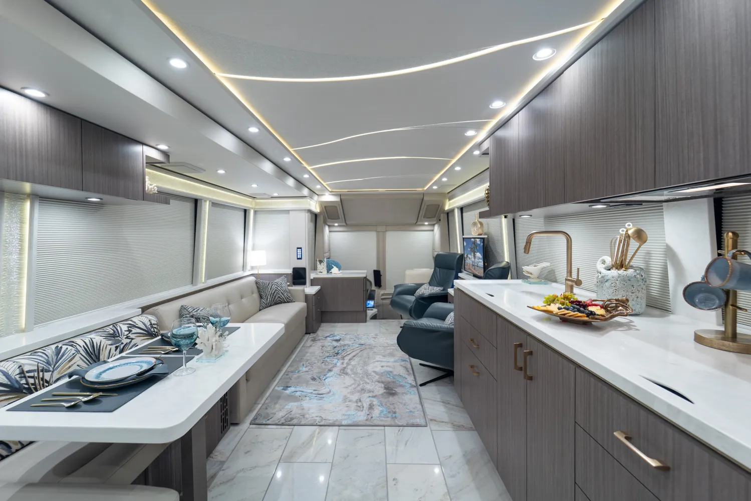 FEATURES SNAPSHOT\n\n● Crestron Audio with Surround Sound\n● Girard Automatic Awning Package with Fairings\n● 20 KW Kohler Generator with Auto-Gen\n● Patented Freedom Plus Sewer System\n● Patented TechLink Electrical System