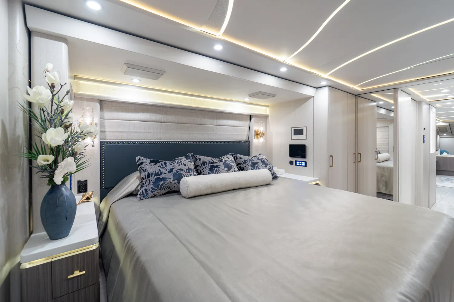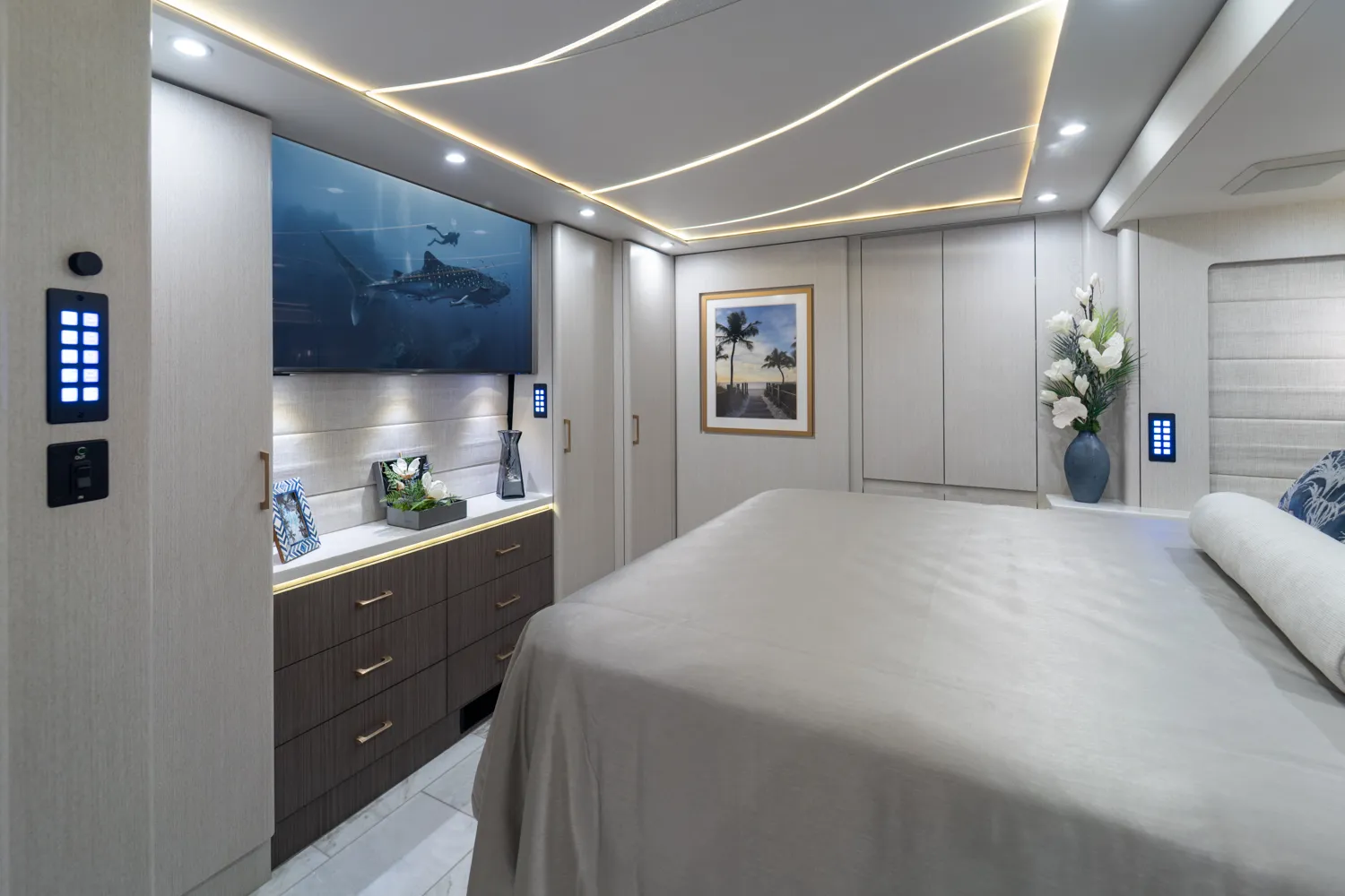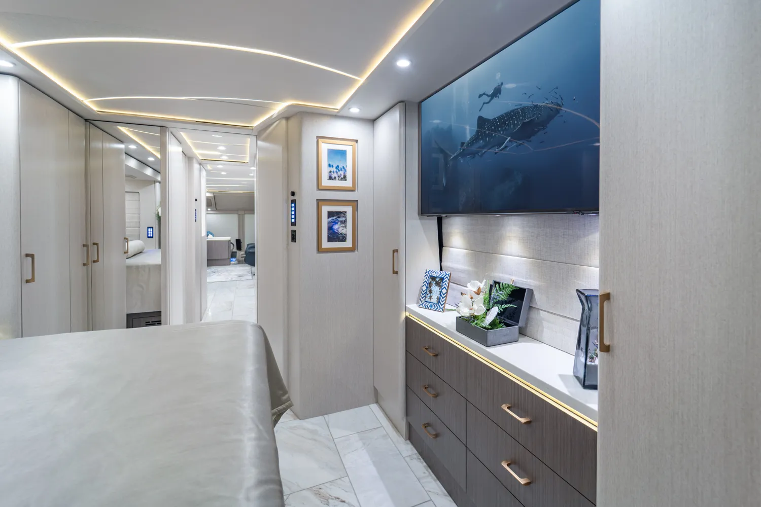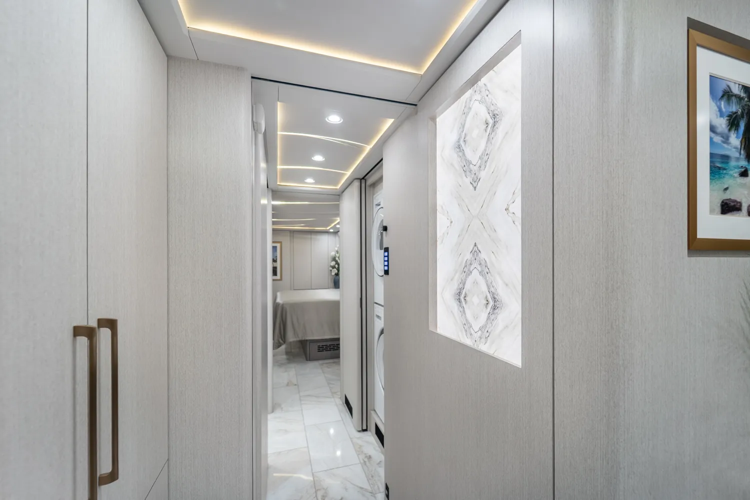 FEATURES SNAPSHOT\n\n● Crestron Audio with Surround Sound\n● Girard Automatic Awning Package with Fairings\n● 20 KW Kohler Generator with Auto-Gen\n● Patented Freedom Plus Sewer System\n● Patented TechLink Electrical System